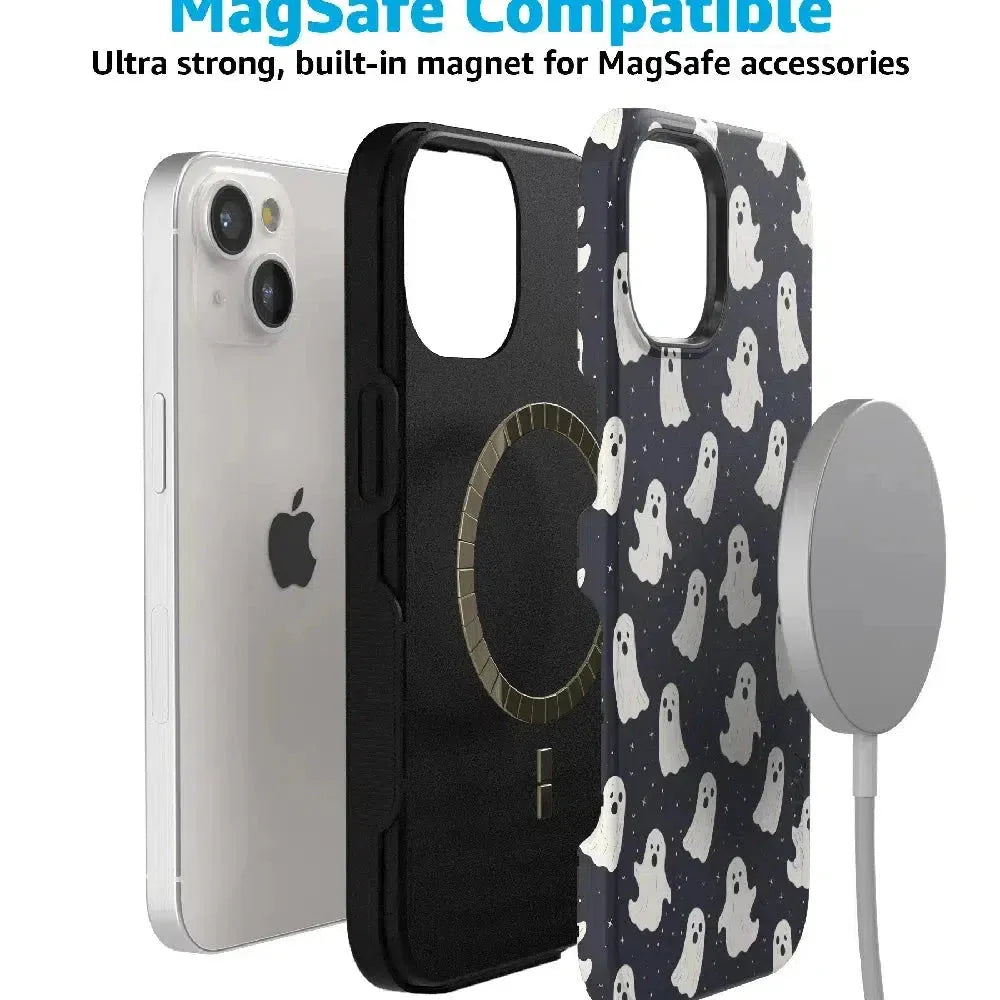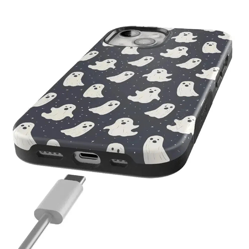 Get into the spooky spirit with the All Boos No Bite Friendly Ghost Case, part of our Halloween Collection. This adorable phone case features a playful design of cheerful ghosts that are more sweet than scary. Built with dual-layer protection, it shields your device from everyday bumps and drops while maintaining a slim and sleek profile. Perfect for those who love Halloween but prefer their ghosts friendly, this case adds a fun, festive touch to your device.
