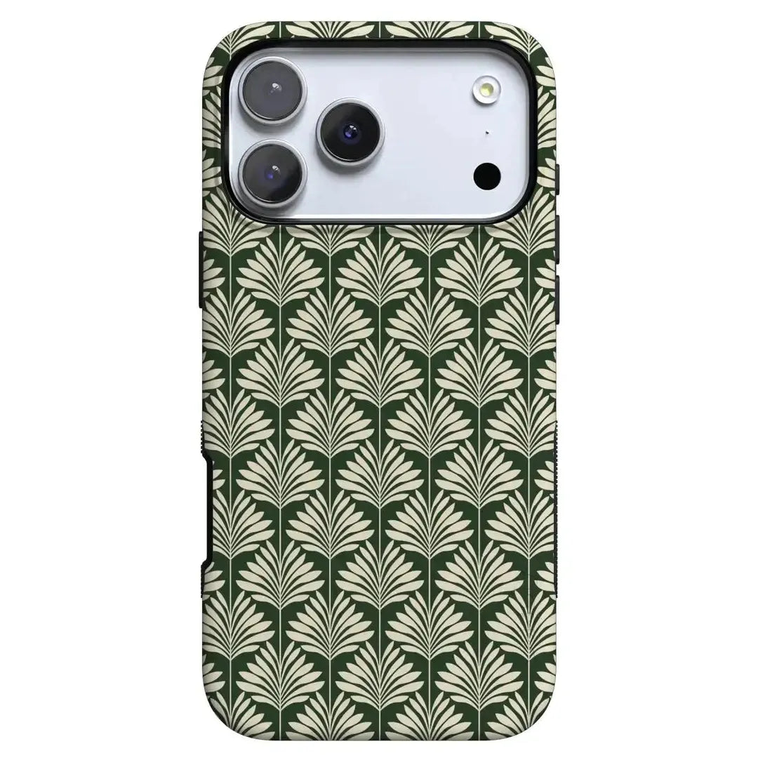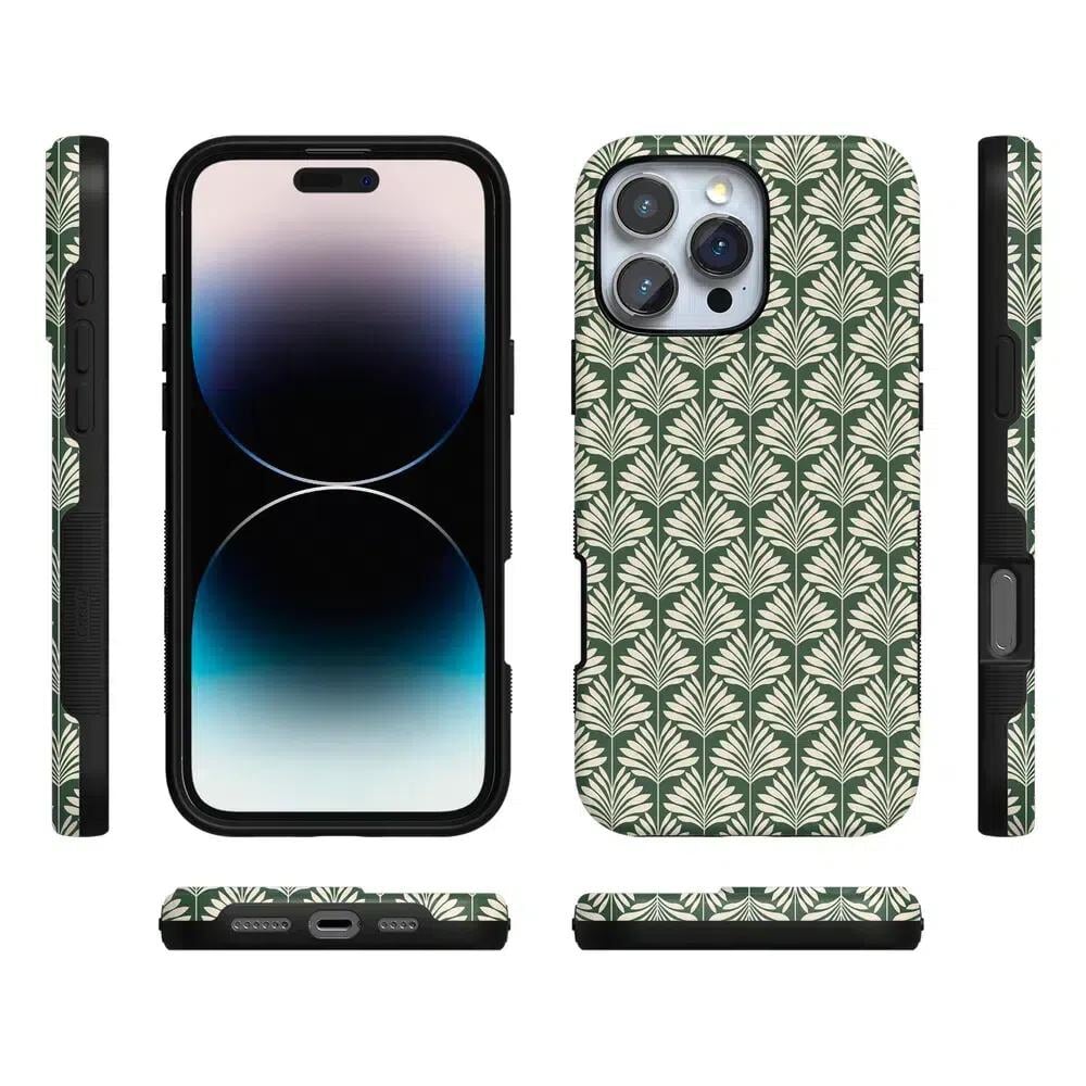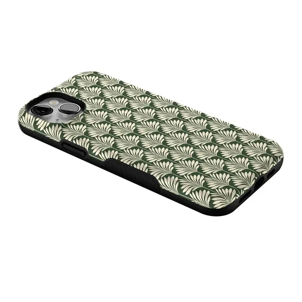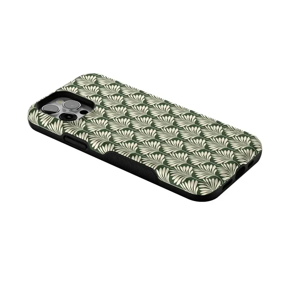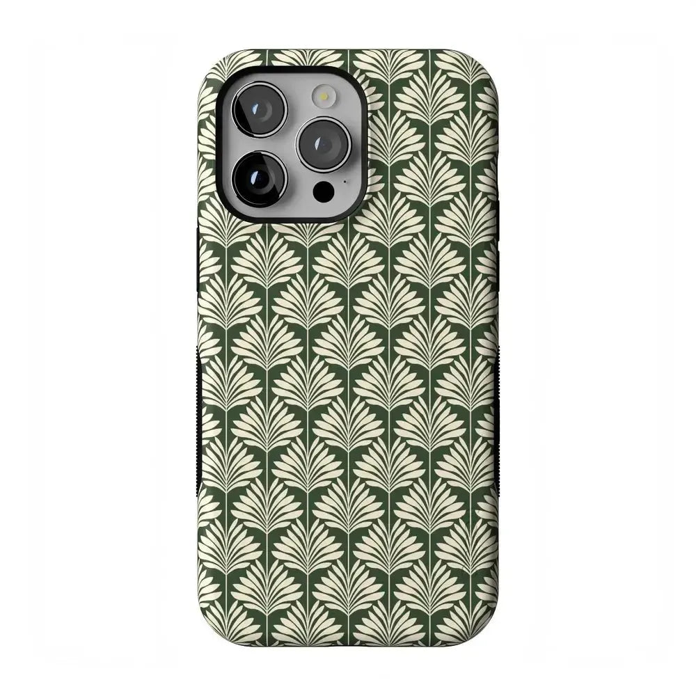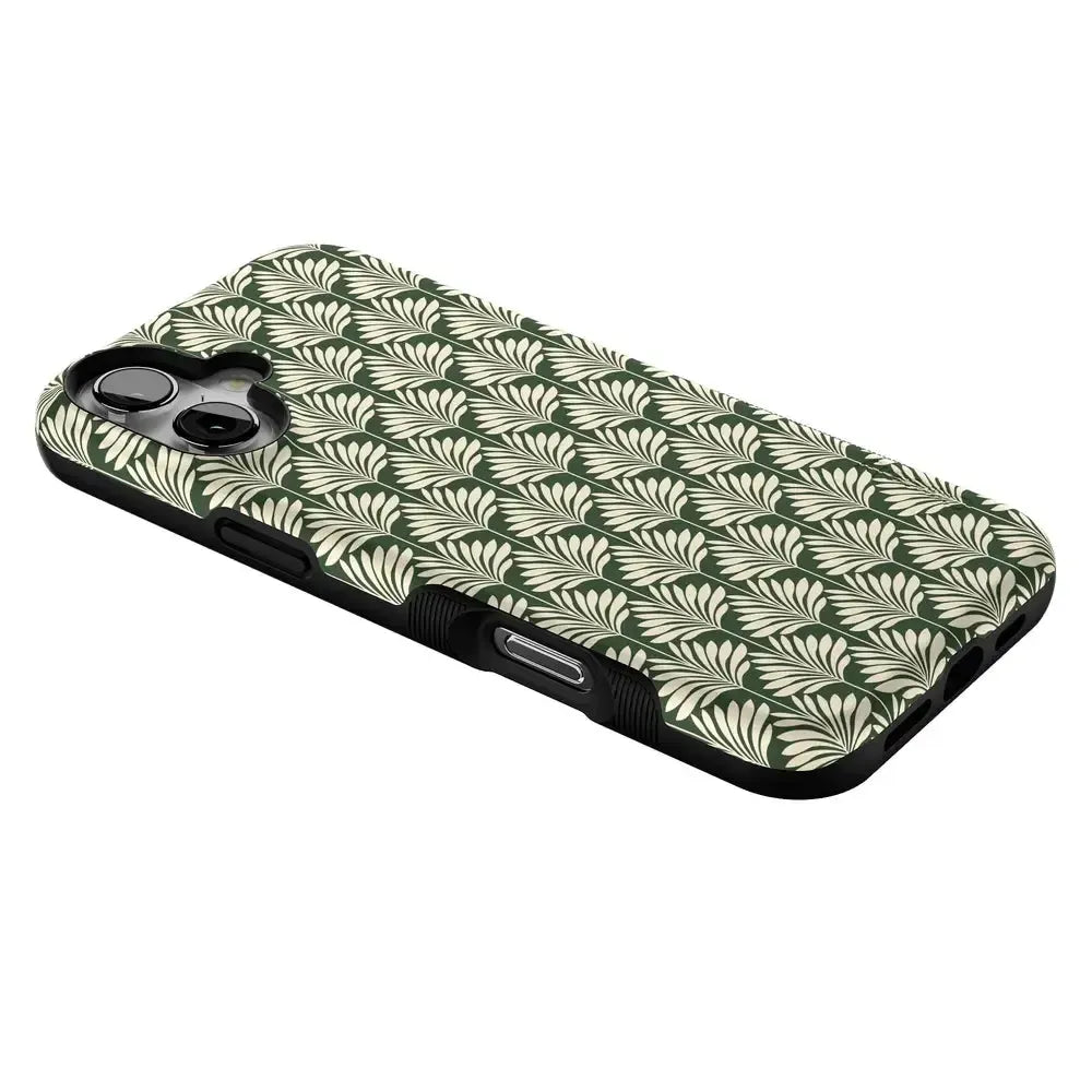 A little retro, a little refined—Cabana Nights is the phone case that brings vintage resort style into everyday life. Part of the Boyfriend Collection, this design features a bold, repeating palm motif in soft cream against deep green for a pattern that’s eye-catching but totally wearable. It’s inspired by old-school hotel wallpaper, tropical nights, and laid-back summer energy.