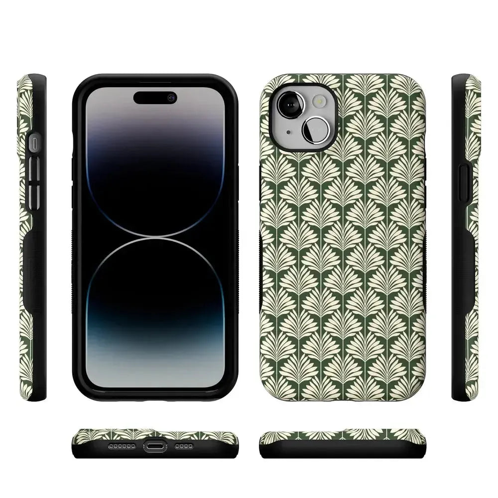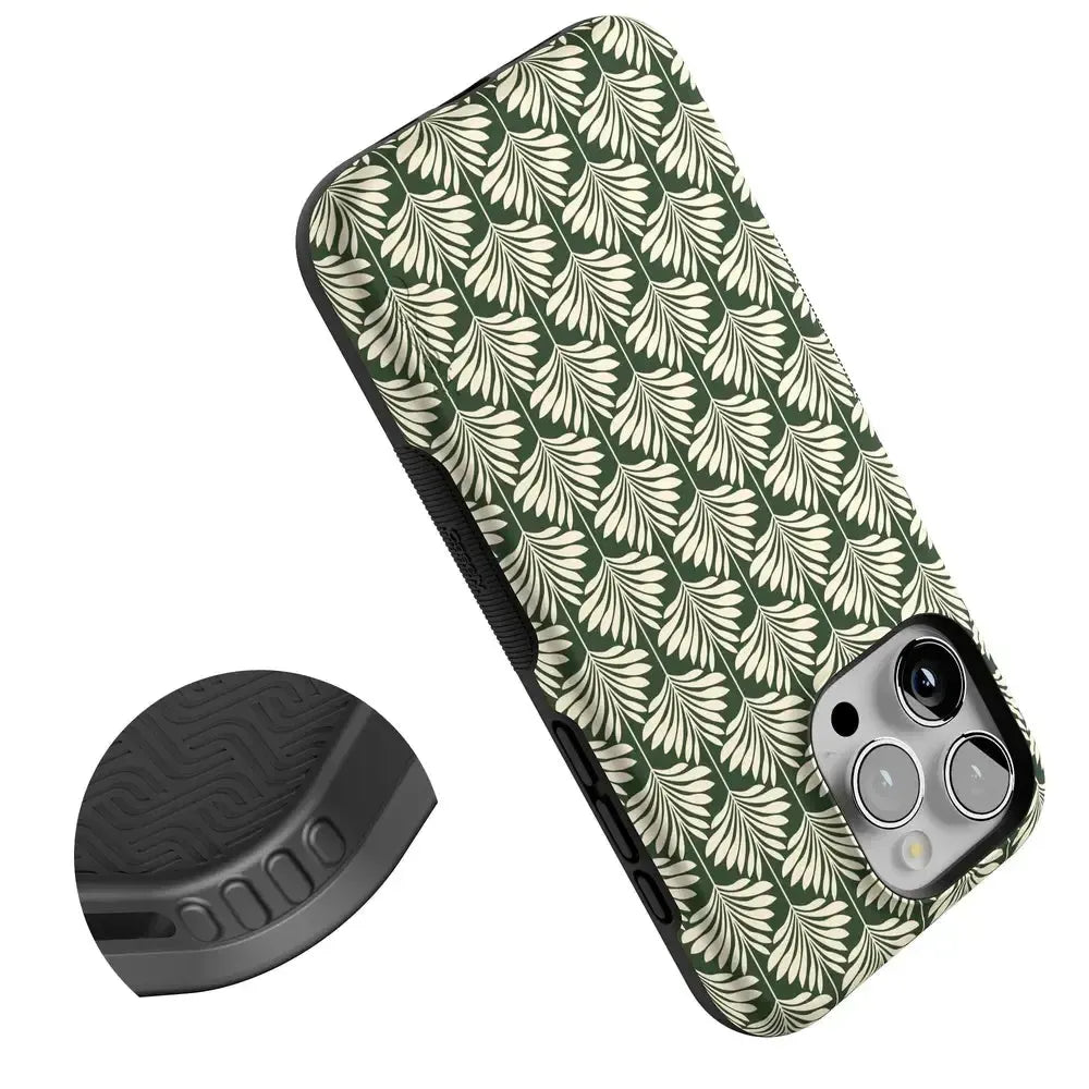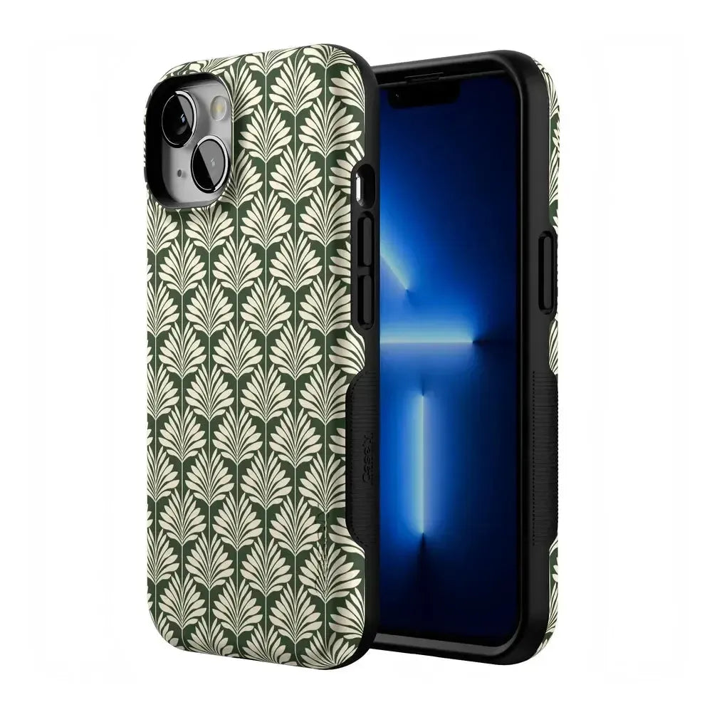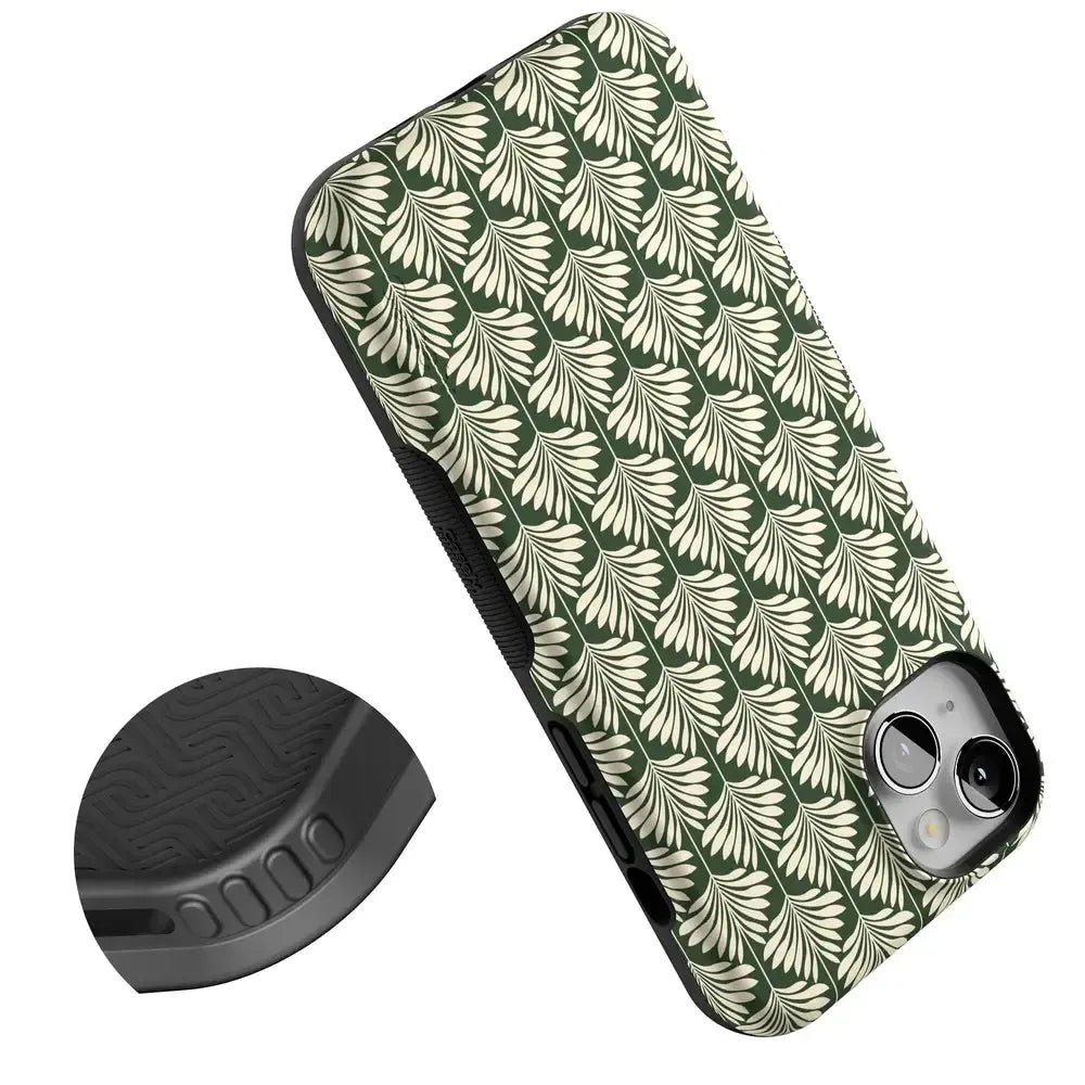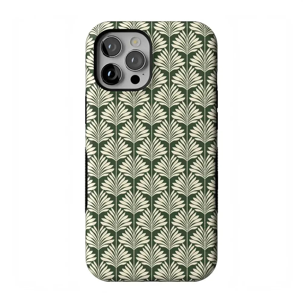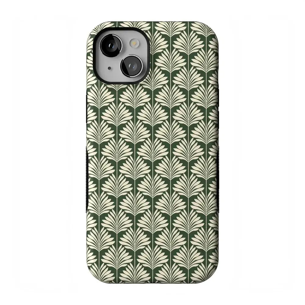 A little retro, a little refined—Cabana Nights is the phone case that brings vintage resort style into everyday life. Part of the Boyfriend Collection, this design features a bold, repeating palm motif in soft cream against deep green for a pattern that’s eye-catching but totally wearable. It’s inspired by old-school hotel wallpaper, tropical nights, and laid-back summer energy.