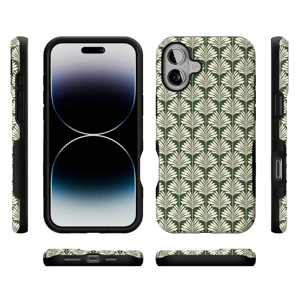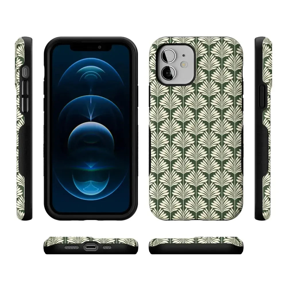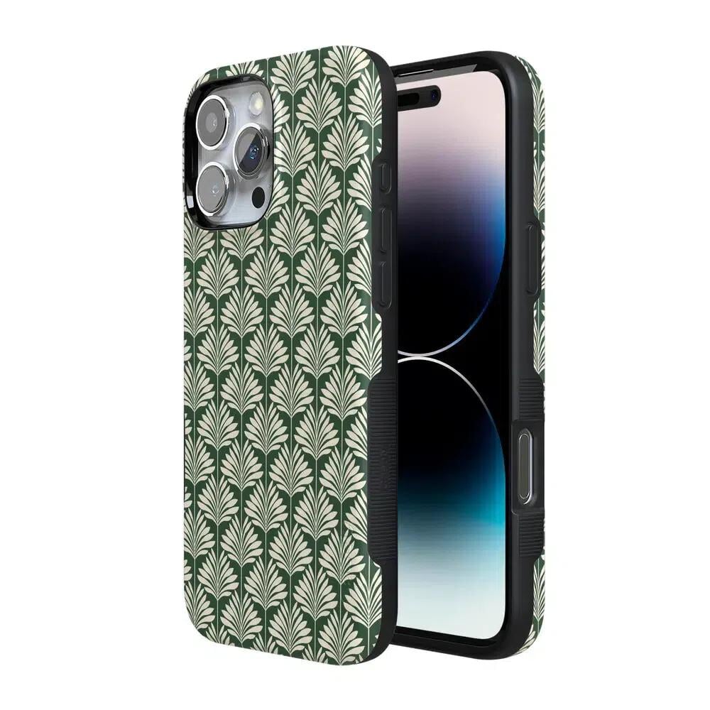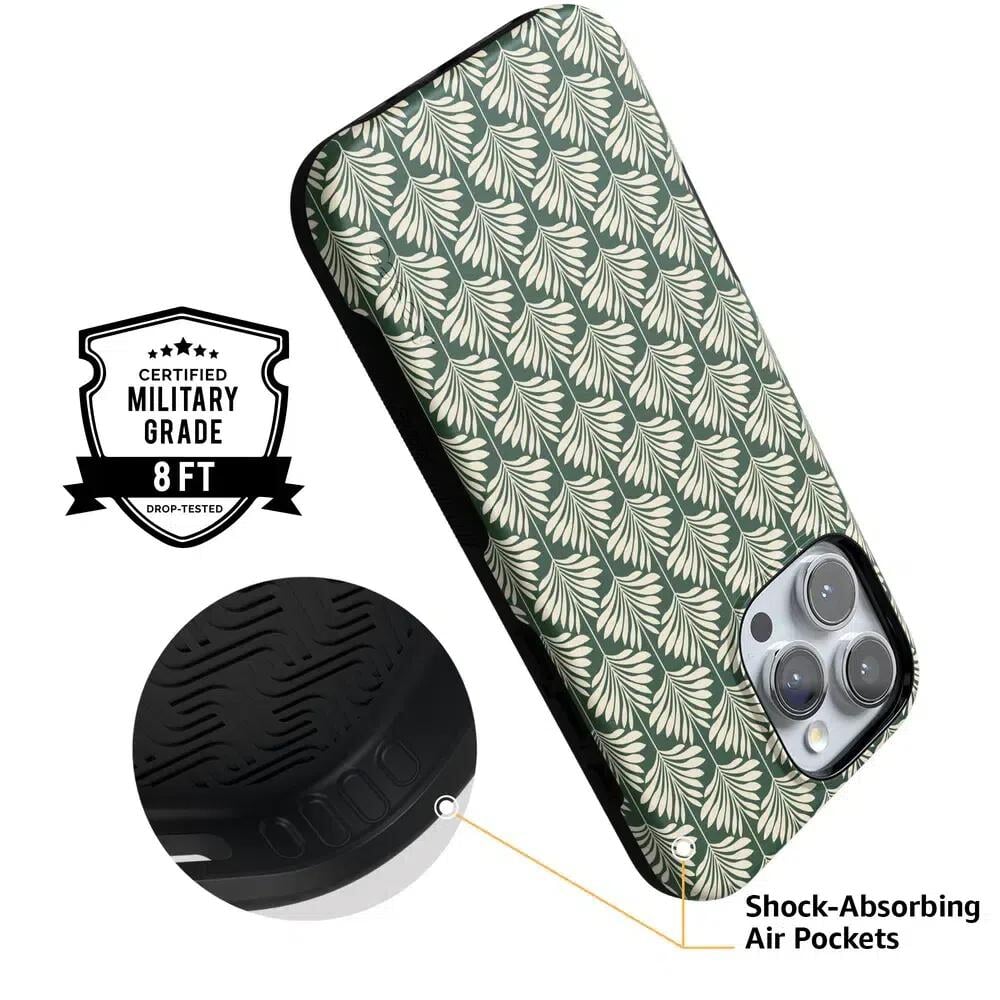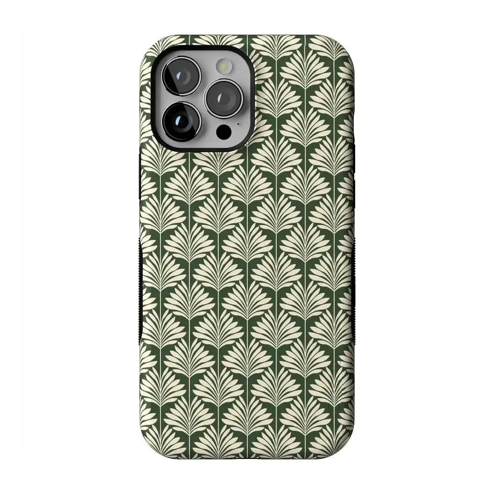 A little retro, a little refined—Cabana Nights is the phone case that brings vintage resort style into everyday life. Part of the Boyfriend Collection, this design features a bold, repeating palm motif in soft cream against deep green for a pattern that’s eye-catching but totally wearable. It’s inspired by old-school hotel wallpaper, tropical nights, and laid-back summer energy.