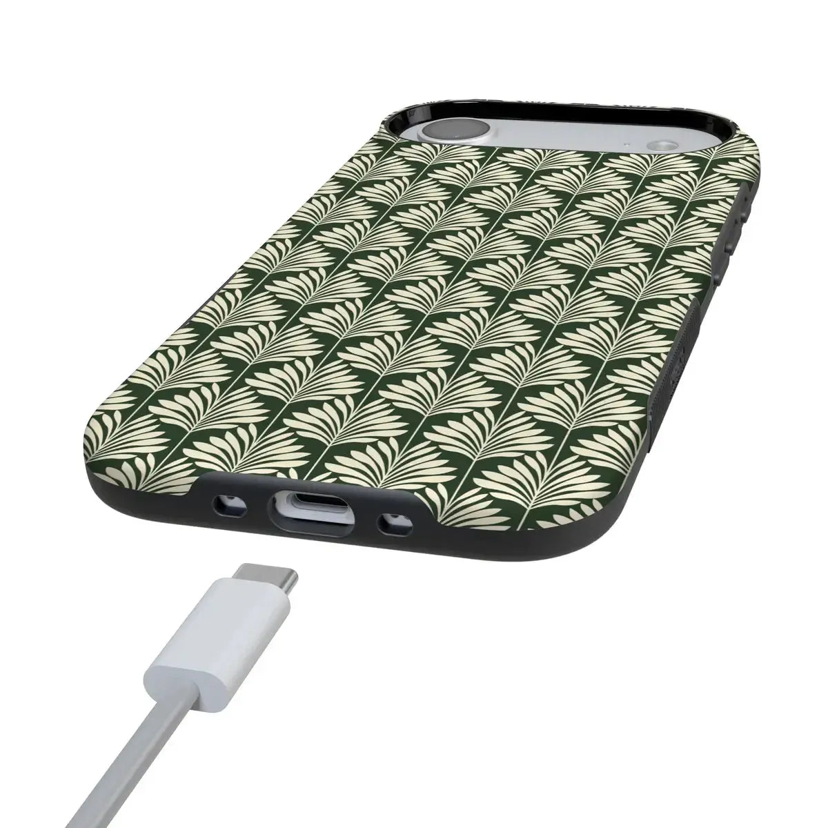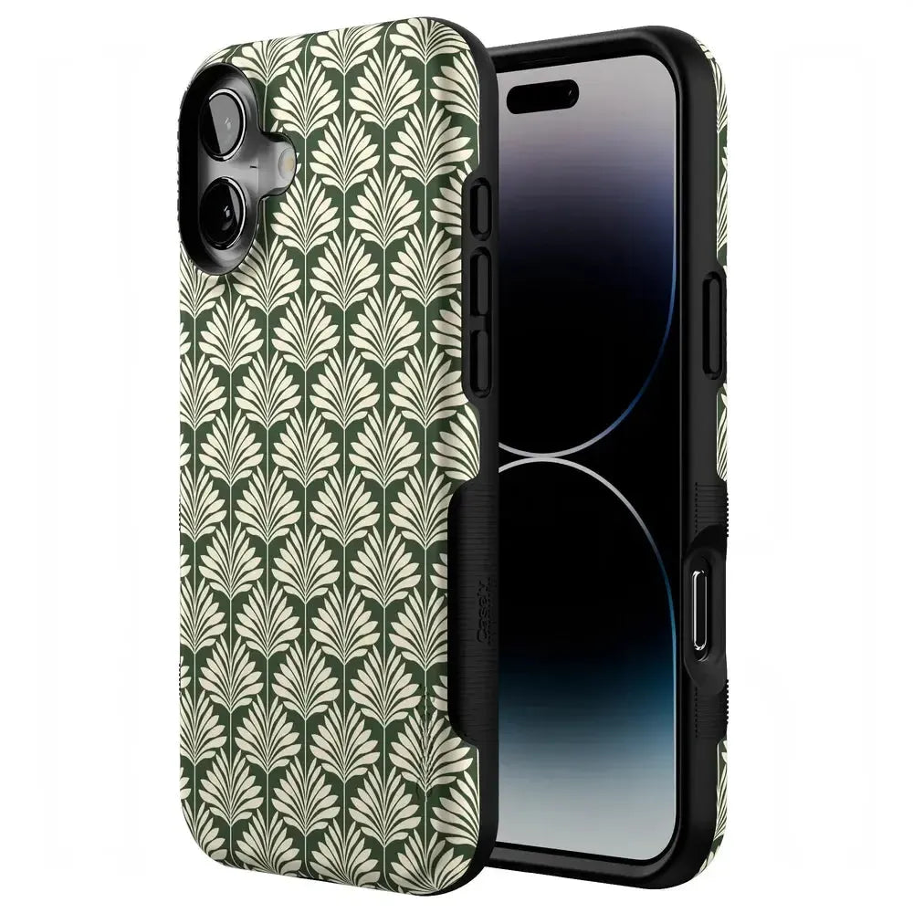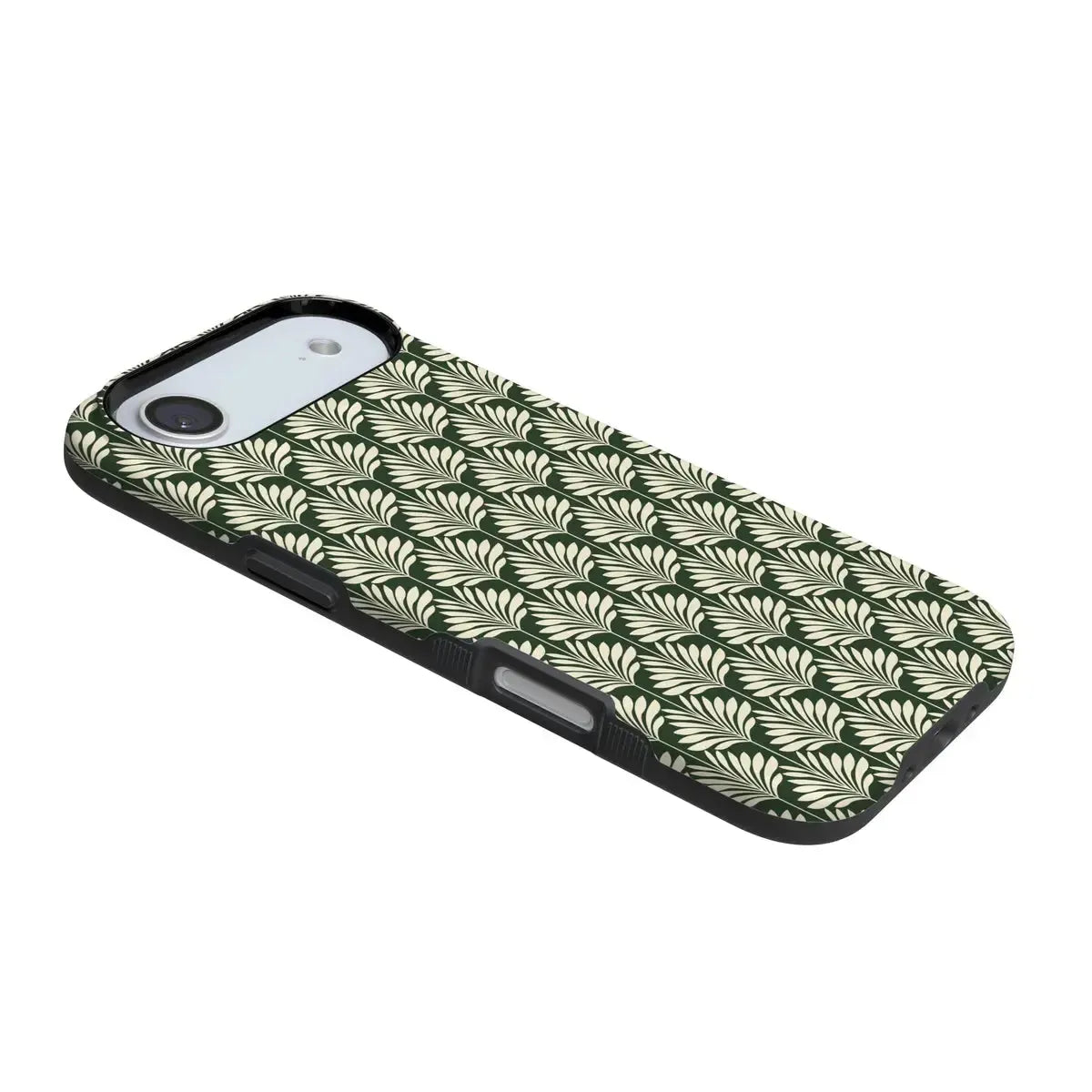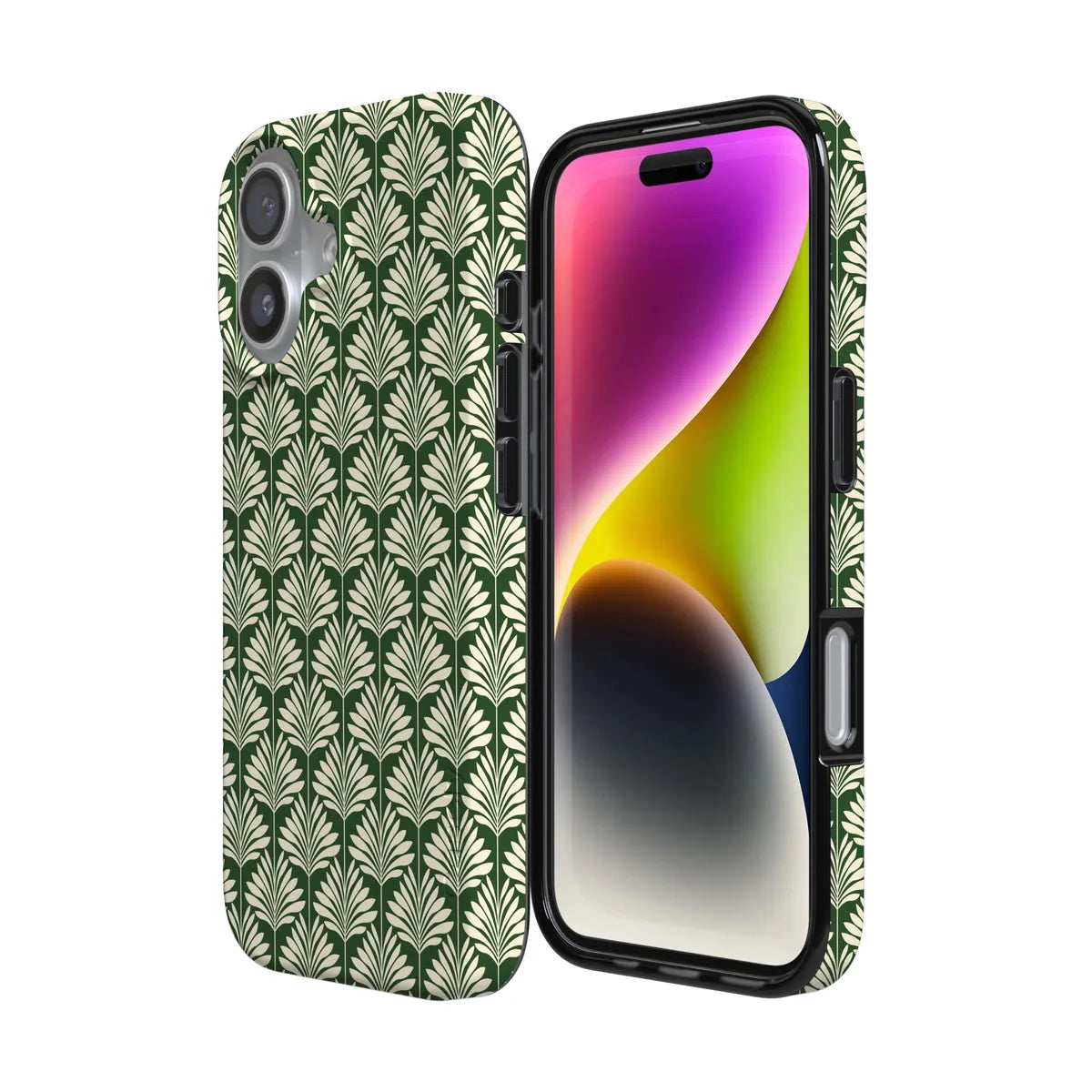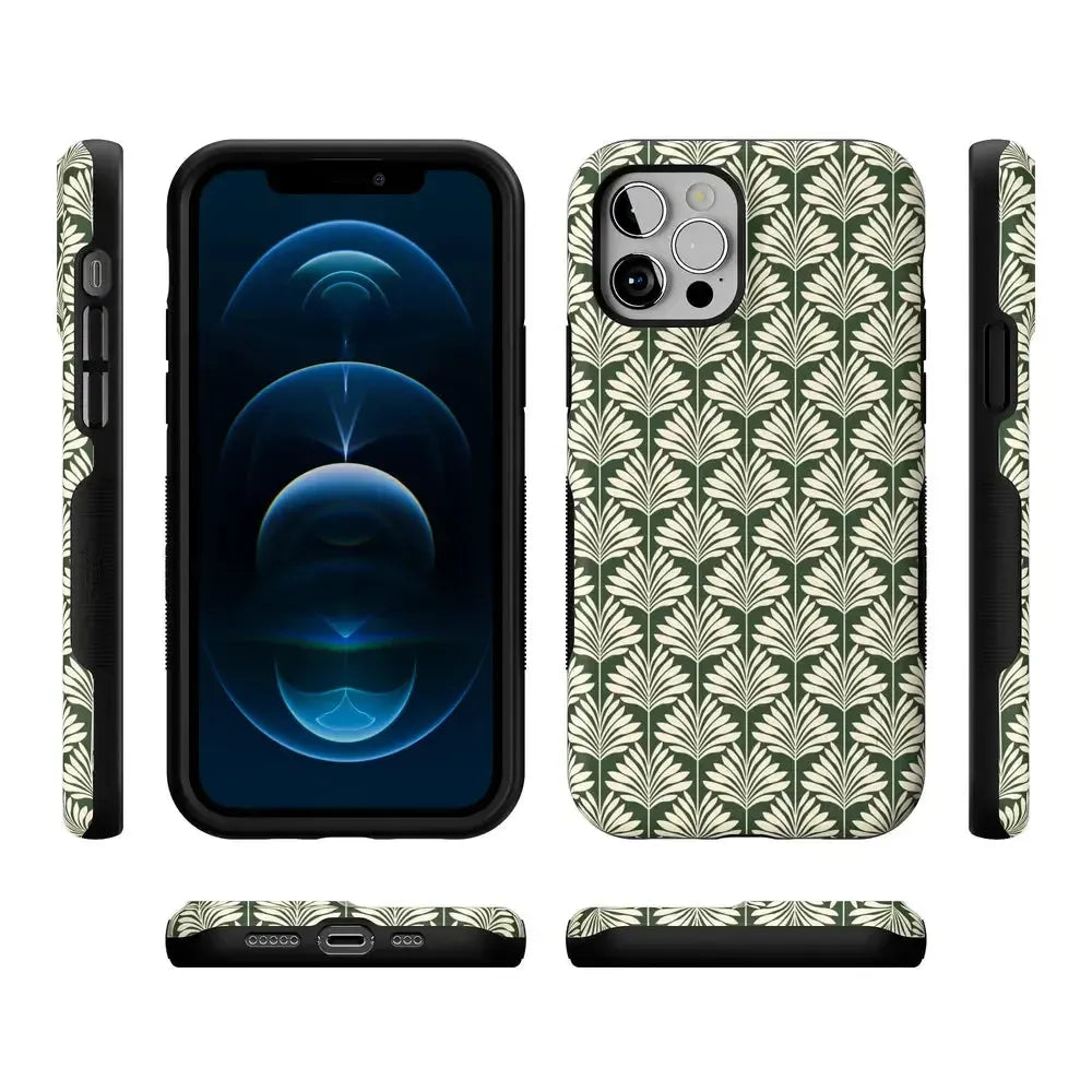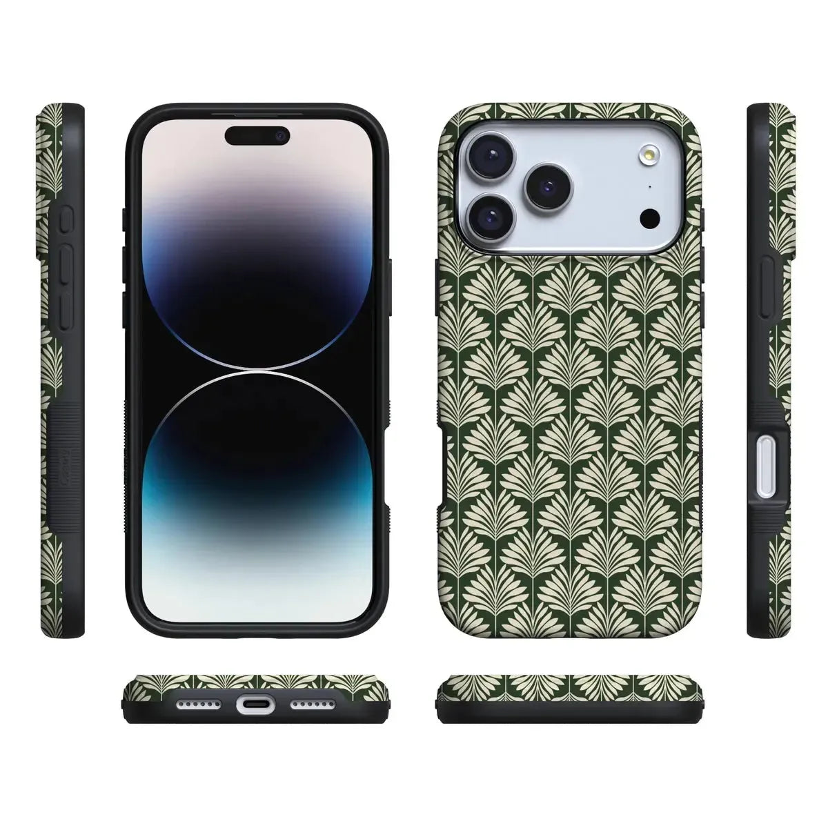 A little retro, a little refined—Cabana Nights is the phone case that brings vintage resort style into everyday life. Part of the Boyfriend Collection, this design features a bold, repeating palm motif in soft cream against deep green for a pattern that’s eye-catching but totally wearable. It’s inspired by old-school hotel wallpaper, tropical nights, and laid-back summer energy.