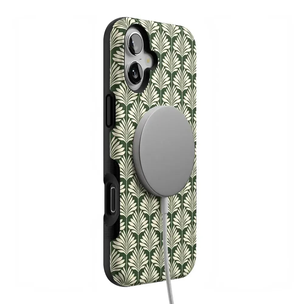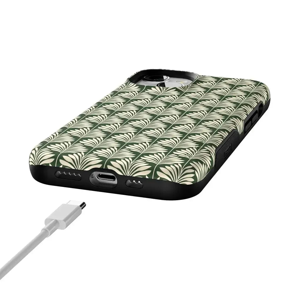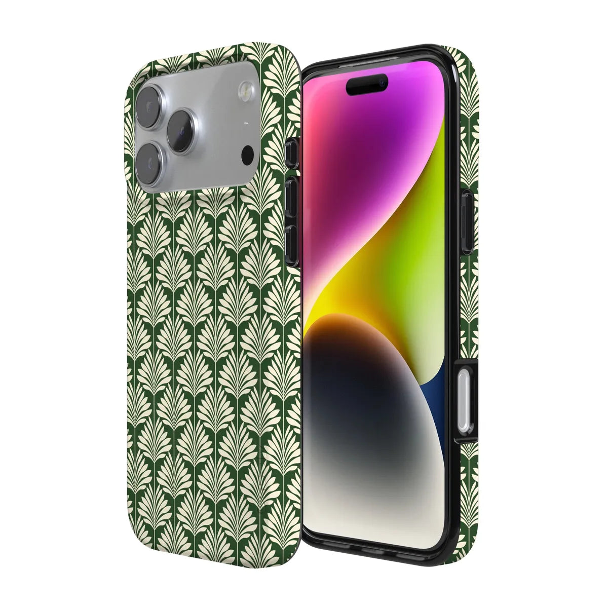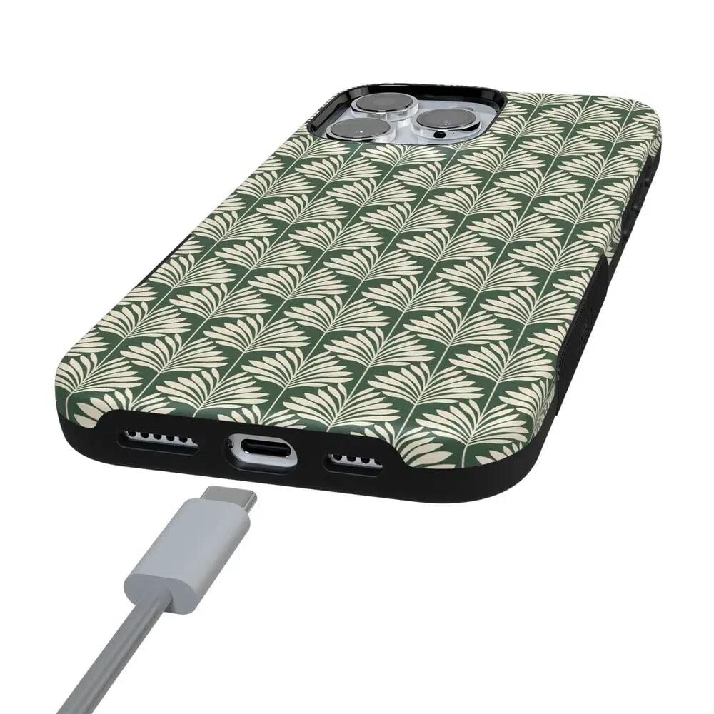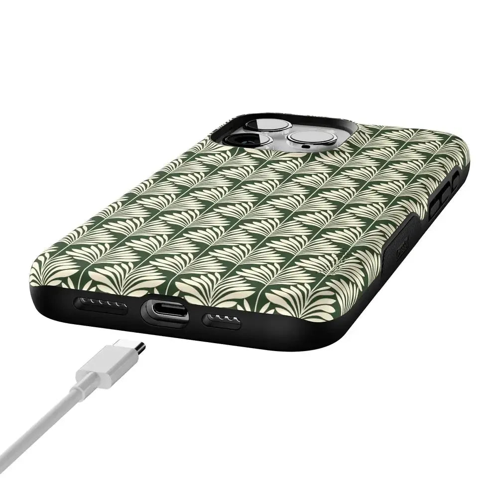 A little retro, a little refined—Cabana Nights is the phone case that brings vintage resort style into everyday life. Part of the Boyfriend Collection, this design features a bold, repeating palm motif in soft cream against deep green for a pattern that’s eye-catching but totally wearable. It’s inspired by old-school hotel wallpaper, tropical nights, and laid-back summer energy.