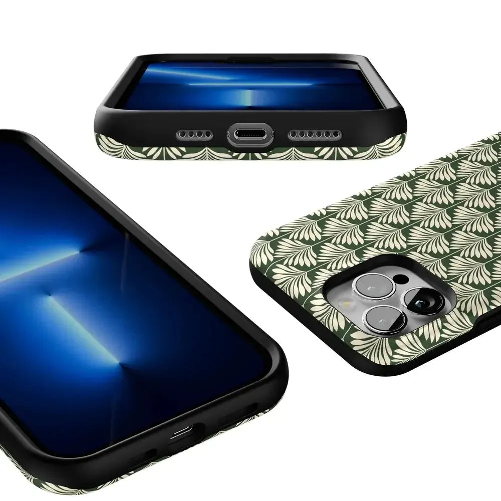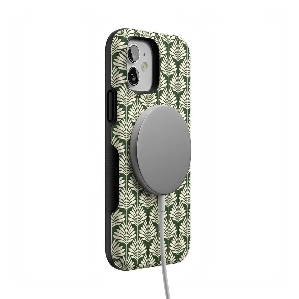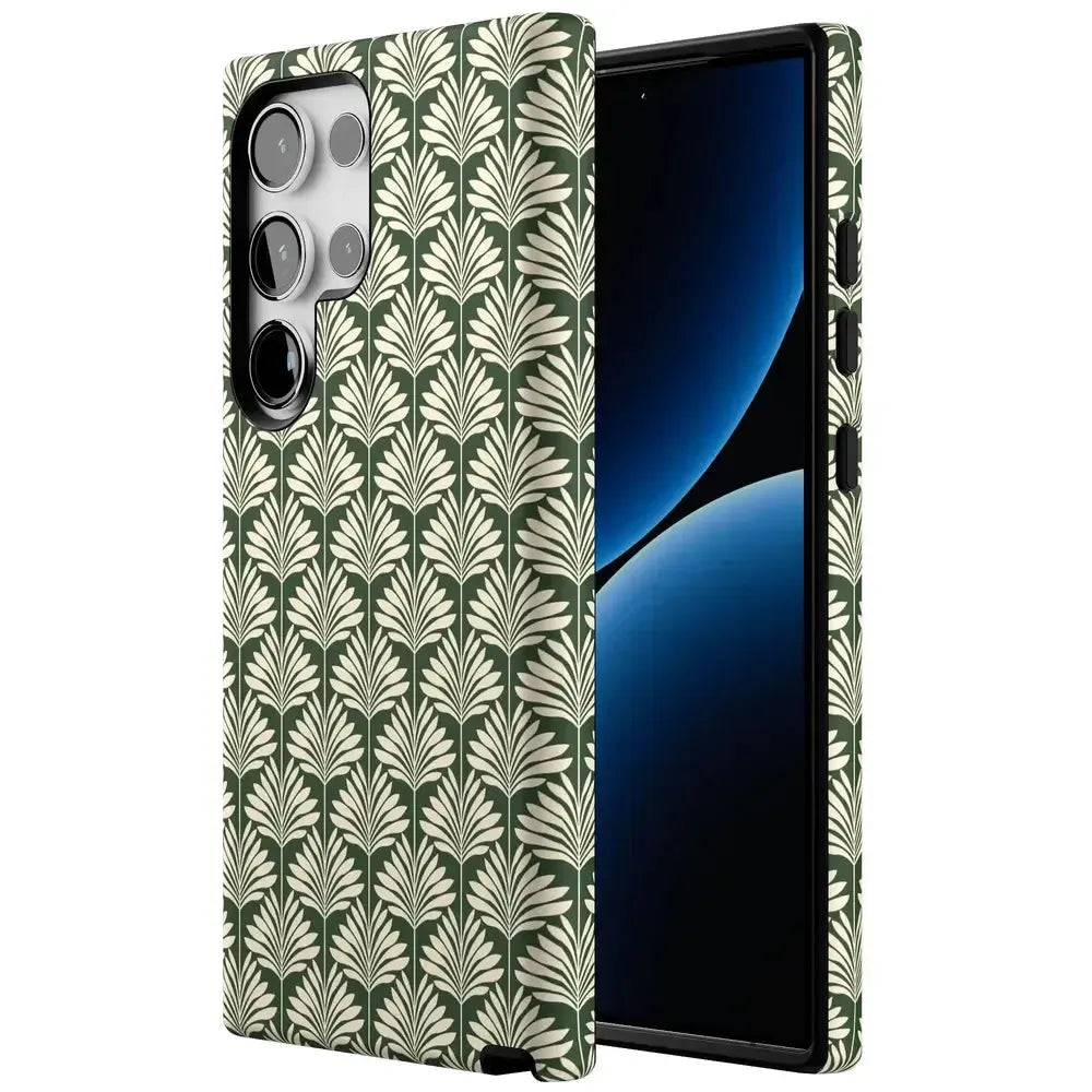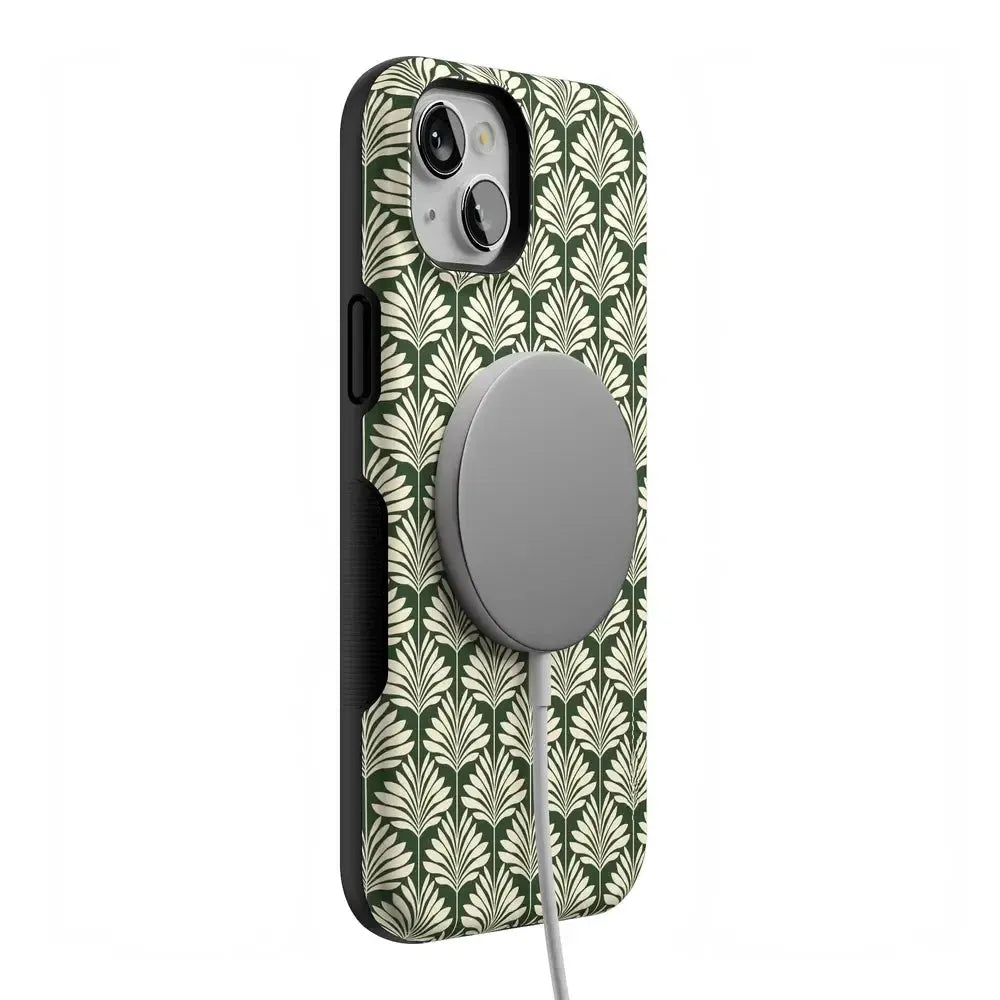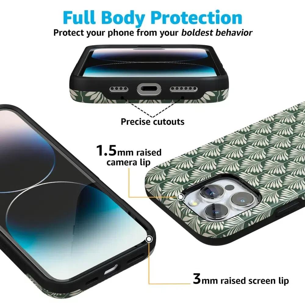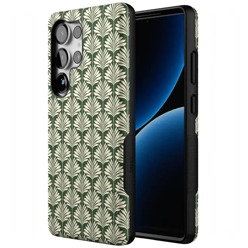 A little retro, a little refined—Cabana Nights is the phone case that brings vintage resort style into everyday life. Part of the Boyfriend Collection, this design features a bold, repeating palm motif in soft cream against deep green for a pattern that’s eye-catching but totally wearable. It’s inspired by old-school hotel wallpaper, tropical nights, and laid-back summer energy.