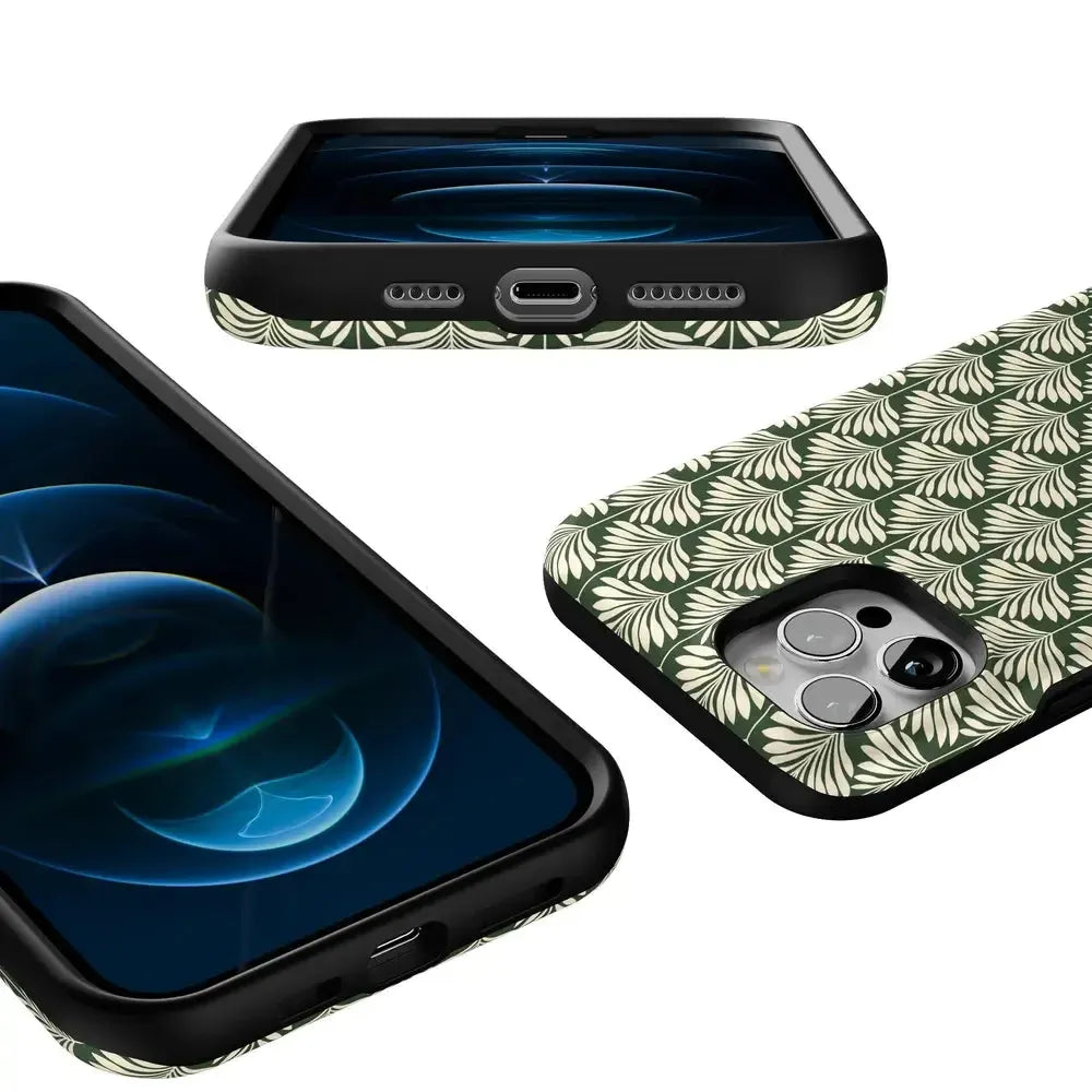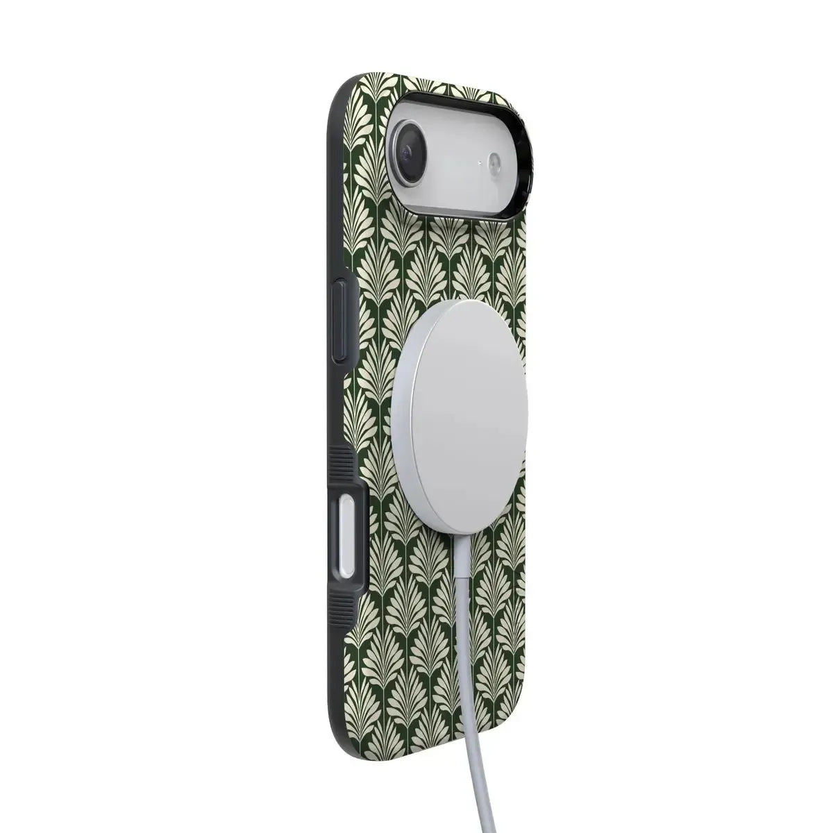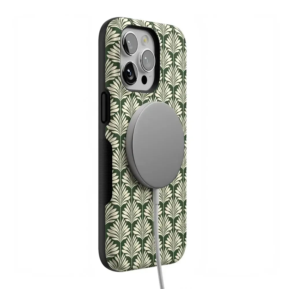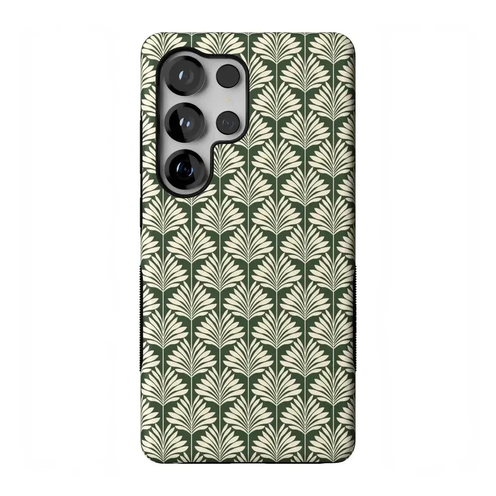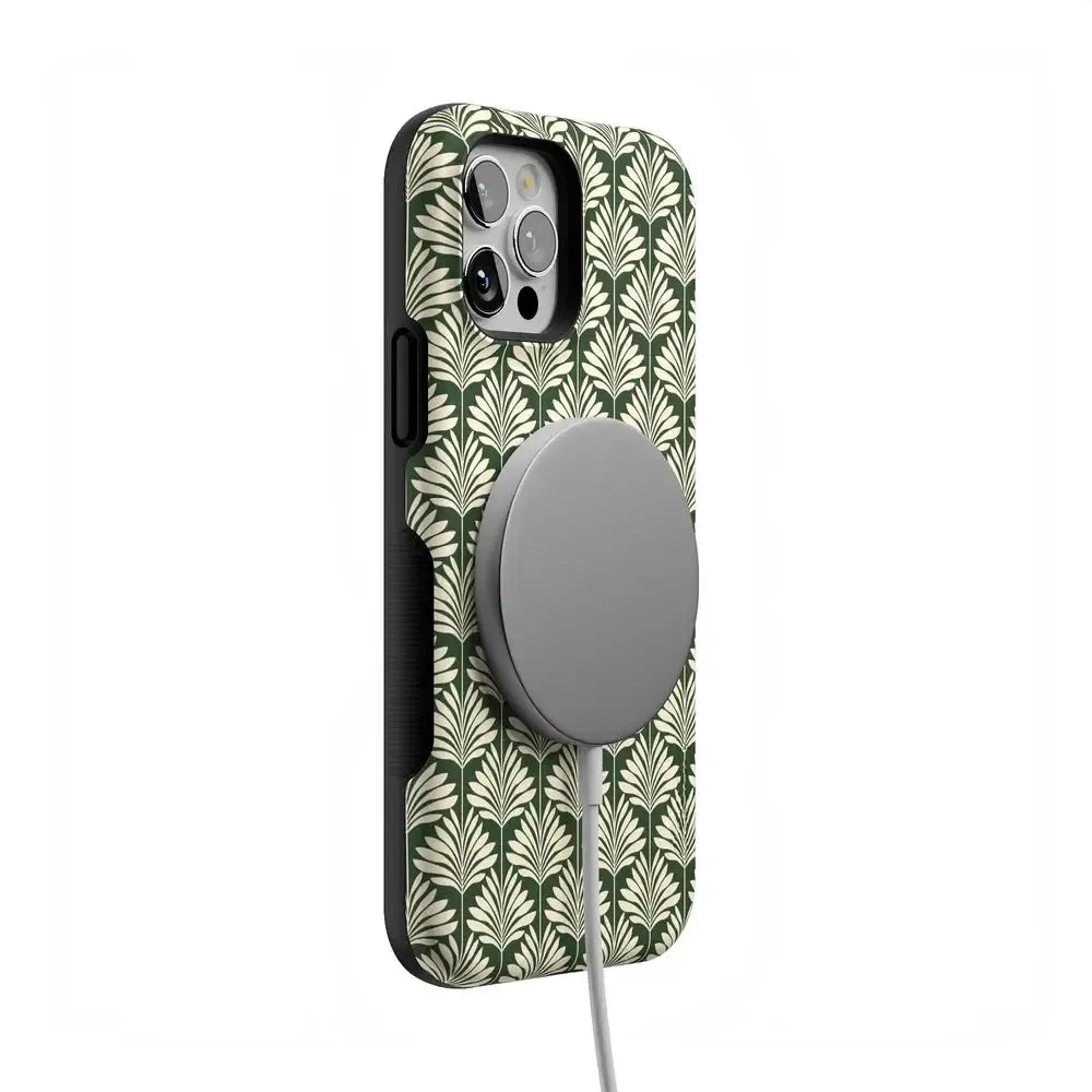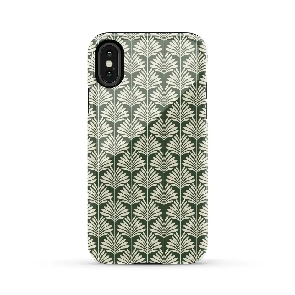 A little retro, a little refined—Cabana Nights is the phone case that brings vintage resort style into everyday life. Part of the Boyfriend Collection, this design features a bold, repeating palm motif in soft cream against deep green for a pattern that’s eye-catching but totally wearable. It’s inspired by old-school hotel wallpaper, tropical nights, and laid-back summer energy.