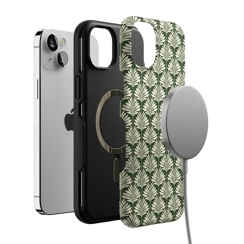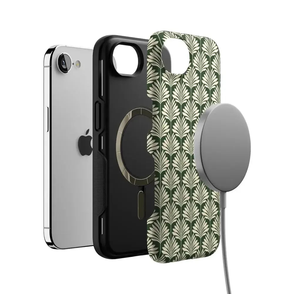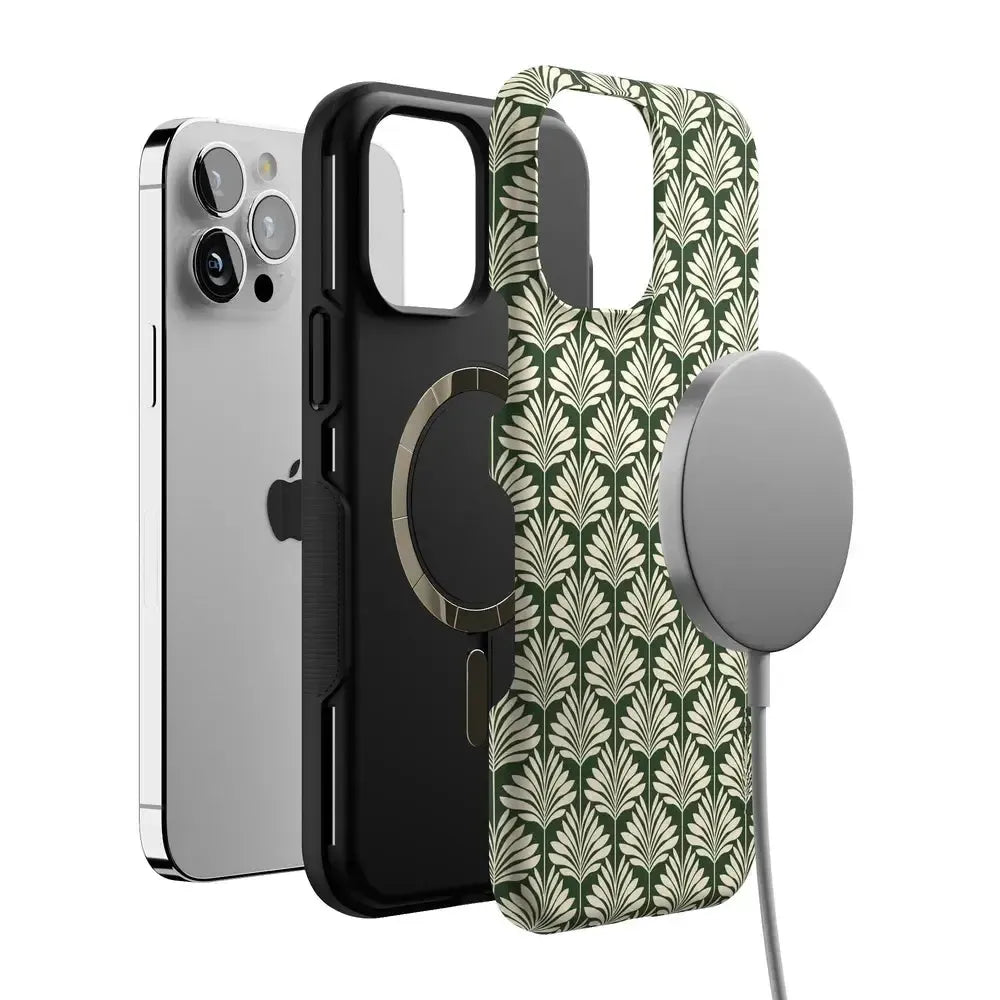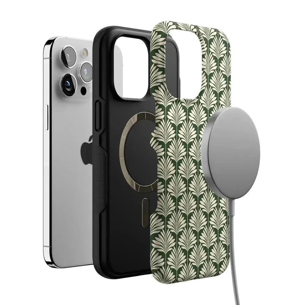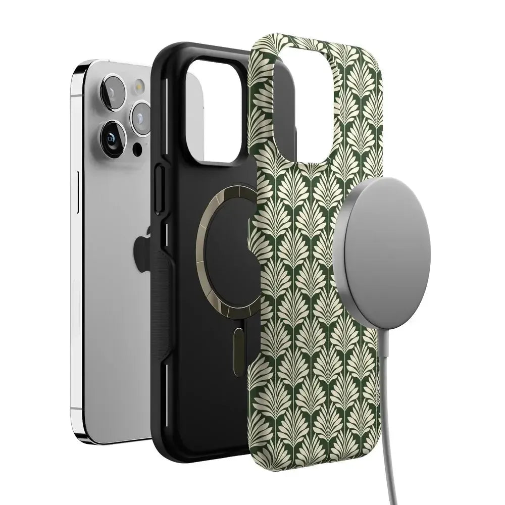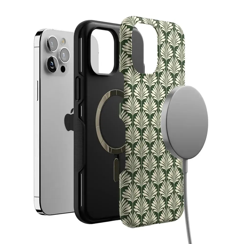 A little retro, a little refined—Cabana Nights is the phone case that brings vintage resort style into everyday life. Part of the Boyfriend Collection, this design features a bold, repeating palm motif in soft cream against deep green for a pattern that’s eye-catching but totally wearable. It’s inspired by old-school hotel wallpaper, tropical nights, and laid-back summer energy.