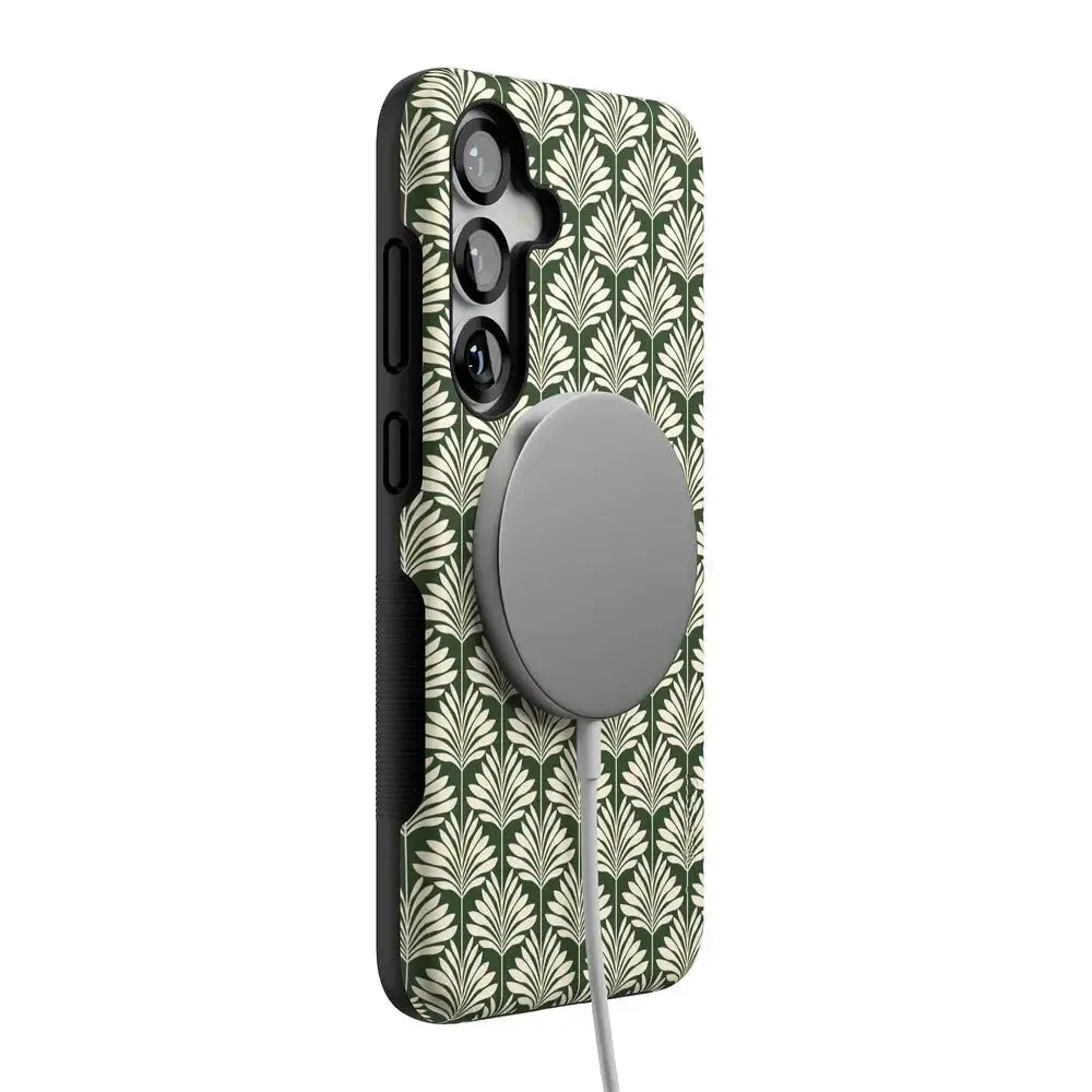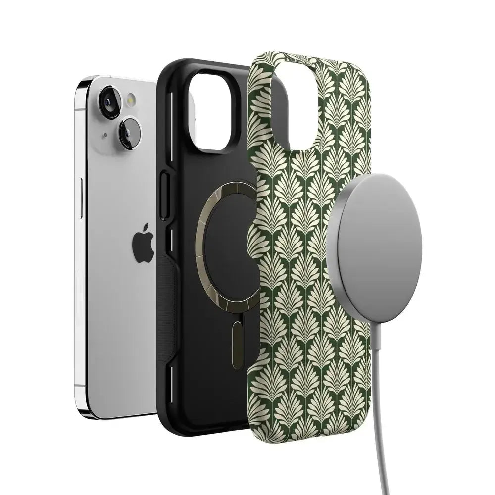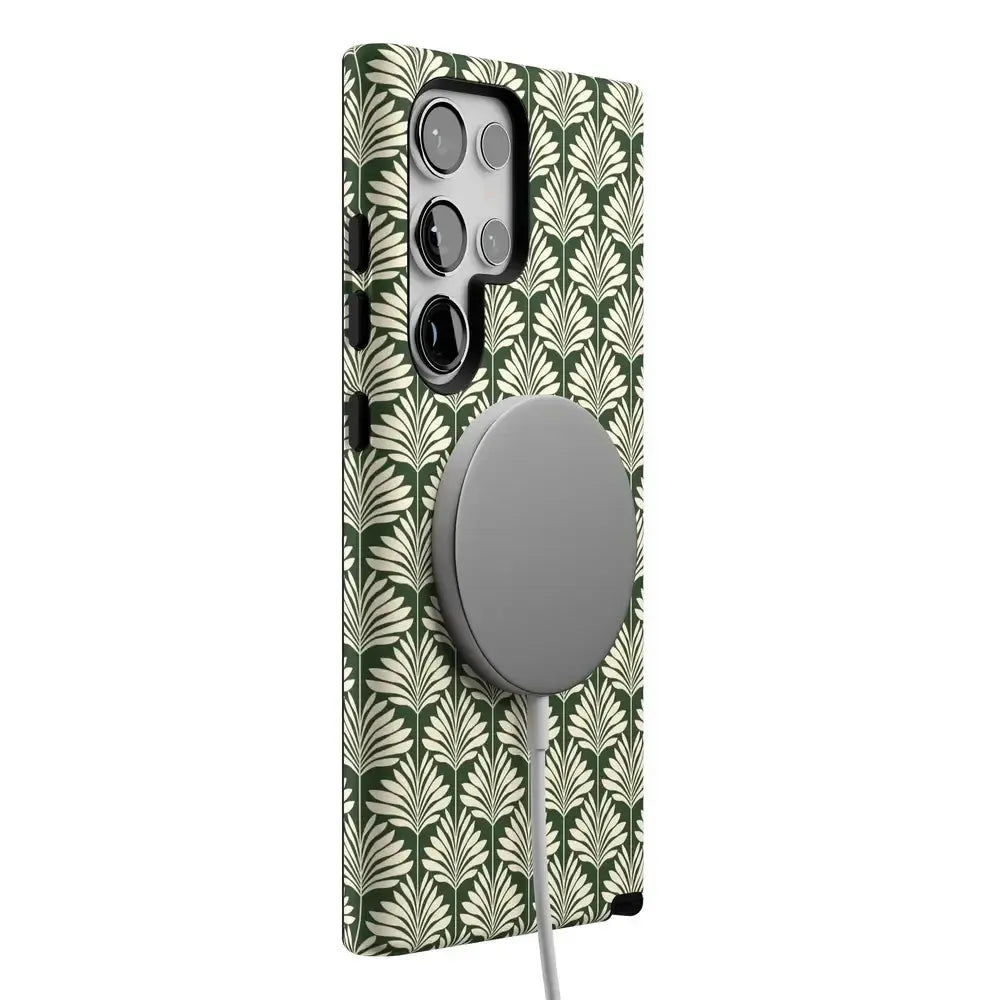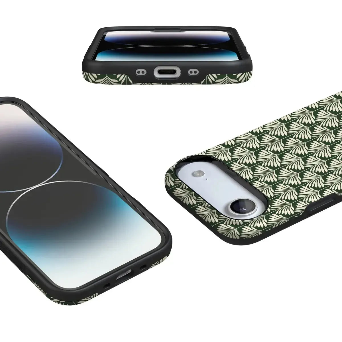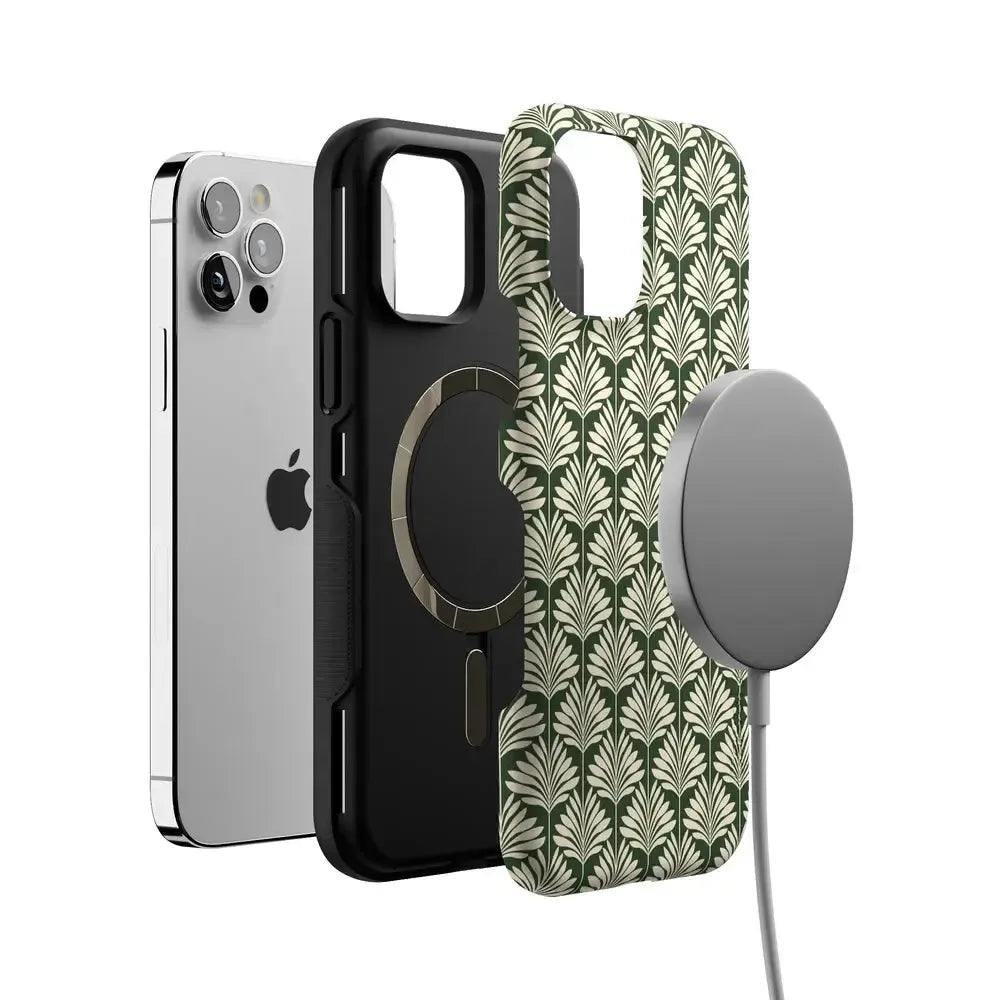 A little retro, a little refined—Cabana Nights is the phone case that brings vintage resort style into everyday life. Part of the Boyfriend Collection, this design features a bold, repeating palm motif in soft cream against deep green for a pattern that’s eye-catching but totally wearable. It’s inspired by old-school hotel wallpaper, tropical nights, and laid-back summer energy.