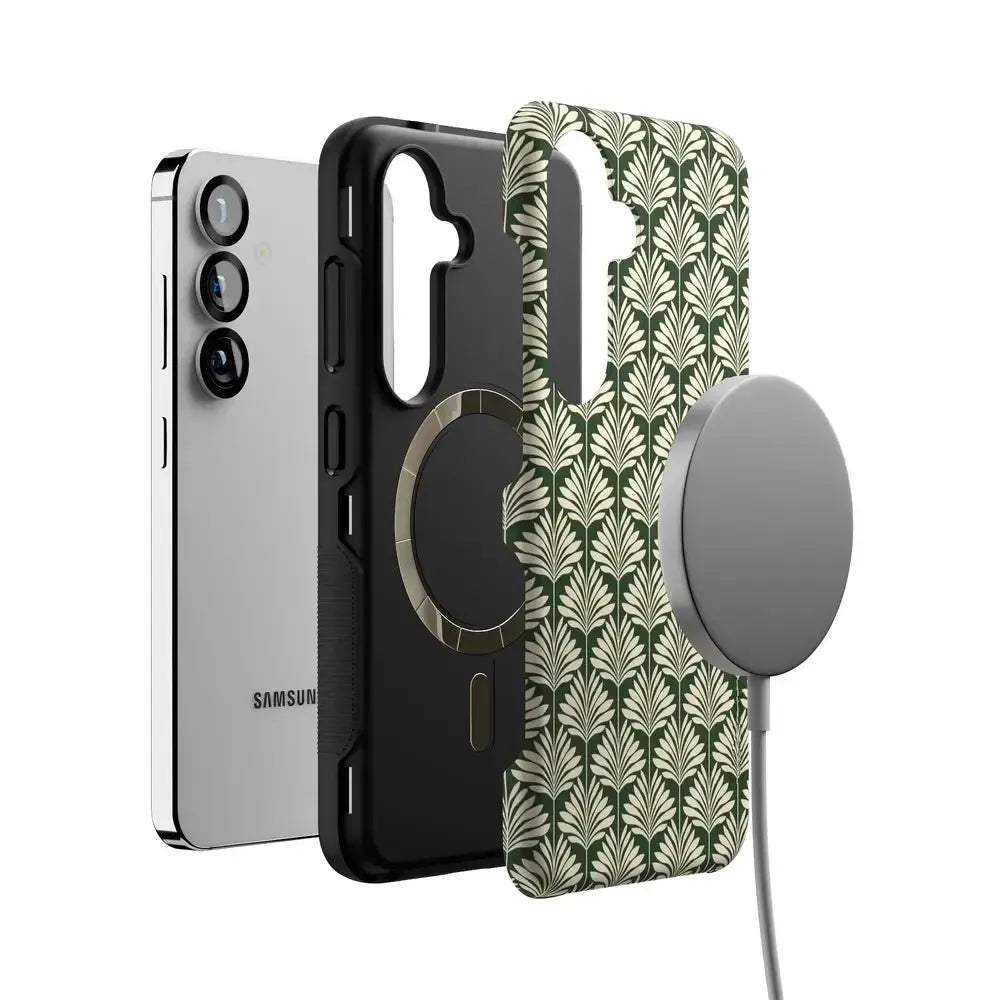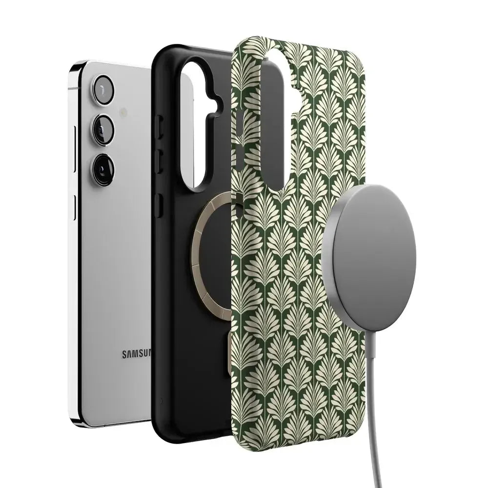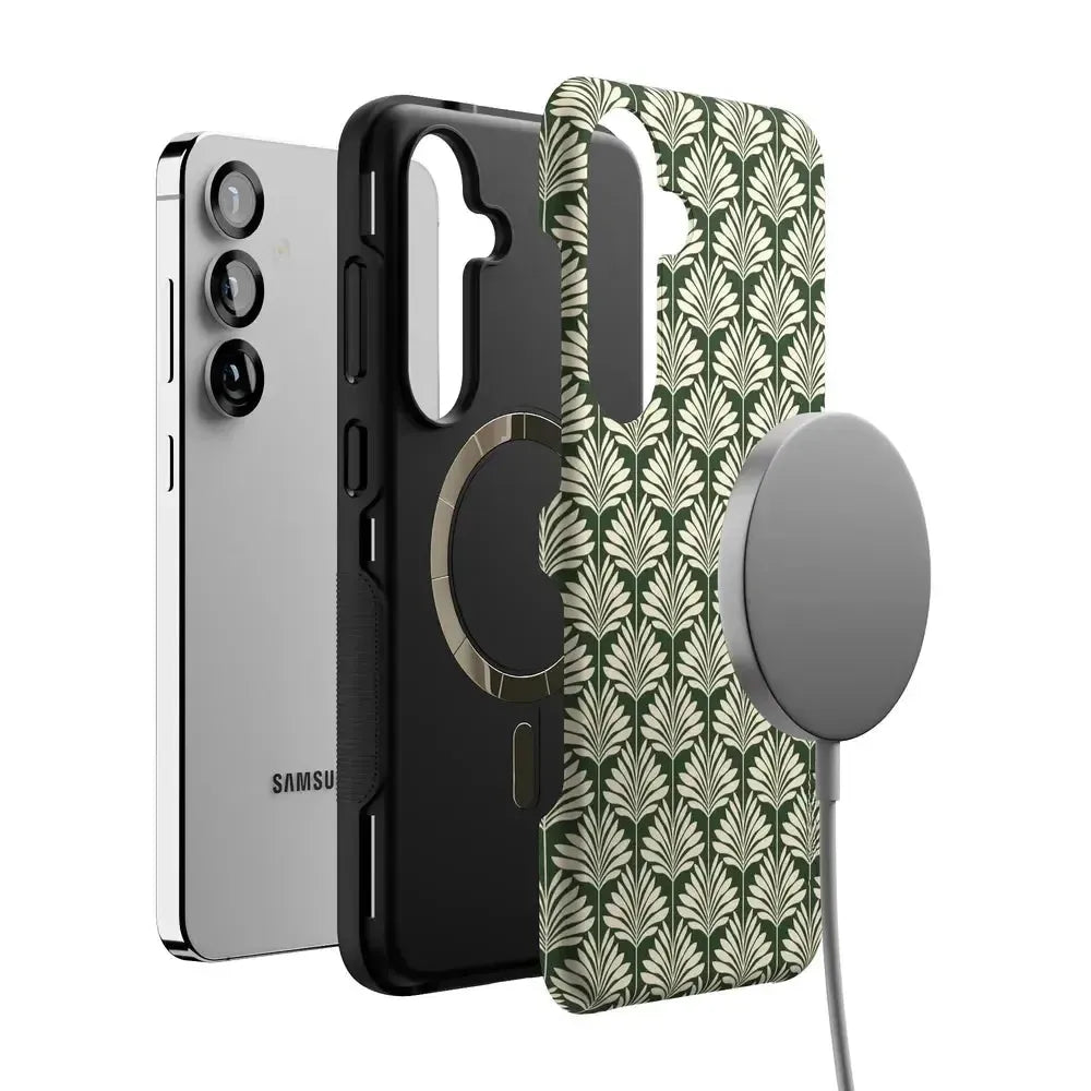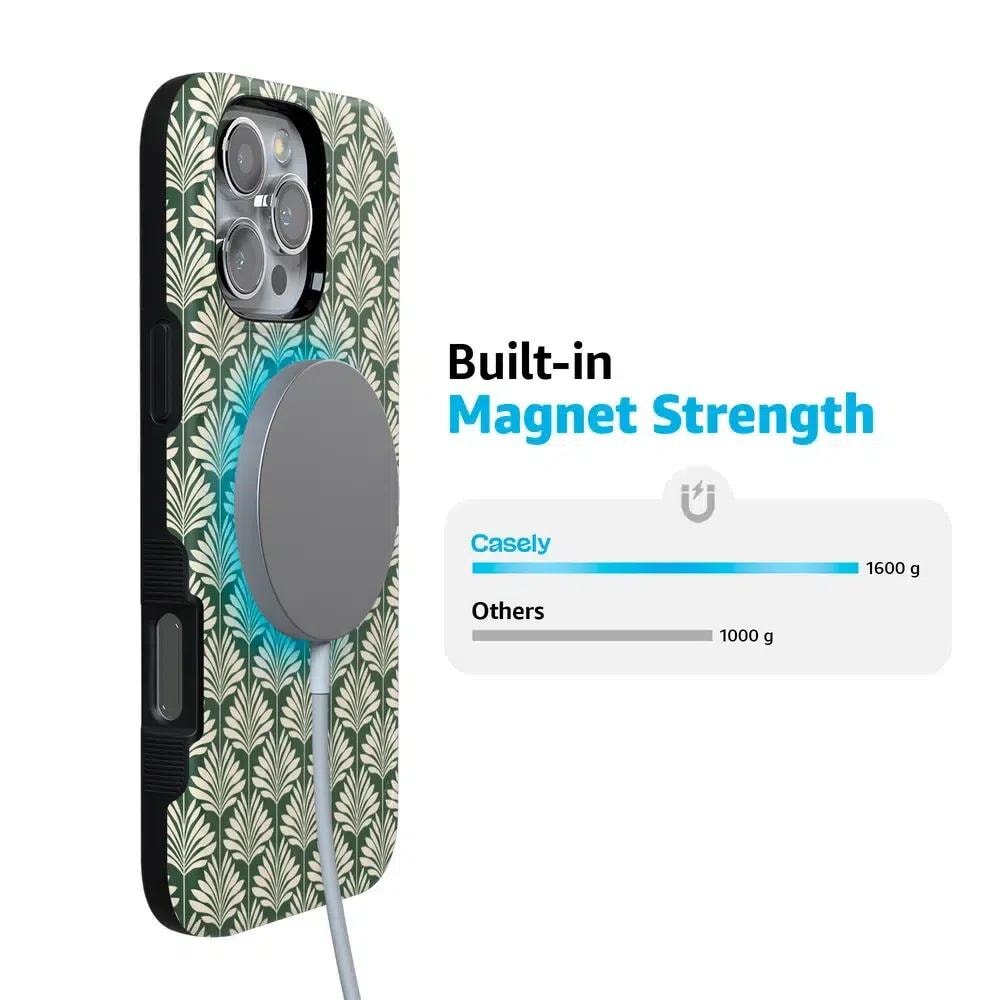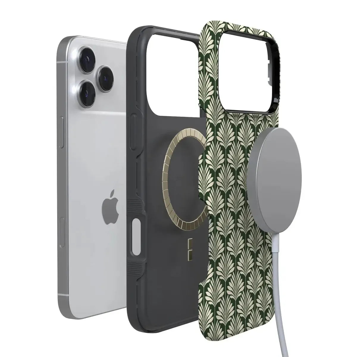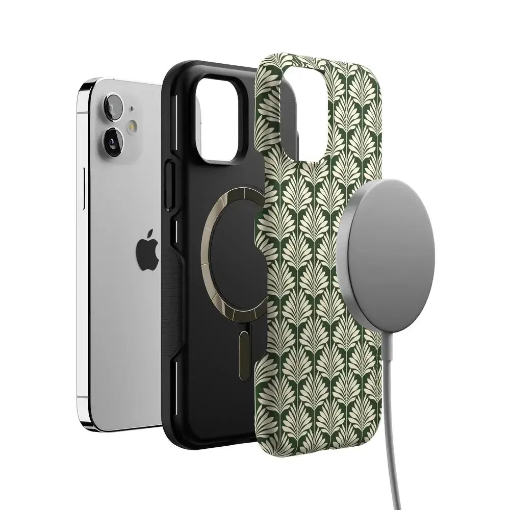 A little retro, a little refined—Cabana Nights is the phone case that brings vintage resort style into everyday life. Part of the Boyfriend Collection, this design features a bold, repeating palm motif in soft cream against deep green for a pattern that’s eye-catching but totally wearable. It’s inspired by old-school hotel wallpaper, tropical nights, and laid-back summer energy.