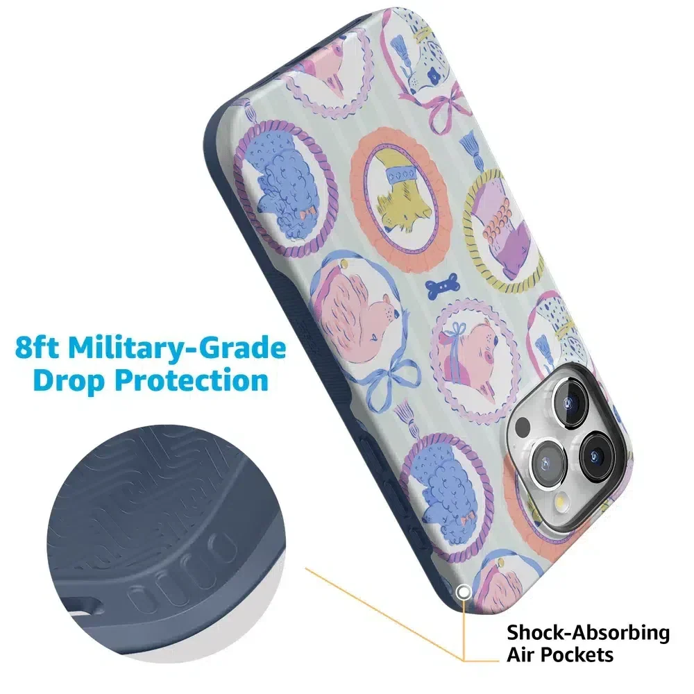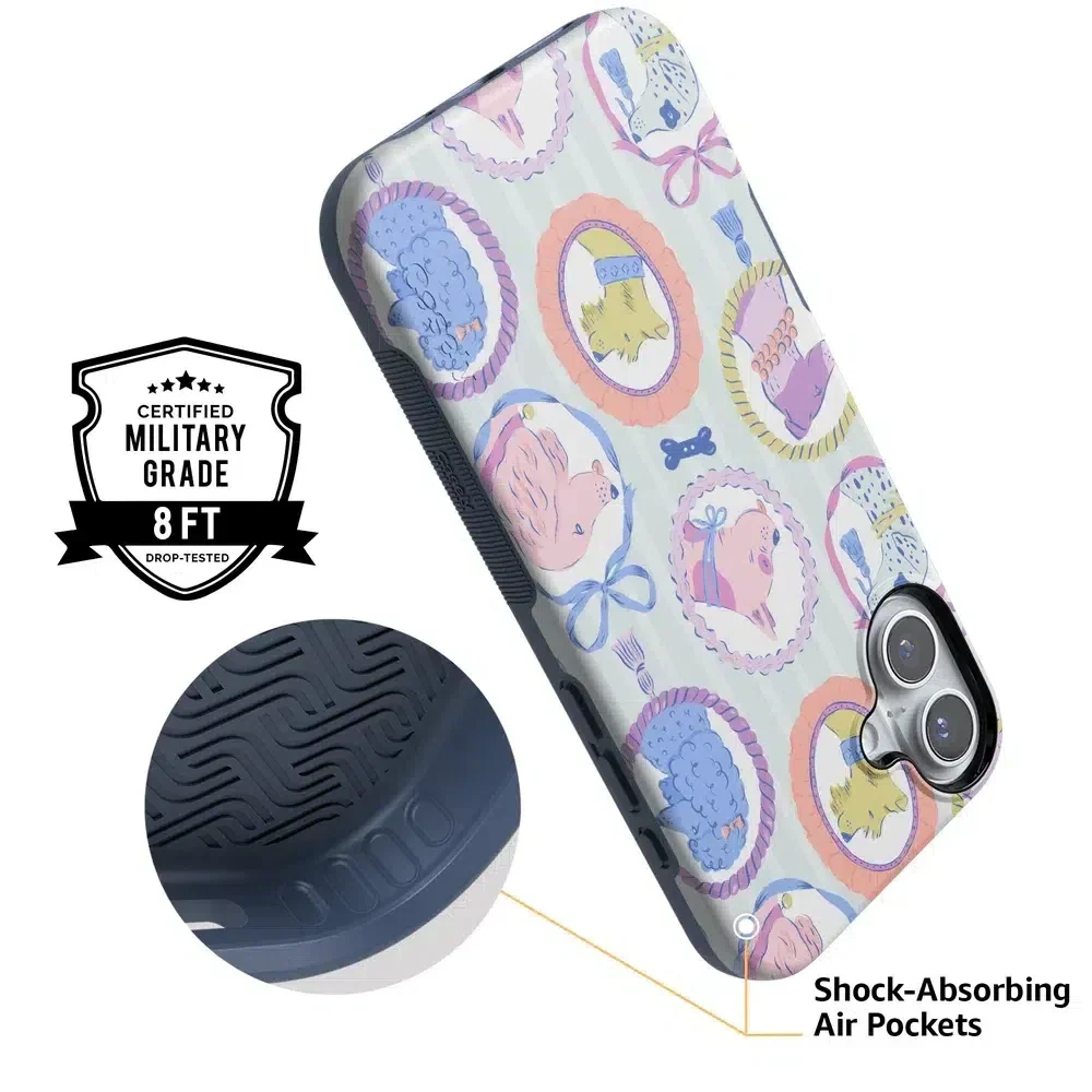 Calling all dog lovers! The Chateau Pups | French Dog Case is here to add some Parisian flair to your phone. Featuring adorable, artsy pups in fancy vintage-style frames, this case is the perfect mix of cute and classy. With soft pastel colors and playful details, it’s made for anyone who loves a little whimsy. Plus, it’s MagSafe® compatible and built for everyday protection—because style should never mean sacrificing function!