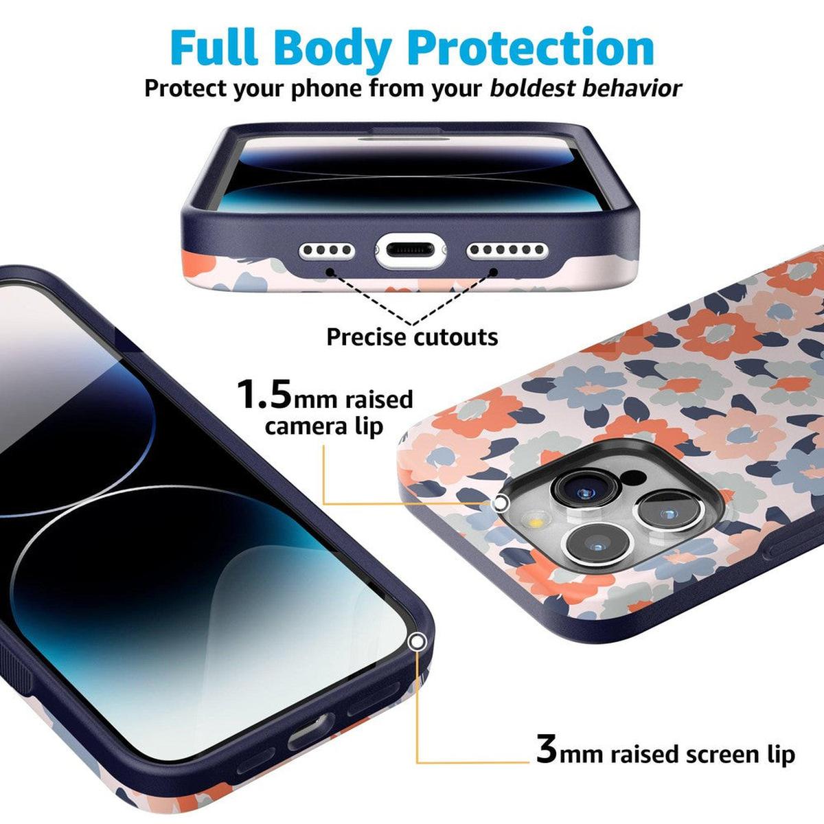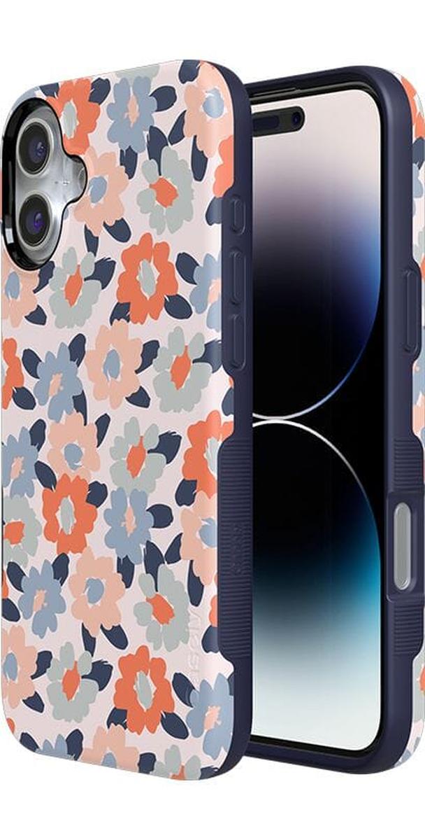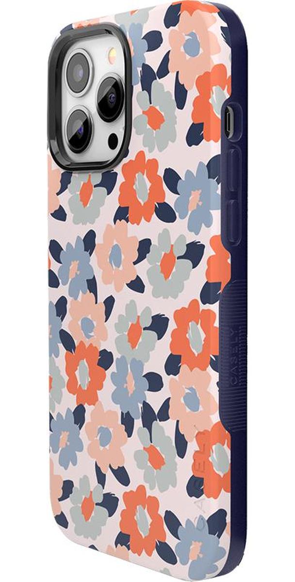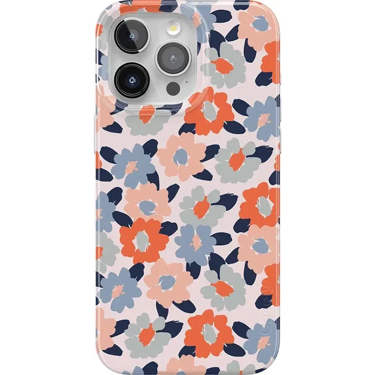 This Pastel Floral Case features beautiful orange, peach, and blue flowers. Dark blue petals accent all the flowers, which pop against the light pink background. While these pastel colors fit perfectly into the springtime, they can beautifully complement or contrast any theme year-round. Carry this accessory into the summertime or allow it to brighten up a dreary winter season.
