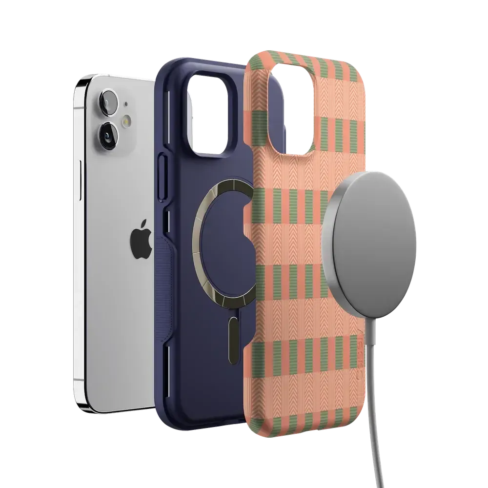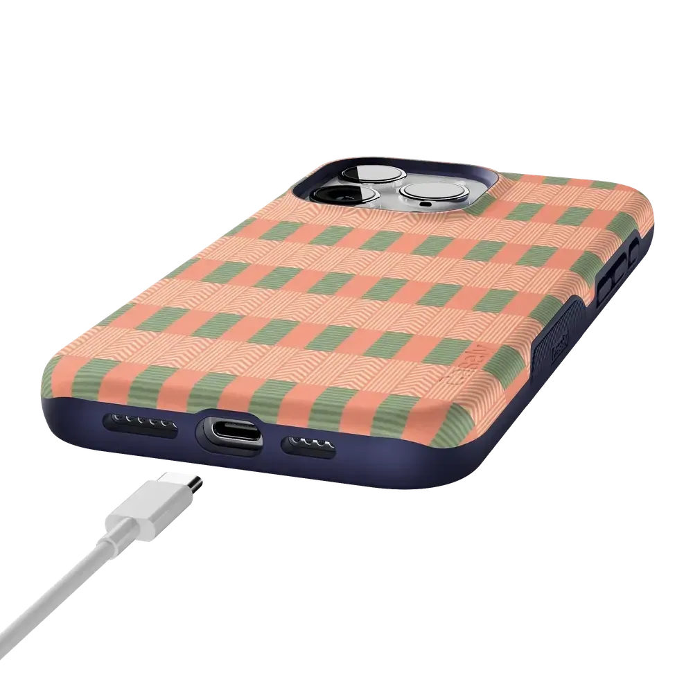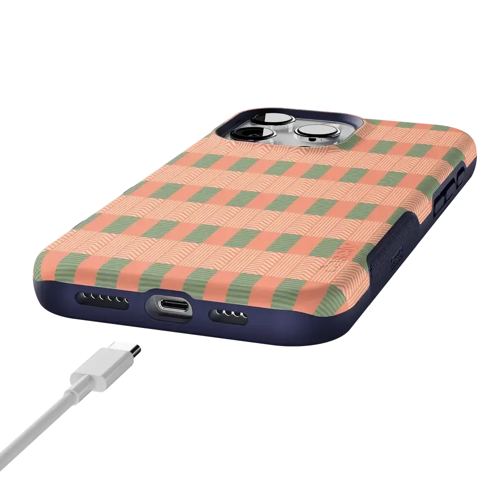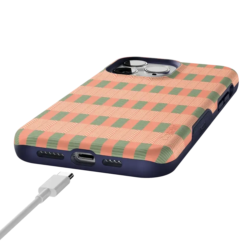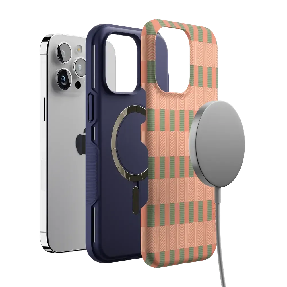 Meet your new poolside essential: the Grand Cabana Case. This bold yet breezy design features alternating peach and olive stripes with subtle chevron detailing that feels right at home at a chic beach club. The color palette is warm, sun-faded, and sophisticated—like a perfectly broken-in cabana towel or your favorite vacation tote.