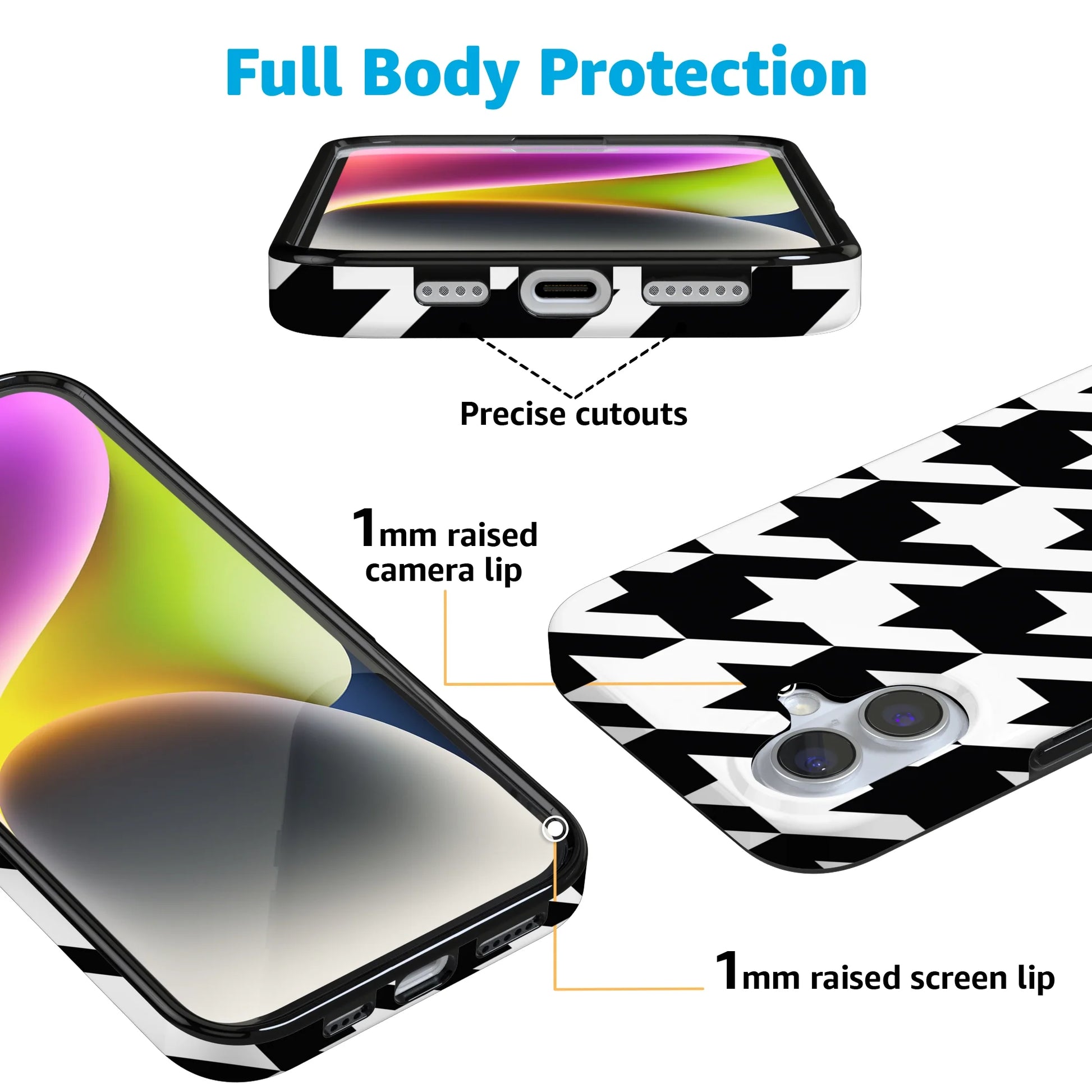 This high-contrast Houndstooth case is designed with your baby's visual and sensory development in mind. Featuring striking high-contrast patterns, the case boasts an array of black and white geometric shapes to catch your little one's eye and stimulate their developing vision.