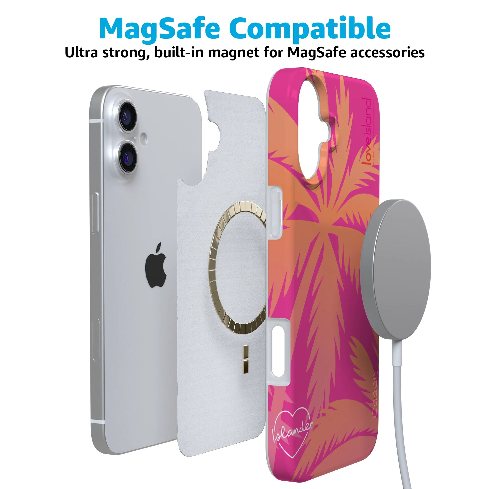 This case is giving villa vibes only. The Islander Love Island Case is your official ticket to feeling like a bombshell all summer long. Featuring bold pink and orange palm fronds and the signature “Islander” heart graphic, this ultra-protective case brings the heat while keeping your phone protected. Whether you're poolside, on a rooftop, or just manifesting your next recoupling, this case is the perfect blend of fun, flirty, and functional. Fully licensed Love Island merch, ready to graft its way into your rotation.