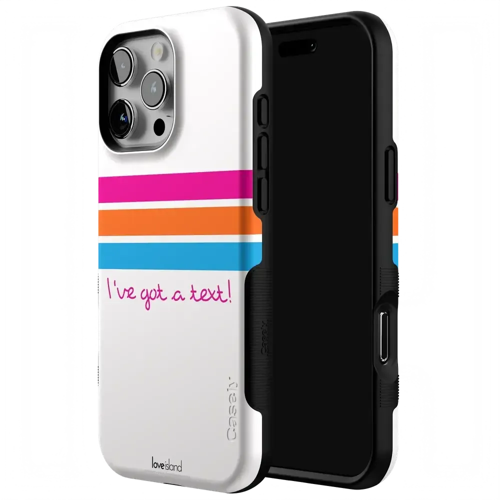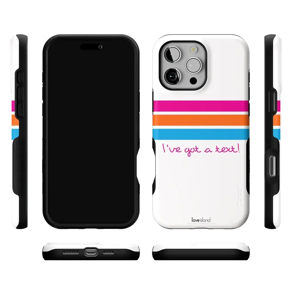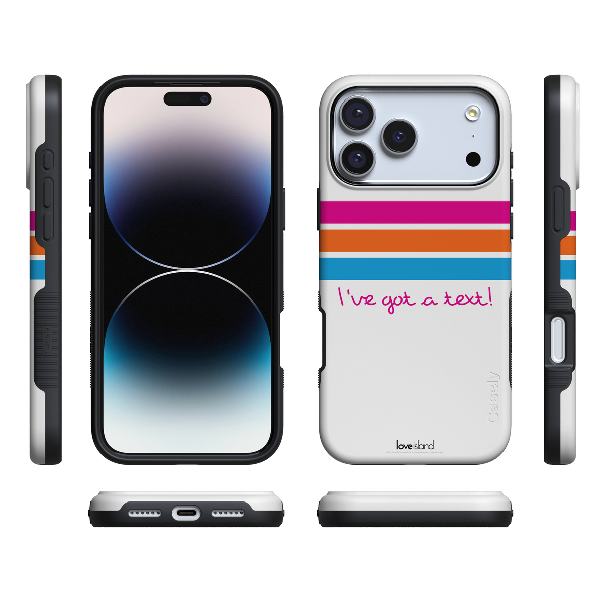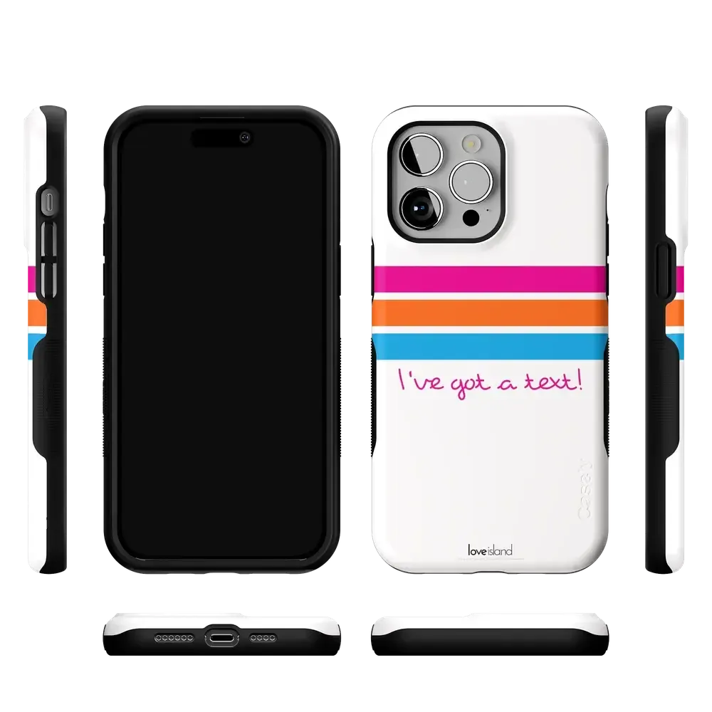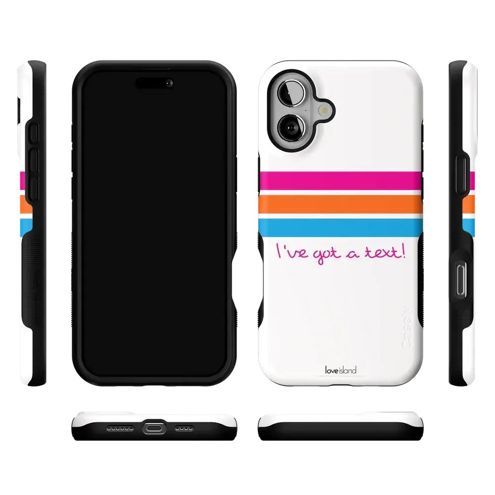 I've got a text! The most iconic message in reality TV history now lives rent-free on your phone case. The official Love Island Case features the show’s signature stripes and the unforgettable phrase in flirty pink script, all on a sleek case. It’s cute, colorful, and ready to turn heads—just like you. Designed for maximum protection and peak villa vibes, this case is your summer essential whether you're poolside, beach-bound, or cracking on in the group chat. Officially licensed and 100% your type on paper.