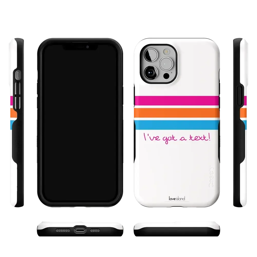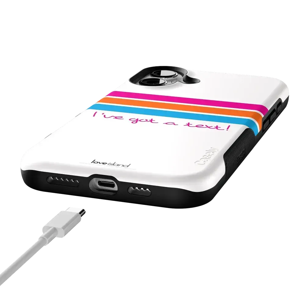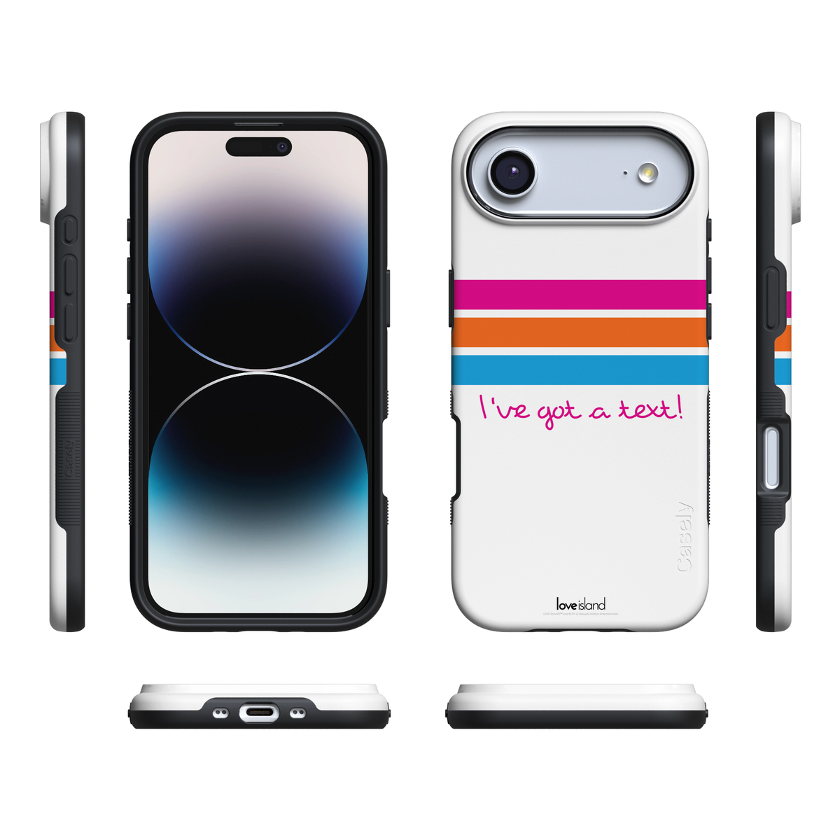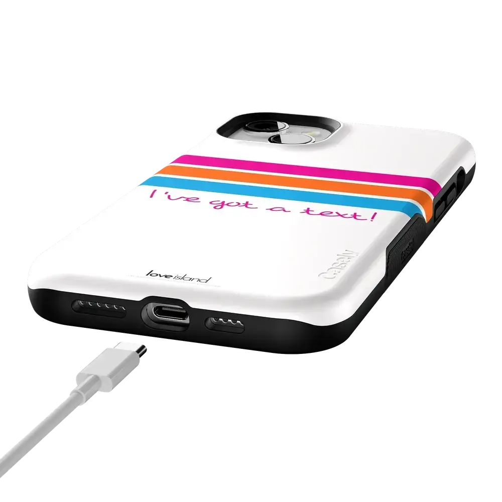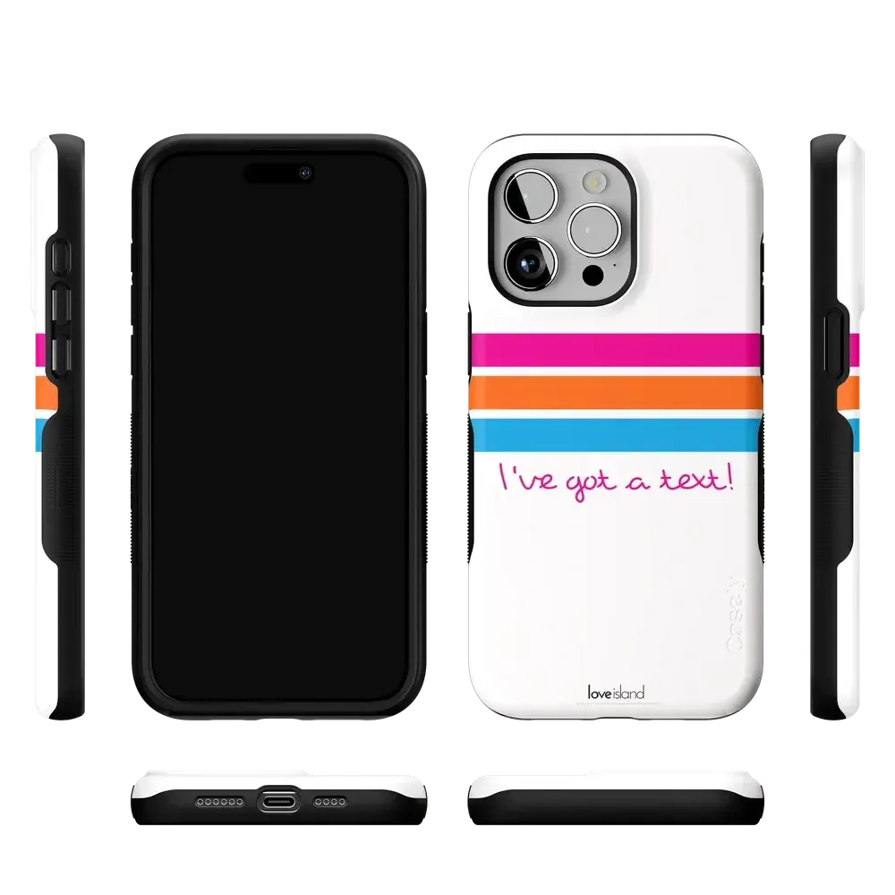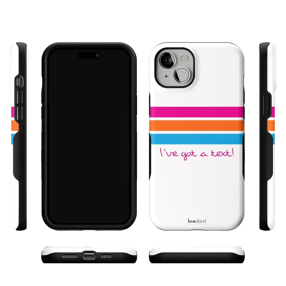 I've got a text! The most iconic message in reality TV history now lives rent-free on your phone case. The official Love Island Case features the show’s signature stripes and the unforgettable phrase in flirty pink script, all on a sleek case. It’s cute, colorful, and ready to turn heads—just like you. Designed for maximum protection and peak villa vibes, this case is your summer essential whether you're poolside, beach-bound, or cracking on in the group chat. Officially licensed and 100% your type on paper.