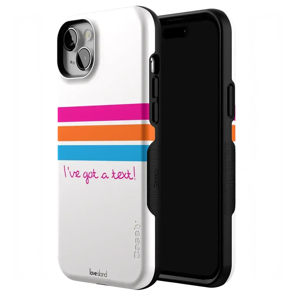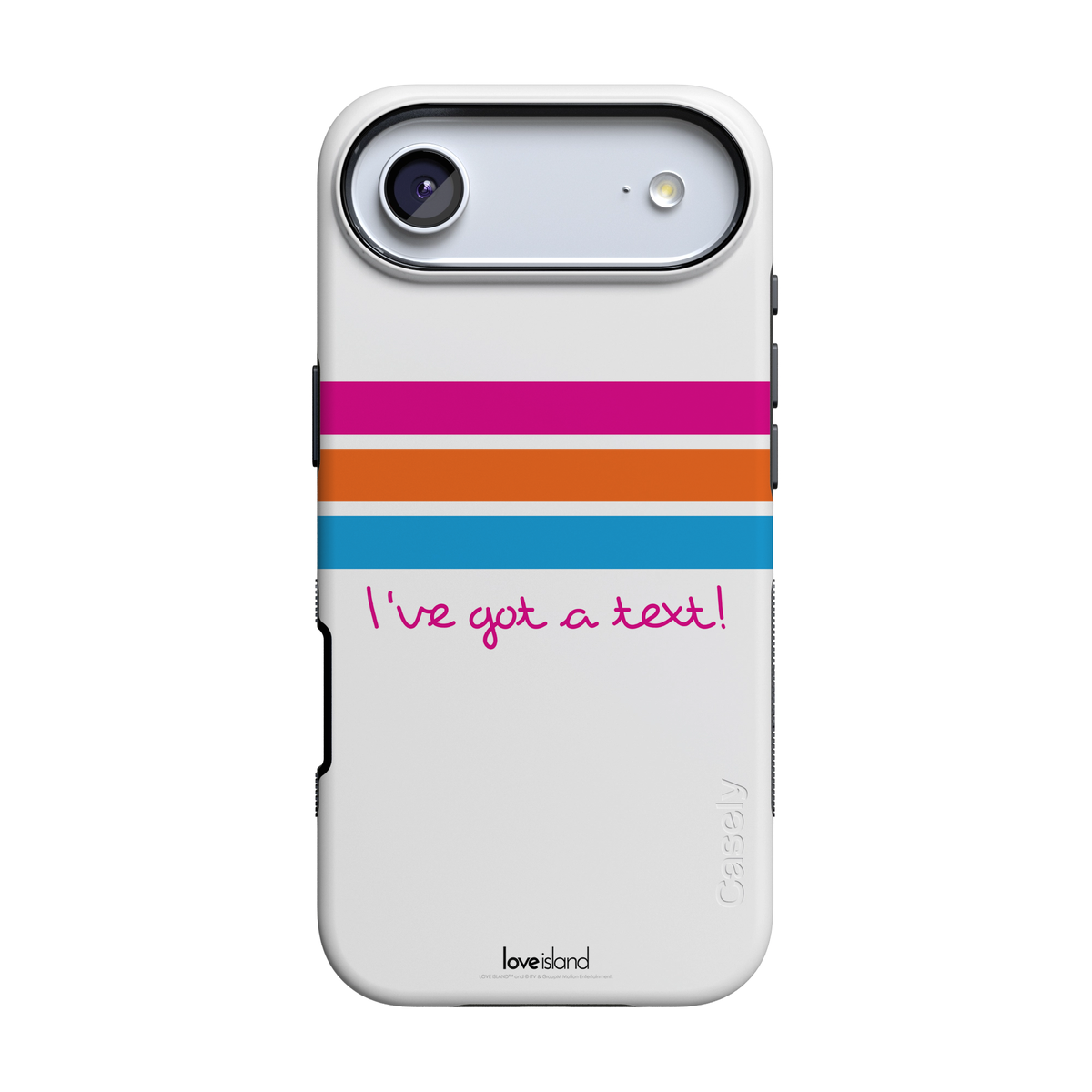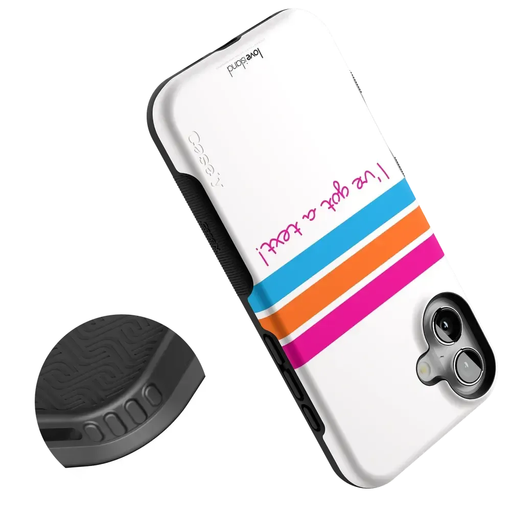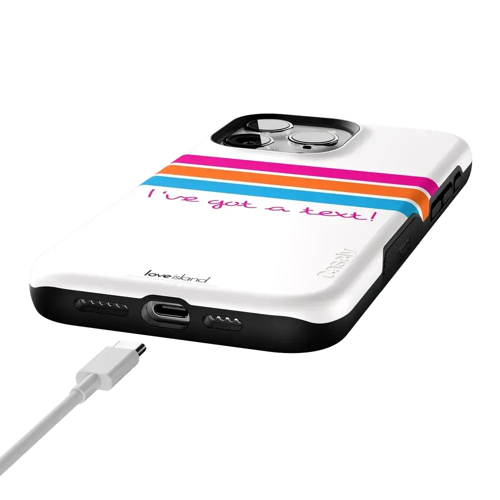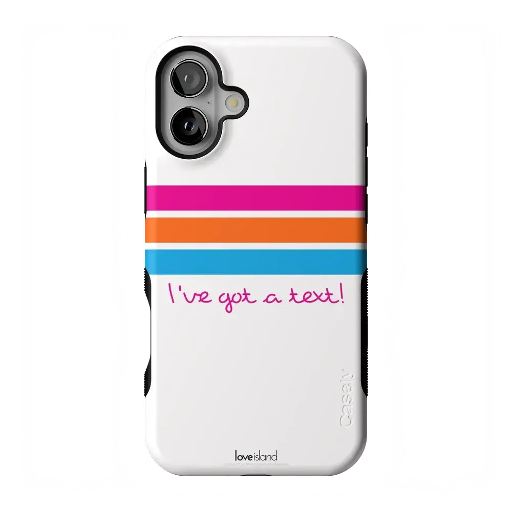 I've got a text! The most iconic message in reality TV history now lives rent-free on your phone case. The official Love Island Case features the show’s signature stripes and the unforgettable phrase in flirty pink script, all on a sleek case. It’s cute, colorful, and ready to turn heads—just like you. Designed for maximum protection and peak villa vibes, this case is your summer essential whether you're poolside, beach-bound, or cracking on in the group chat. Officially licensed and 100% your type on paper.
