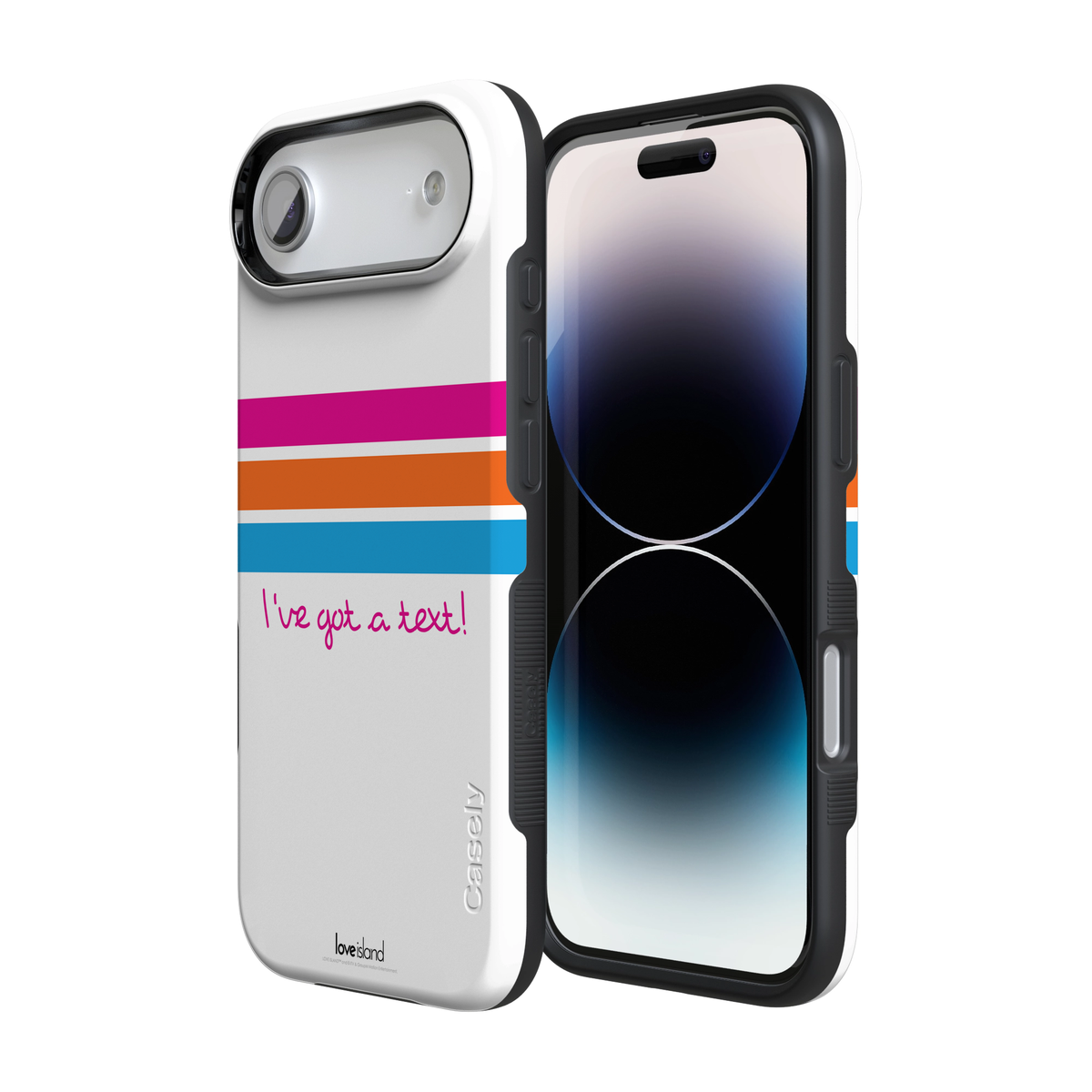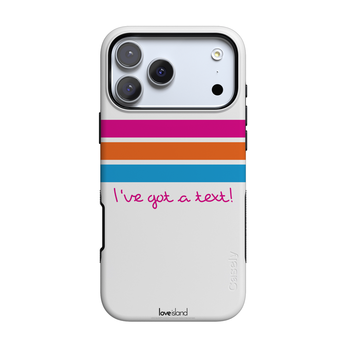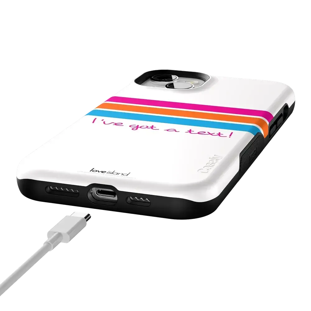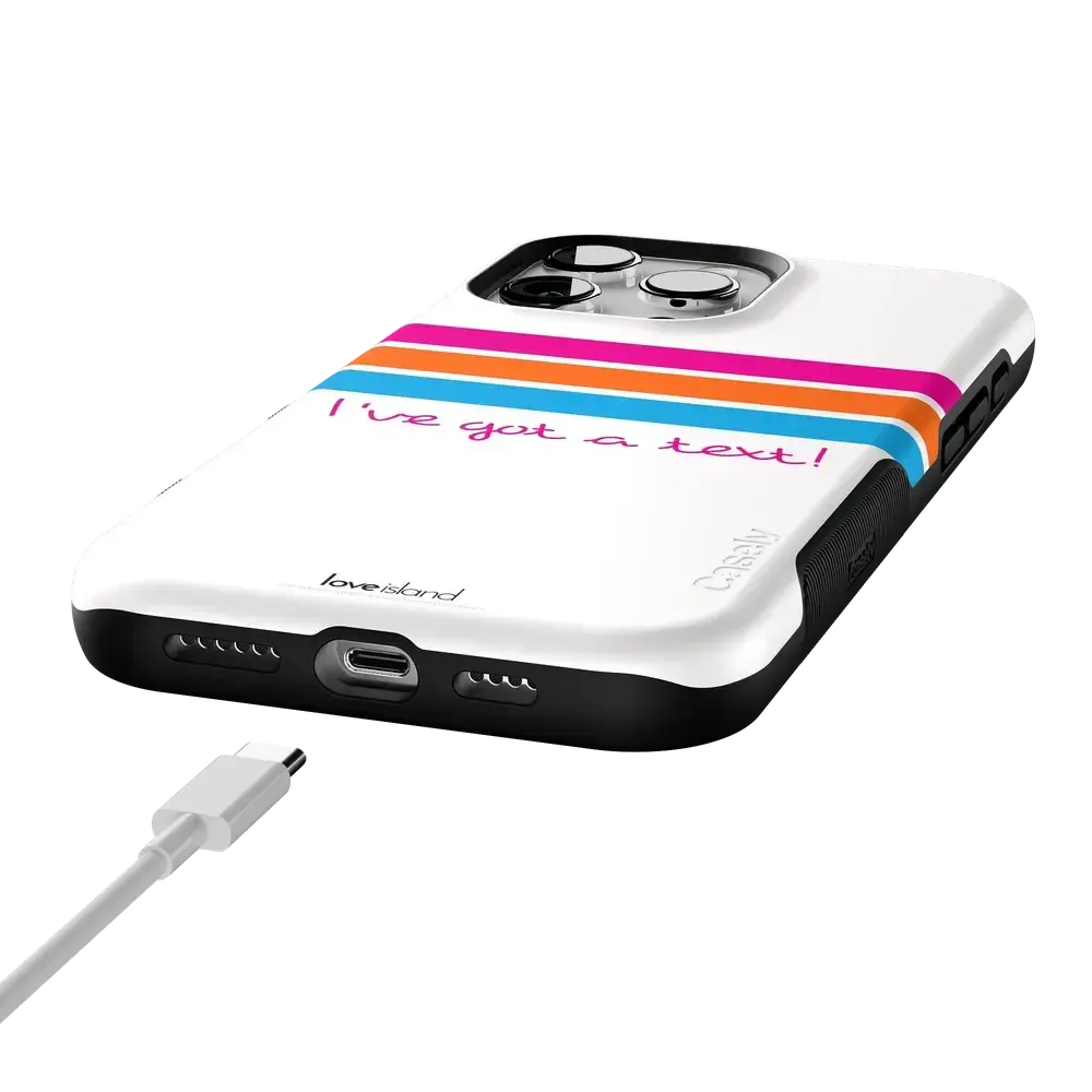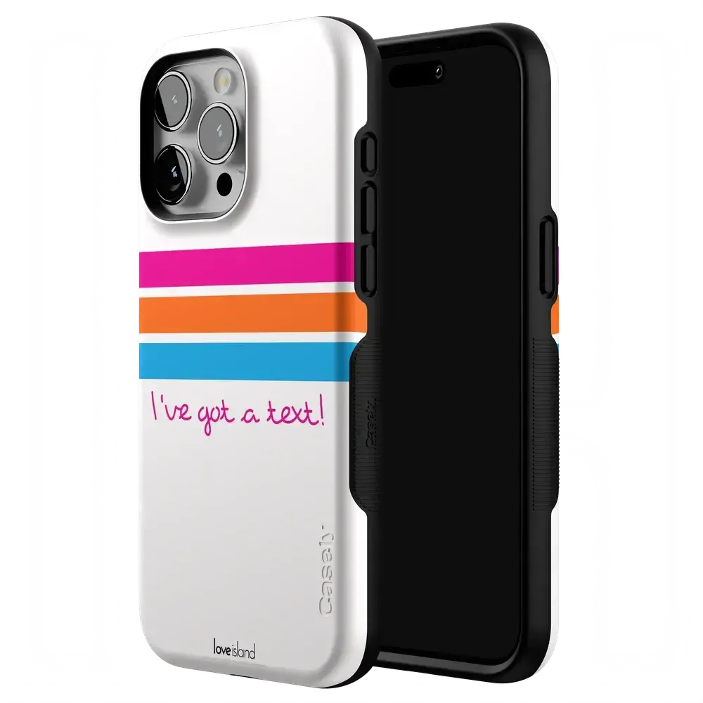 I've got a text! The most iconic message in reality TV history now lives rent-free on your phone case. The official Love Island Case features the show’s signature stripes and the unforgettable phrase in flirty pink script, all on a sleek case. It’s cute, colorful, and ready to turn heads—just like you. Designed for maximum protection and peak villa vibes, this case is your summer essential whether you're poolside, beach-bound, or cracking on in the group chat. Officially licensed and 100% your type on paper.