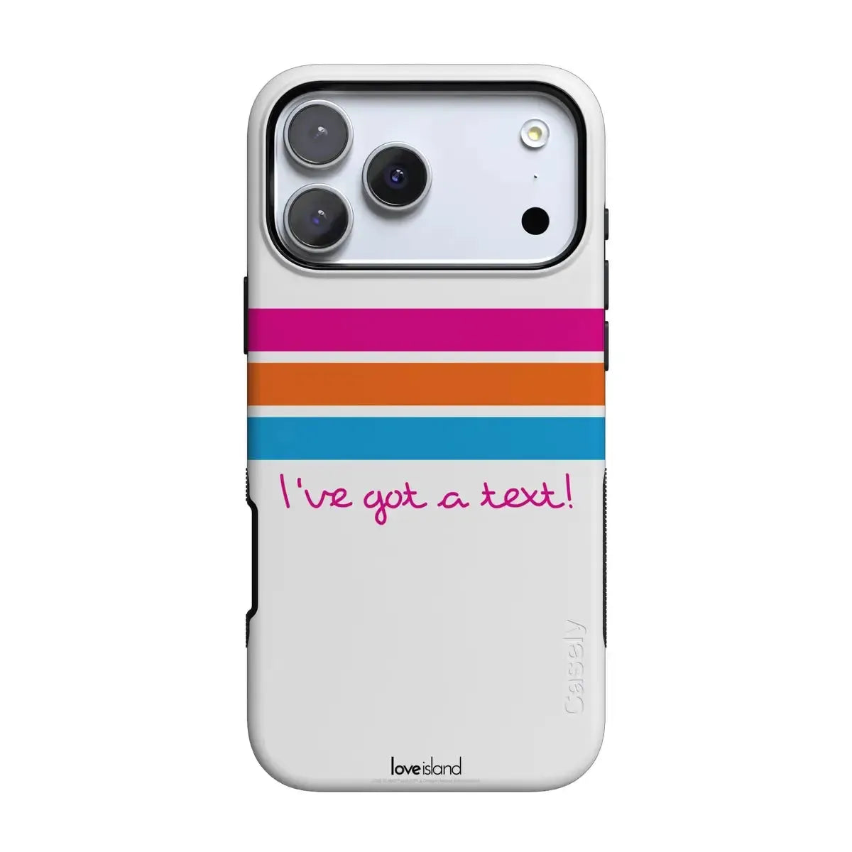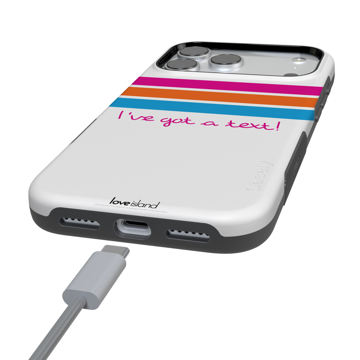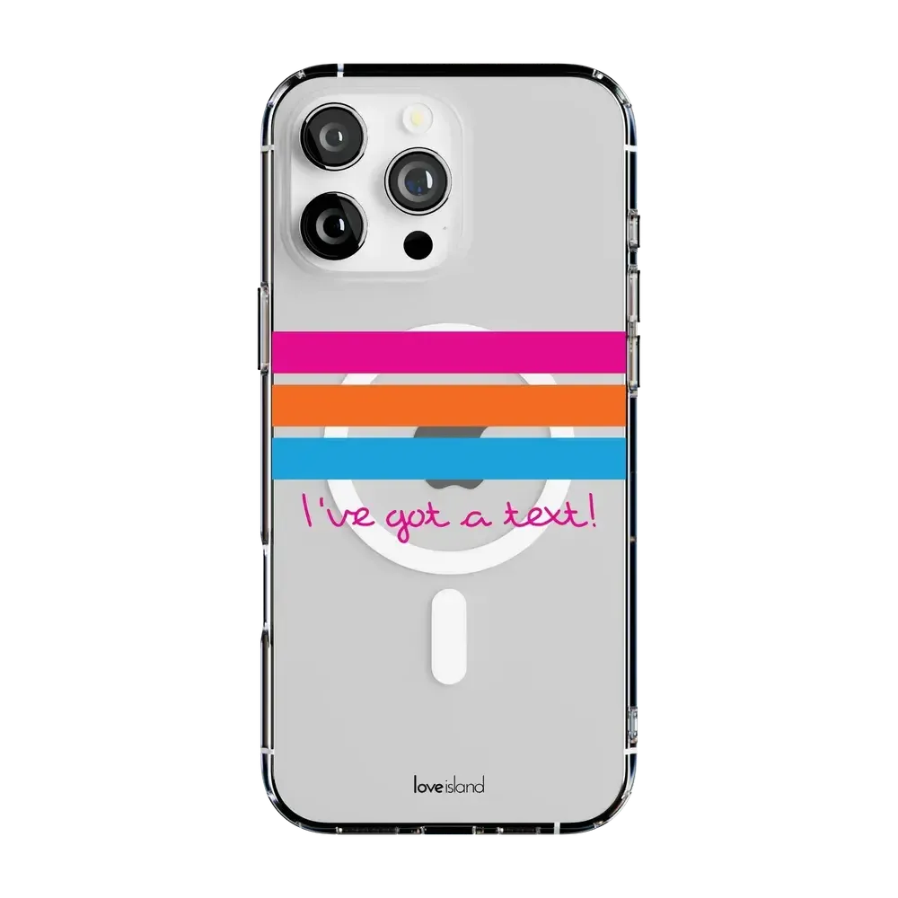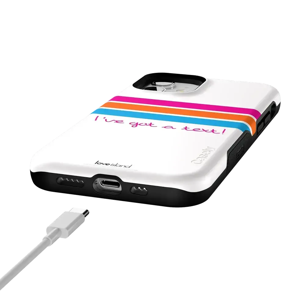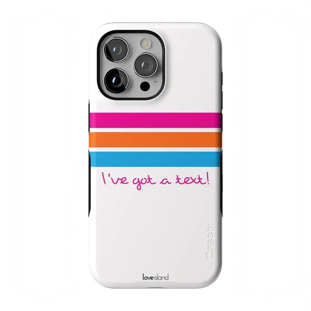 I've got a text! The most iconic message in reality TV history now lives rent-free on your phone case. The official Love Island Case features the show’s signature stripes and the unforgettable phrase in flirty pink script, all on a sleek case. It’s cute, colorful, and ready to turn heads—just like you. Designed for maximum protection and peak villa vibes, this case is your summer essential whether you're poolside, beach-bound, or cracking on in the group chat. Officially licensed and 100% your type on paper.