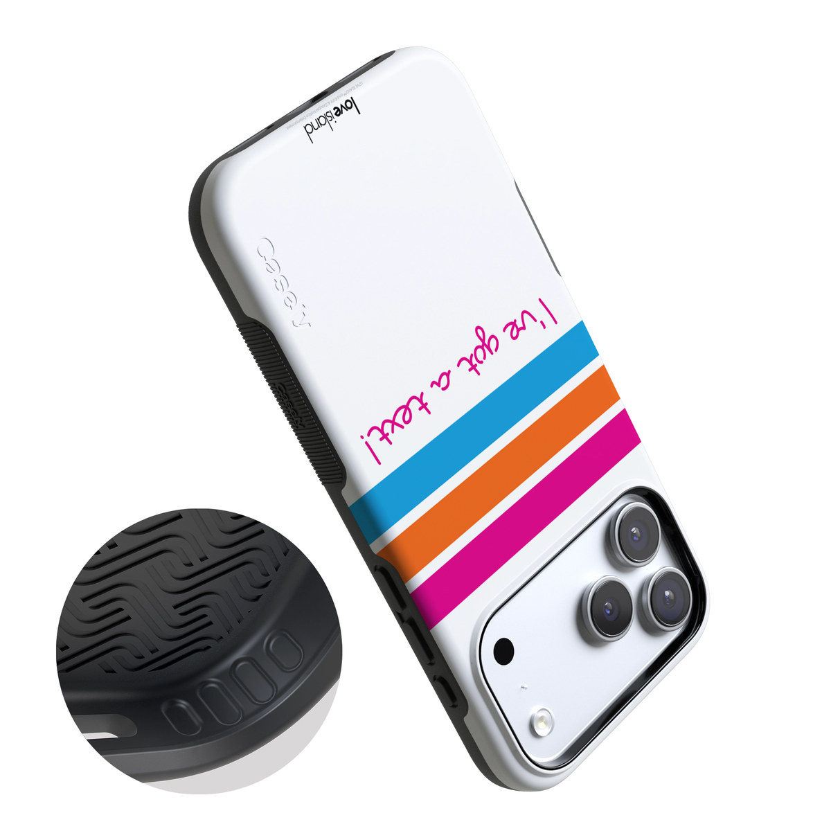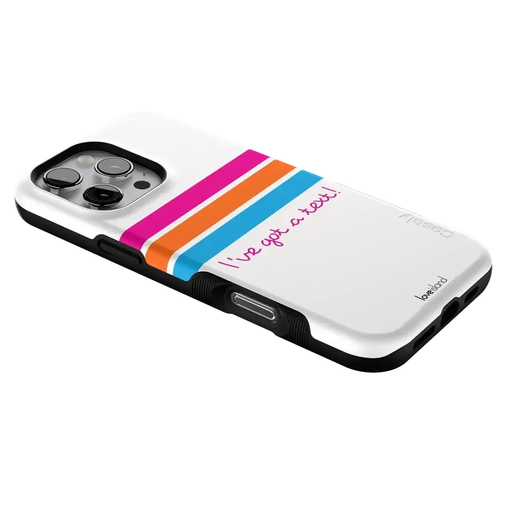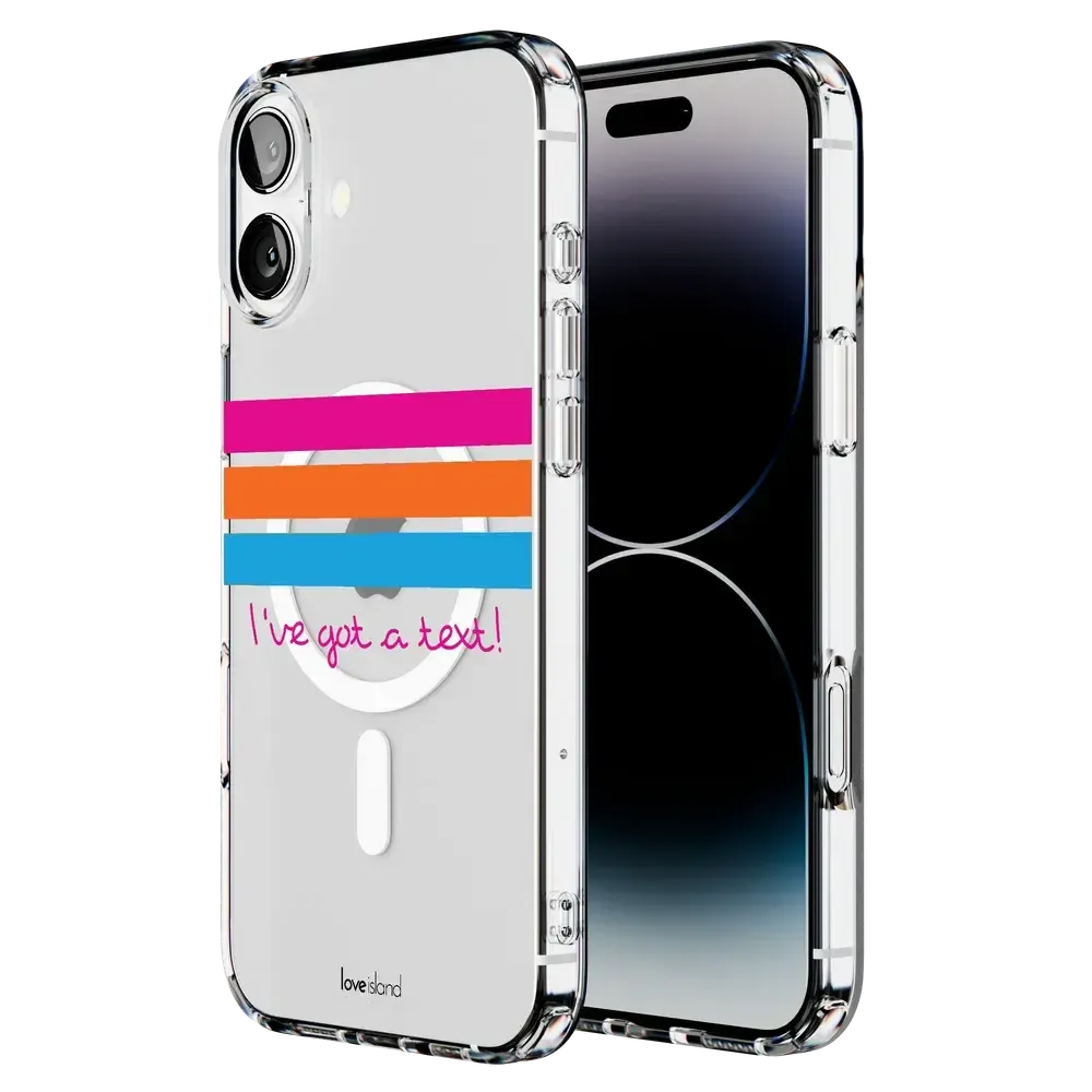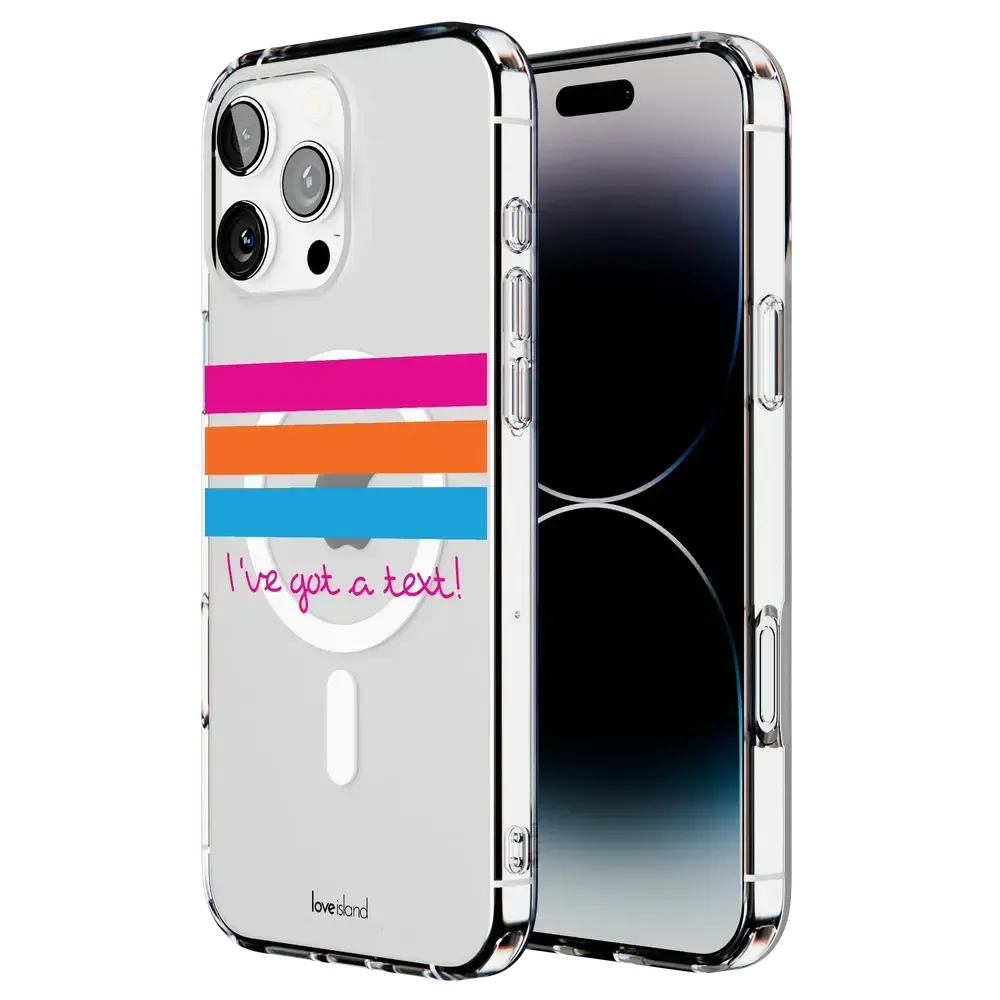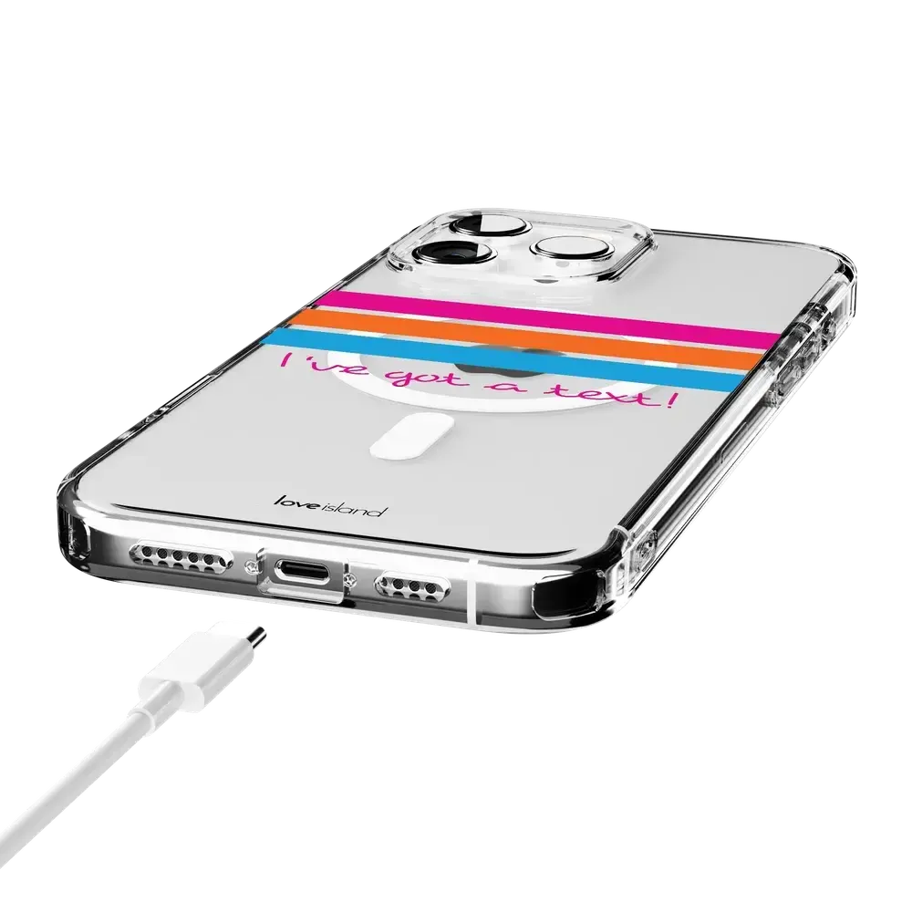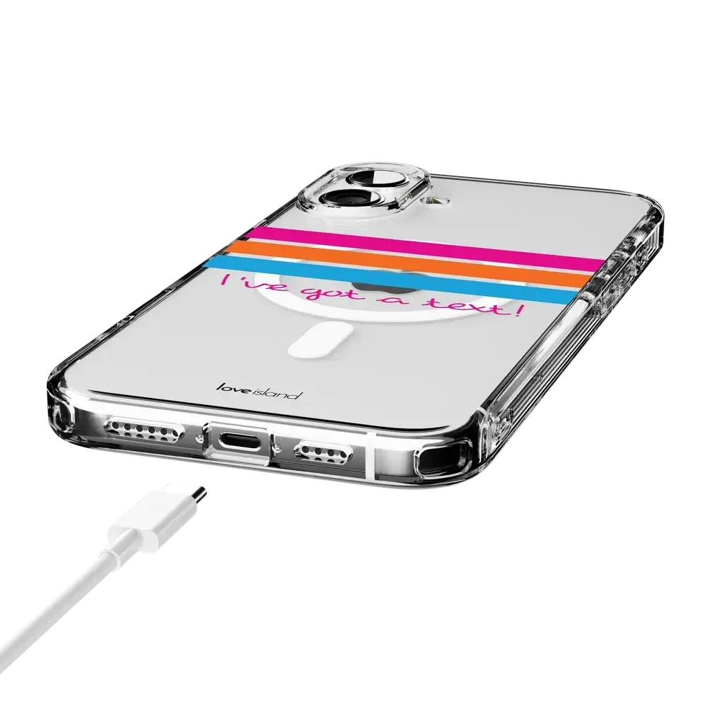 I've got a text! The most iconic message in reality TV history now lives rent-free on your phone case. The official Love Island Case features the show’s signature stripes and the unforgettable phrase in flirty pink script, all on a sleek case. It’s cute, colorful, and ready to turn heads—just like you. Designed for maximum protection and peak villa vibes, this case is your summer essential whether you're poolside, beach-bound, or cracking on in the group chat. Officially licensed and 100% your type on paper.