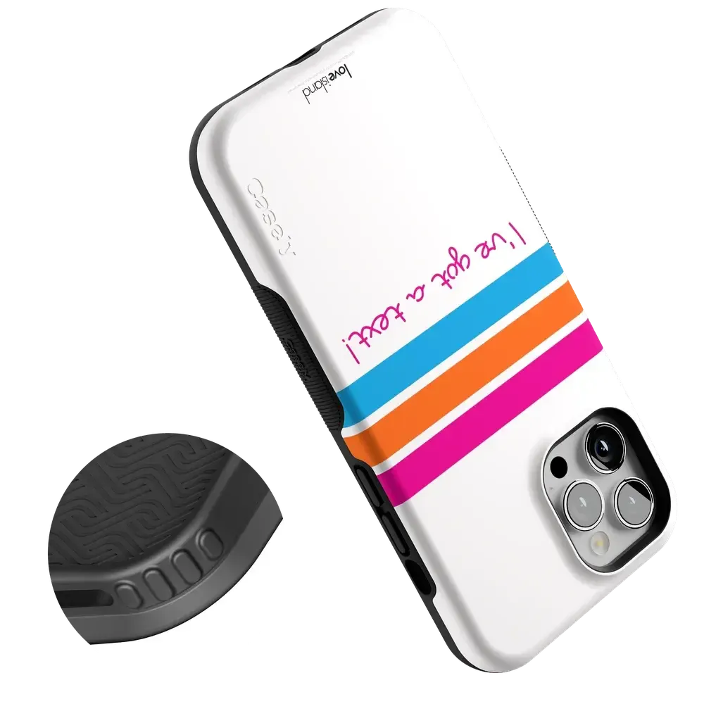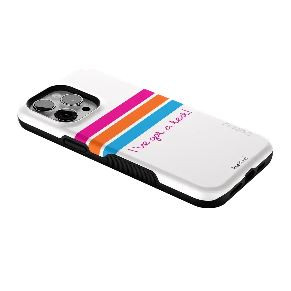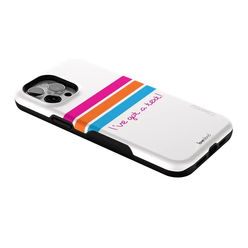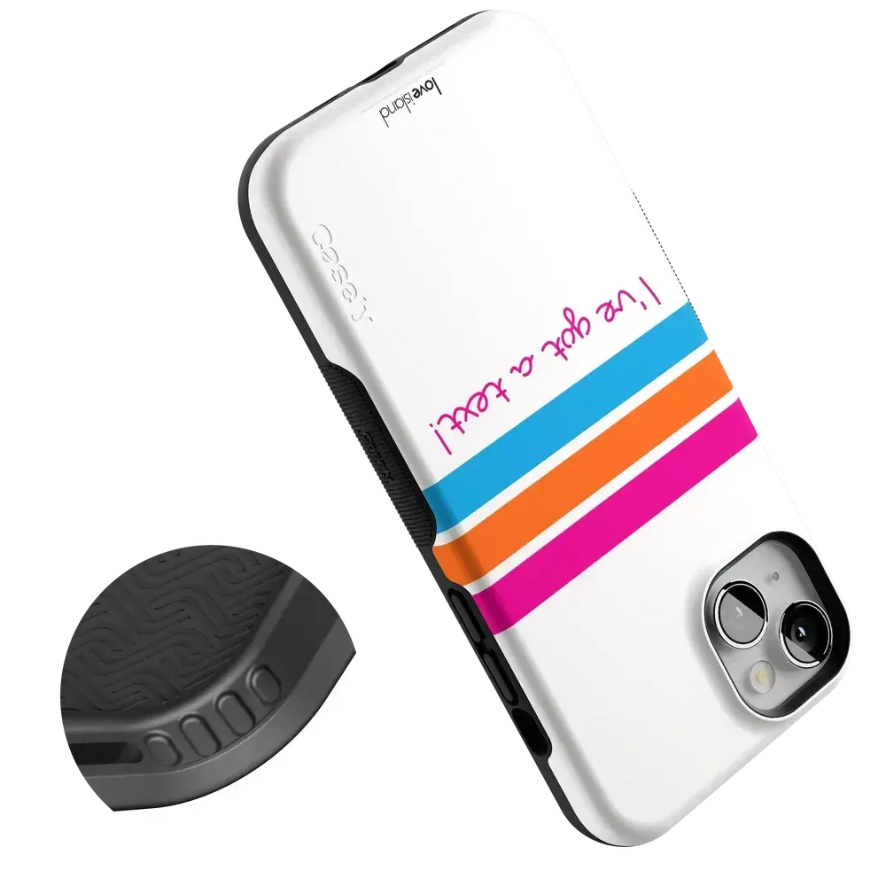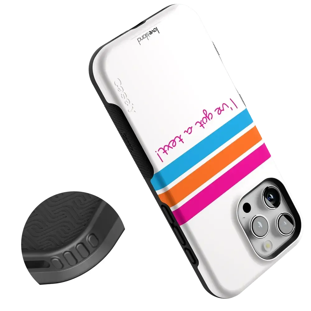 I've got a text! The most iconic message in reality TV history now lives rent-free on your phone case. The official Love Island Case features the show’s signature stripes and the unforgettable phrase in flirty pink script, all on a sleek case. It’s cute, colorful, and ready to turn heads—just like you. Designed for maximum protection and peak villa vibes, this case is your summer essential whether you're poolside, beach-bound, or cracking on in the group chat. Officially licensed and 100% your type on paper.