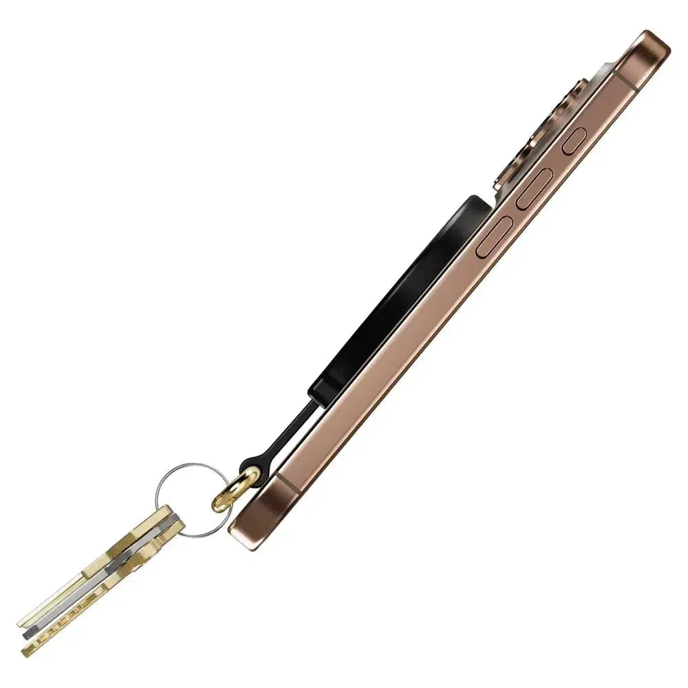 The MagRing+ Black Magnetic Adjustable Phone Ring with Keychain offers the ultimate secure and flexible grip for one-handed phone use. Featuring a soft silicone adjustable strap, you can customize the fit—keep it snug, loosen it for a relaxed hold, or lay it flat when not in use. The 360° swivel design ensures the perfect angle for comfort and stability, while the strong MagSafe-compatible magnet keeps it securely attached to your device. Plus, the gold key ring clip adds extra functionality, making it easy to attach keys so everything you need is securely in hand. Stay hands-free and stylish with the MagRing+!