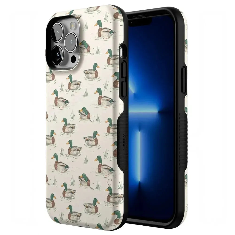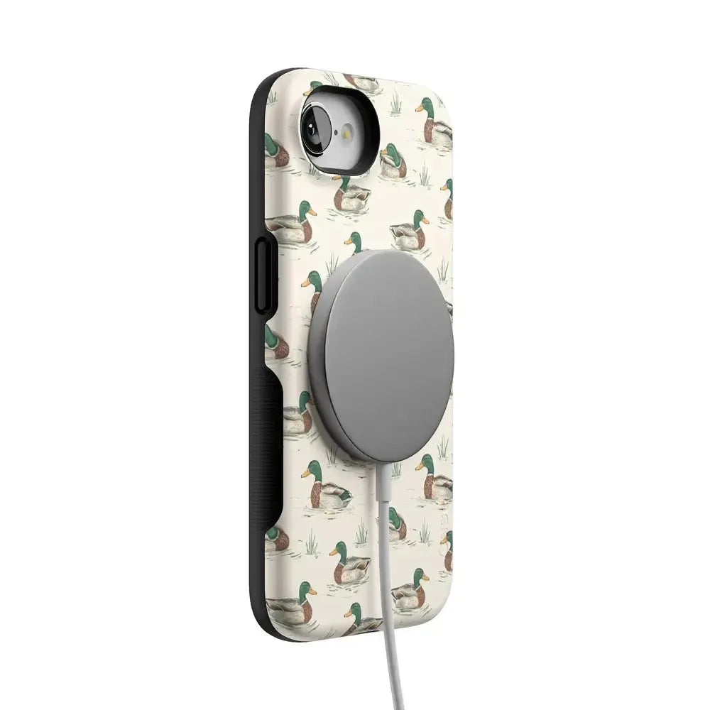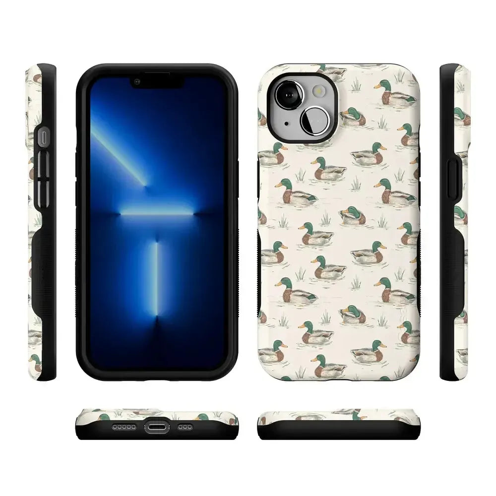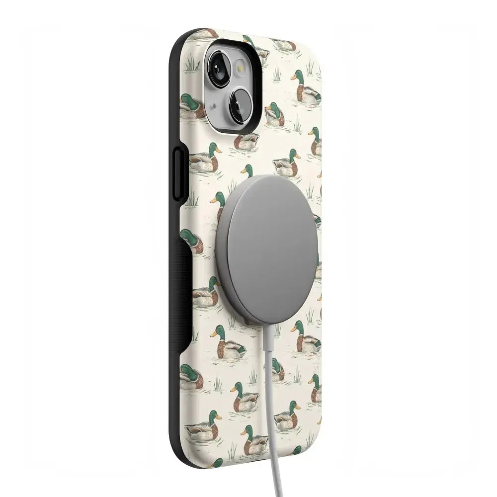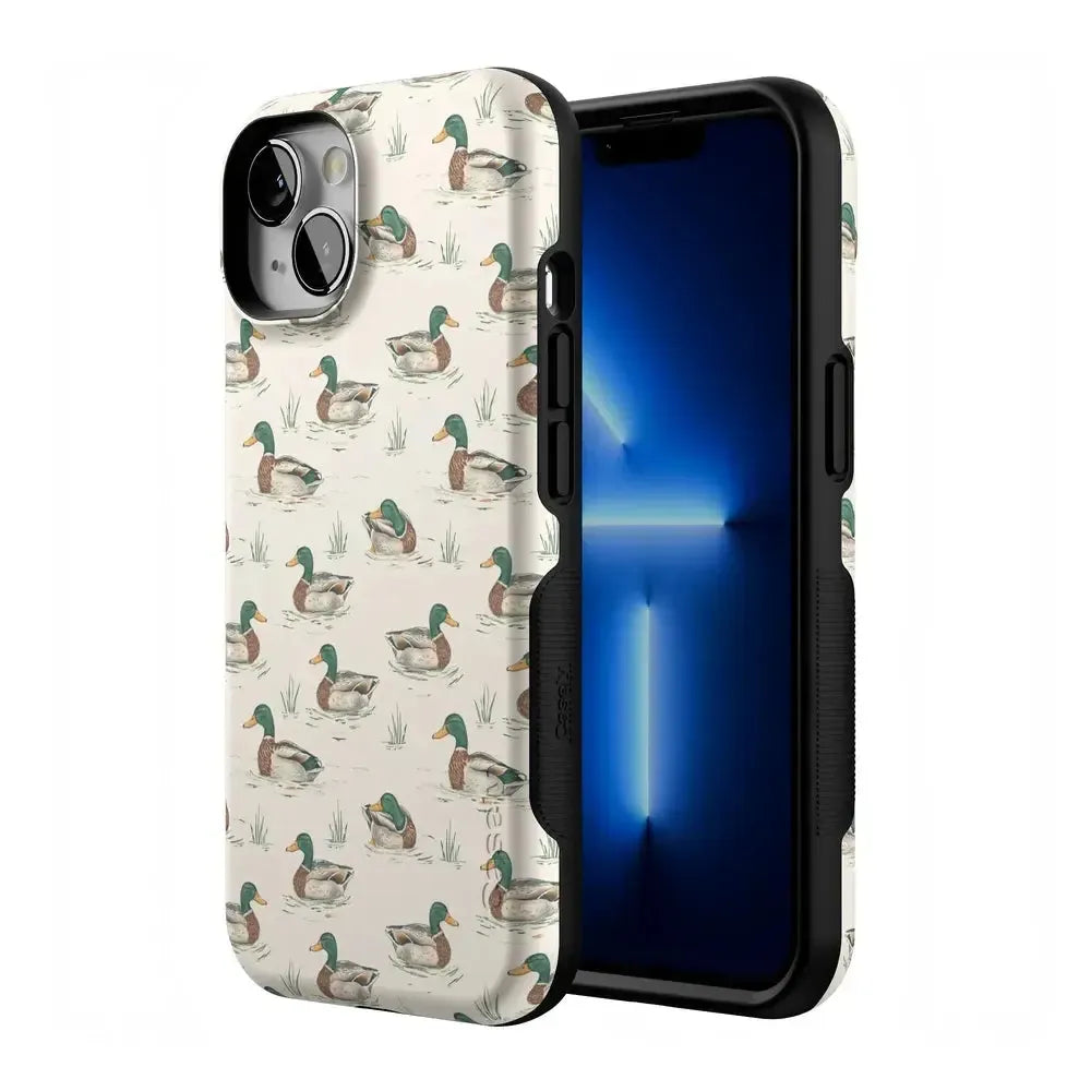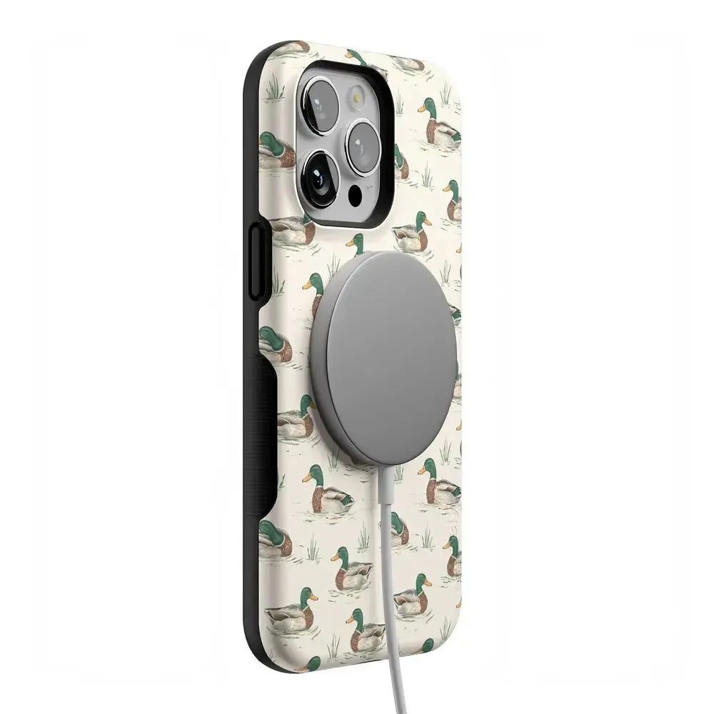 Bring a bit of countryside charm to your everyday carry with the Mallard & Co. phone case from our all-new Boyfriend Collection. Inspired by vintage sporting prints and laid-back cabin weekends, this case blends classic Americana with modern protection. A repeating mallard duck motif floats across a soft beige background, giving it that effortlessly cool, “borrowed-from-him-but-better” vibe.