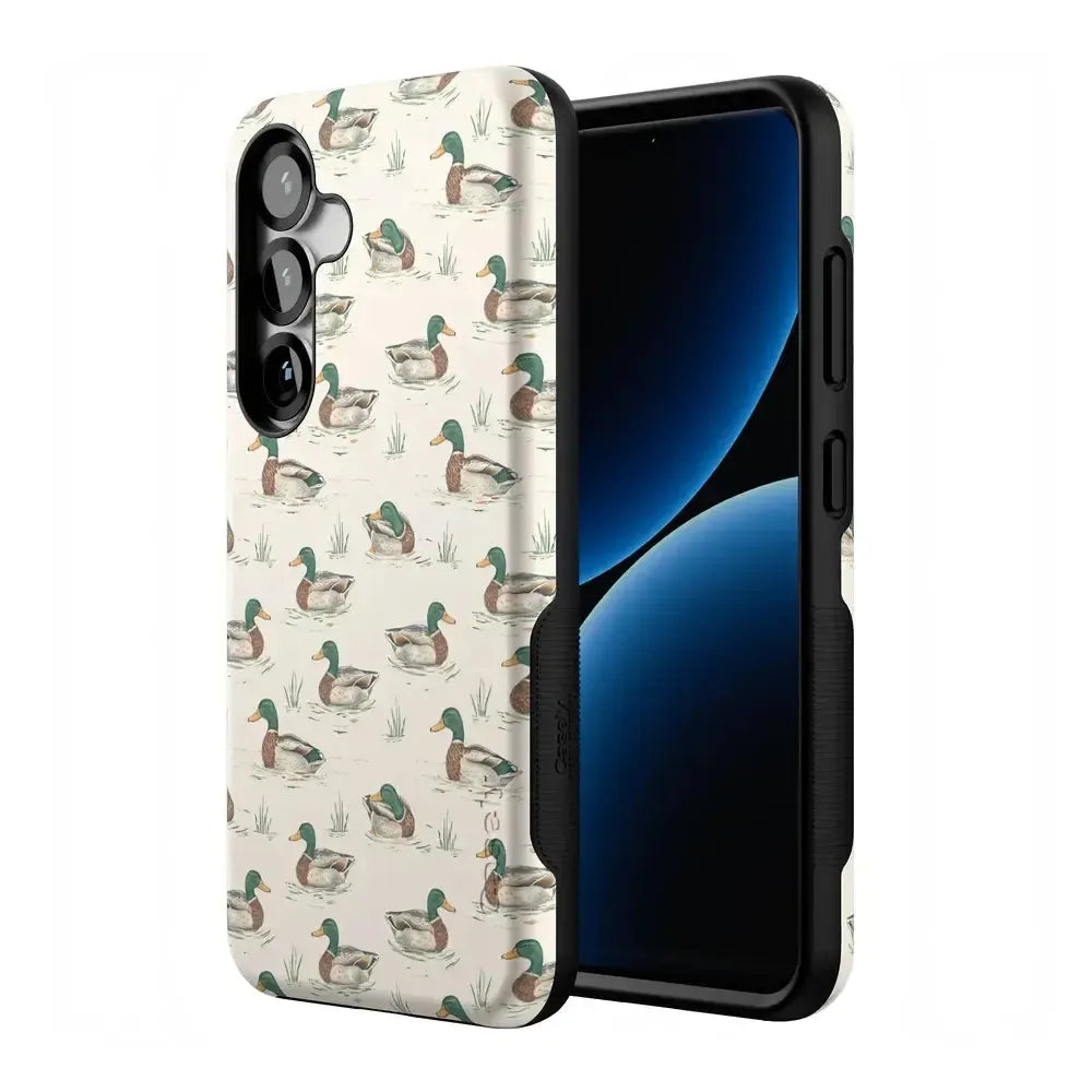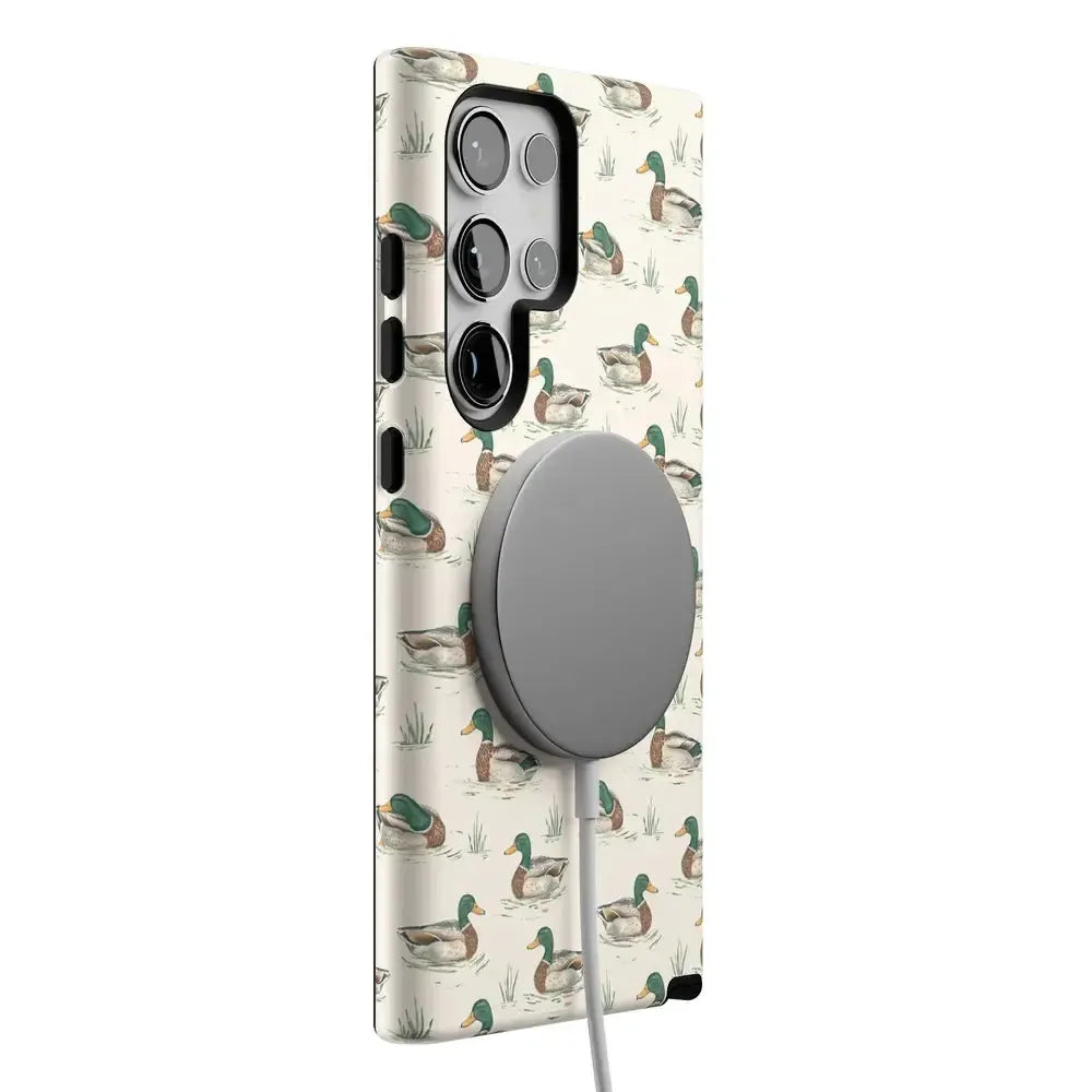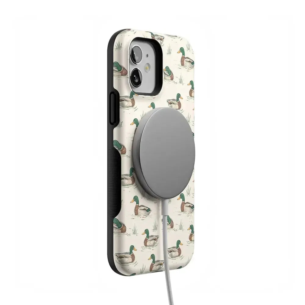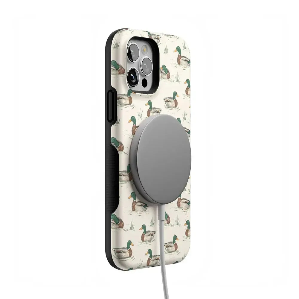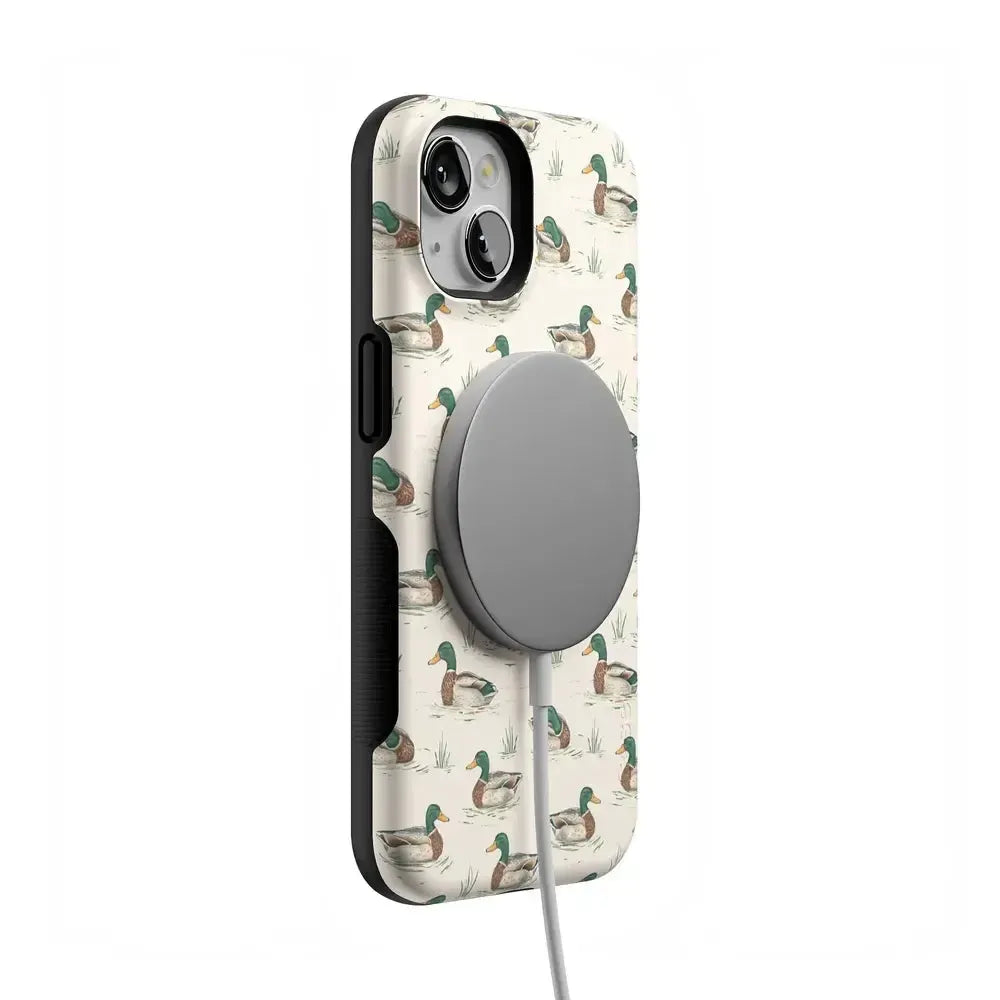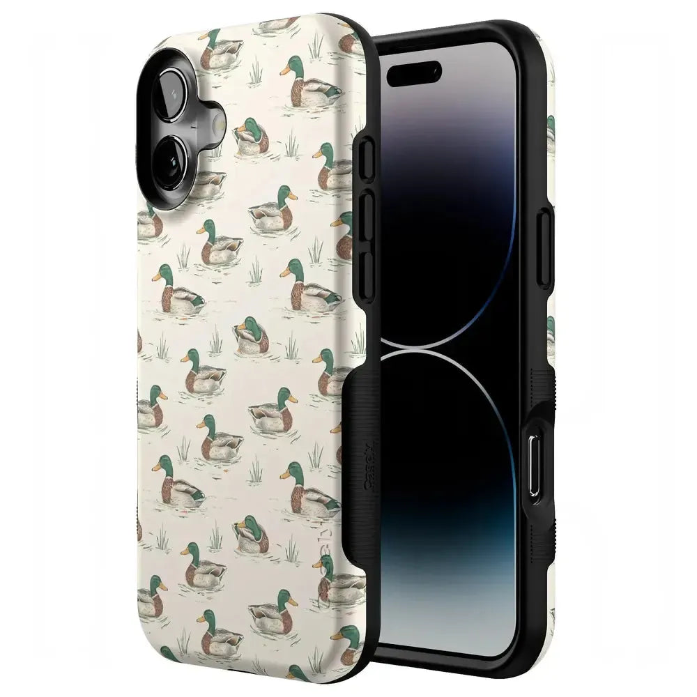 Bring a bit of countryside charm to your everyday carry with the Mallard & Co. phone case from our all-new Boyfriend Collection. Inspired by vintage sporting prints and laid-back cabin weekends, this case blends classic Americana with modern protection. A repeating mallard duck motif floats across a soft beige background, giving it that effortlessly cool, “borrowed-from-him-but-better” vibe.