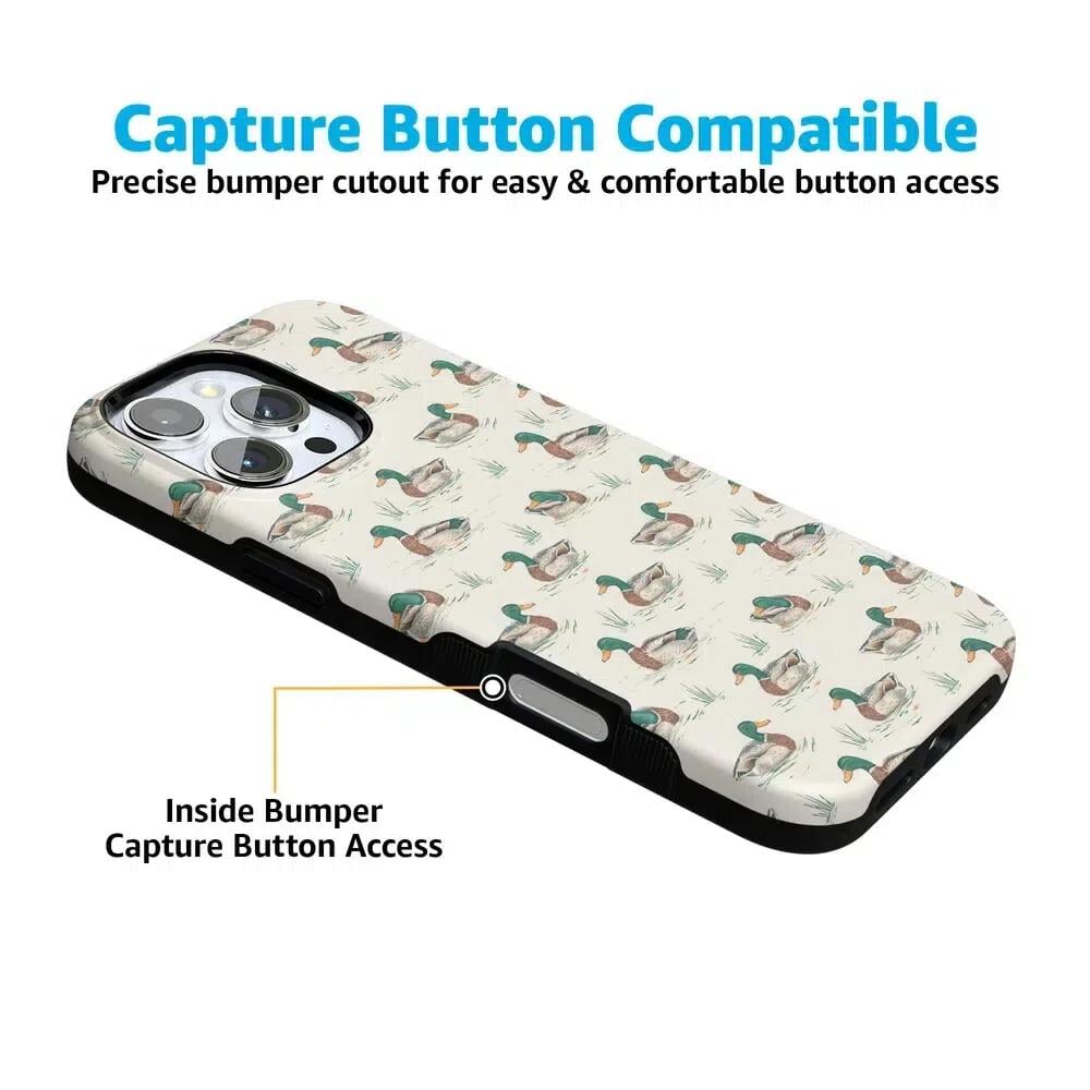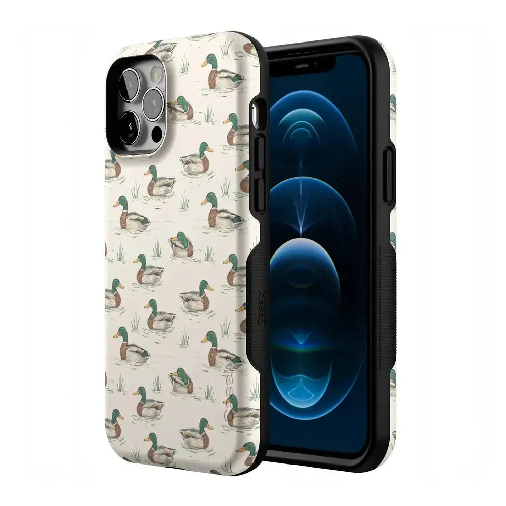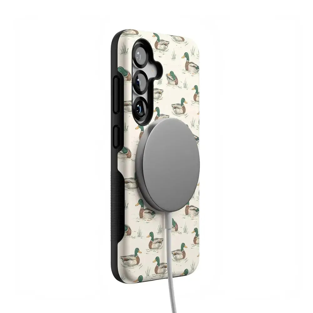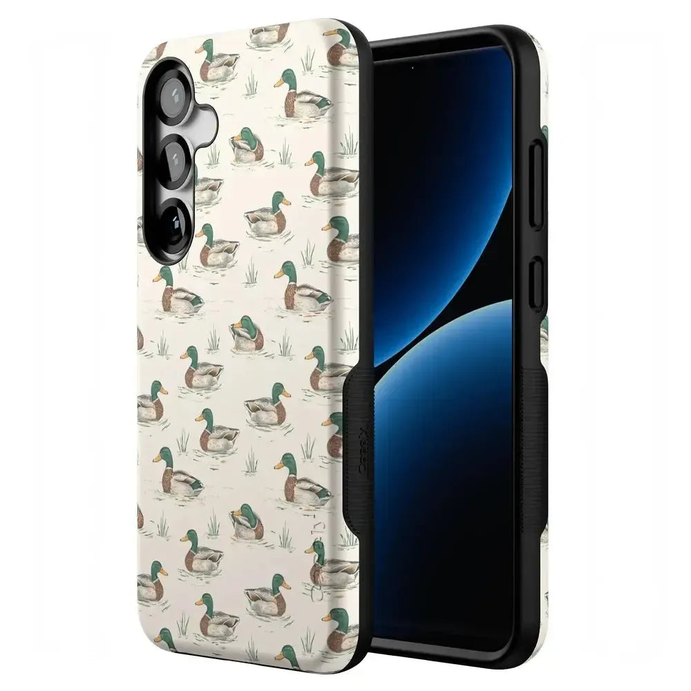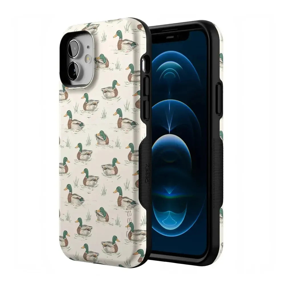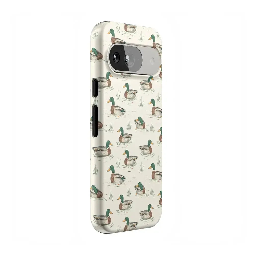 Bring a bit of countryside charm to your everyday carry with the Mallard & Co. phone case from our all-new Boyfriend Collection. Inspired by vintage sporting prints and laid-back cabin weekends, this case blends classic Americana with modern protection. A repeating mallard duck motif floats across a soft beige background, giving it that effortlessly cool, “borrowed-from-him-but-better” vibe.