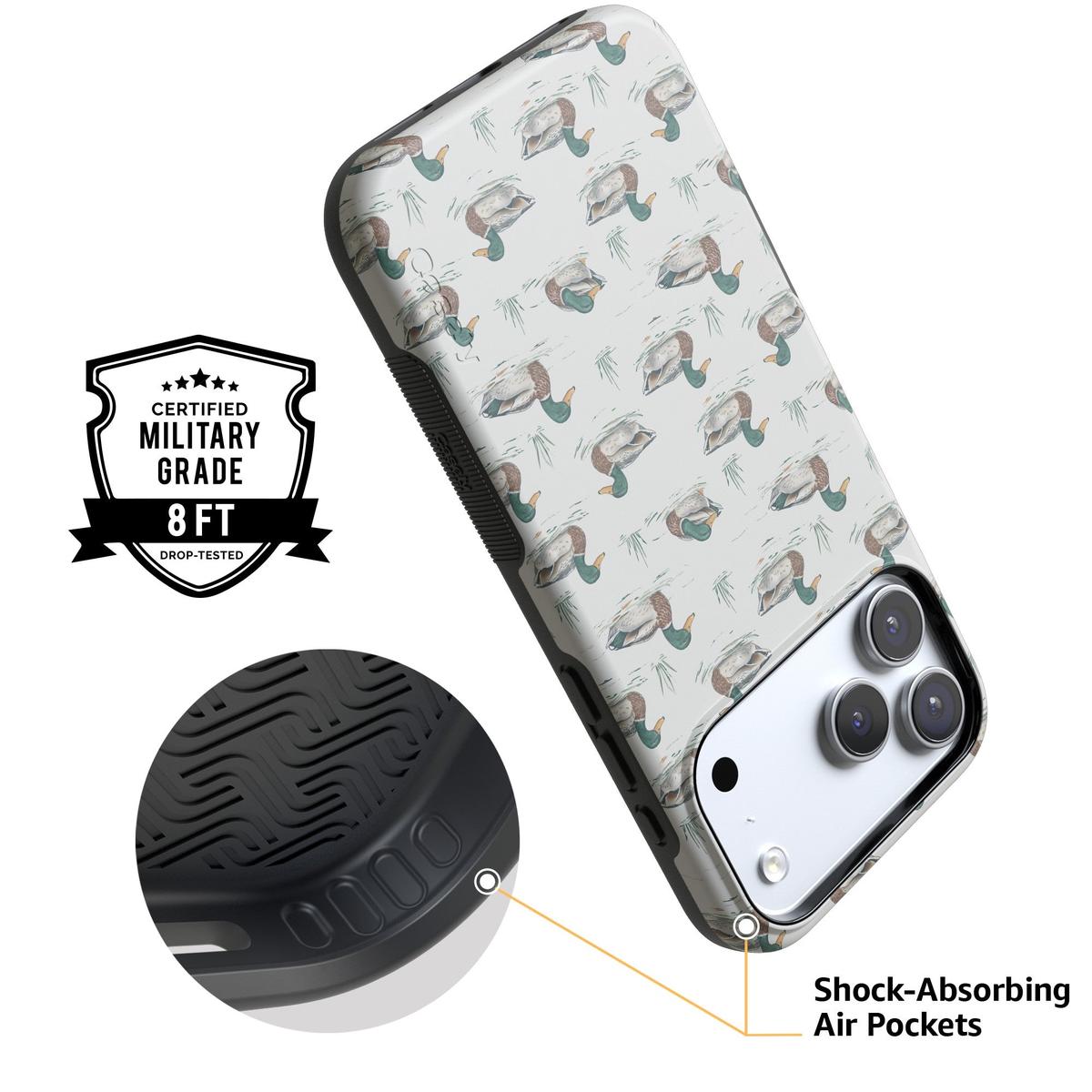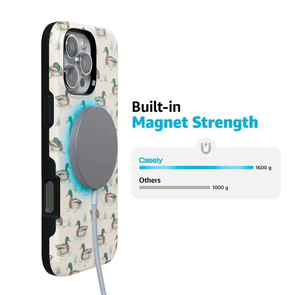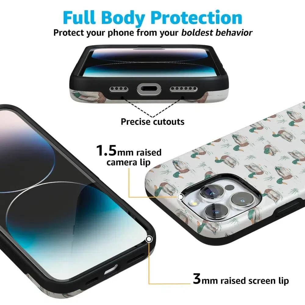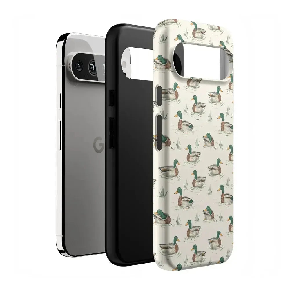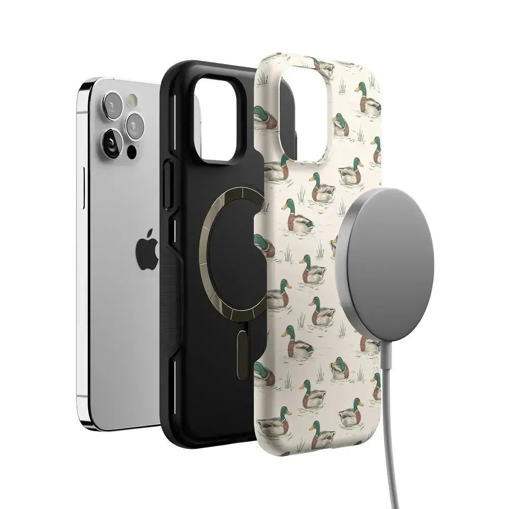 Bring a bit of countryside charm to your everyday carry with the Mallard & Co. phone case from our all-new Boyfriend Collection. Inspired by vintage sporting prints and laid-back cabin weekends, this case blends classic Americana with modern protection. A repeating mallard duck motif floats across a soft beige background, giving it that effortlessly cool, “borrowed-from-him-but-better” vibe.