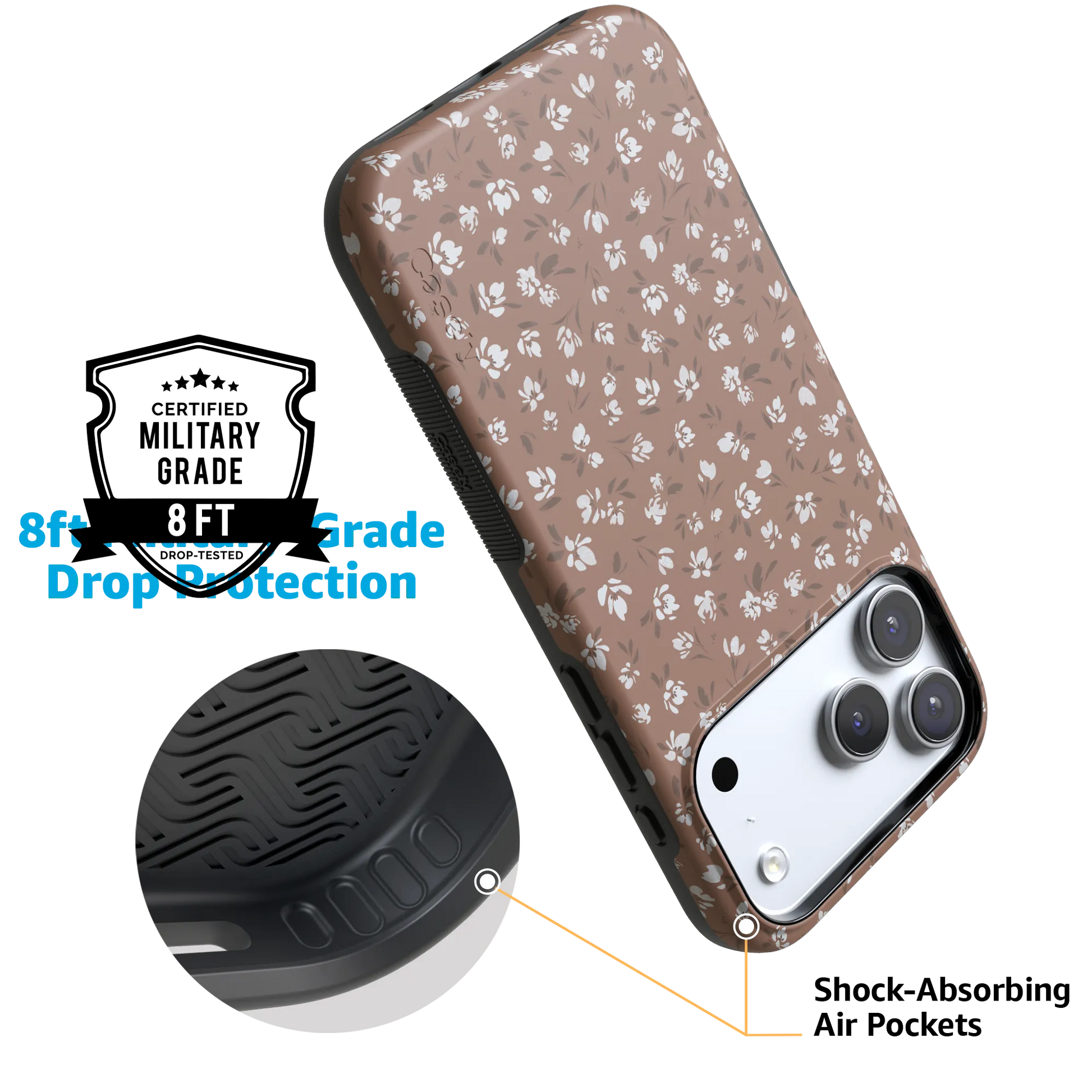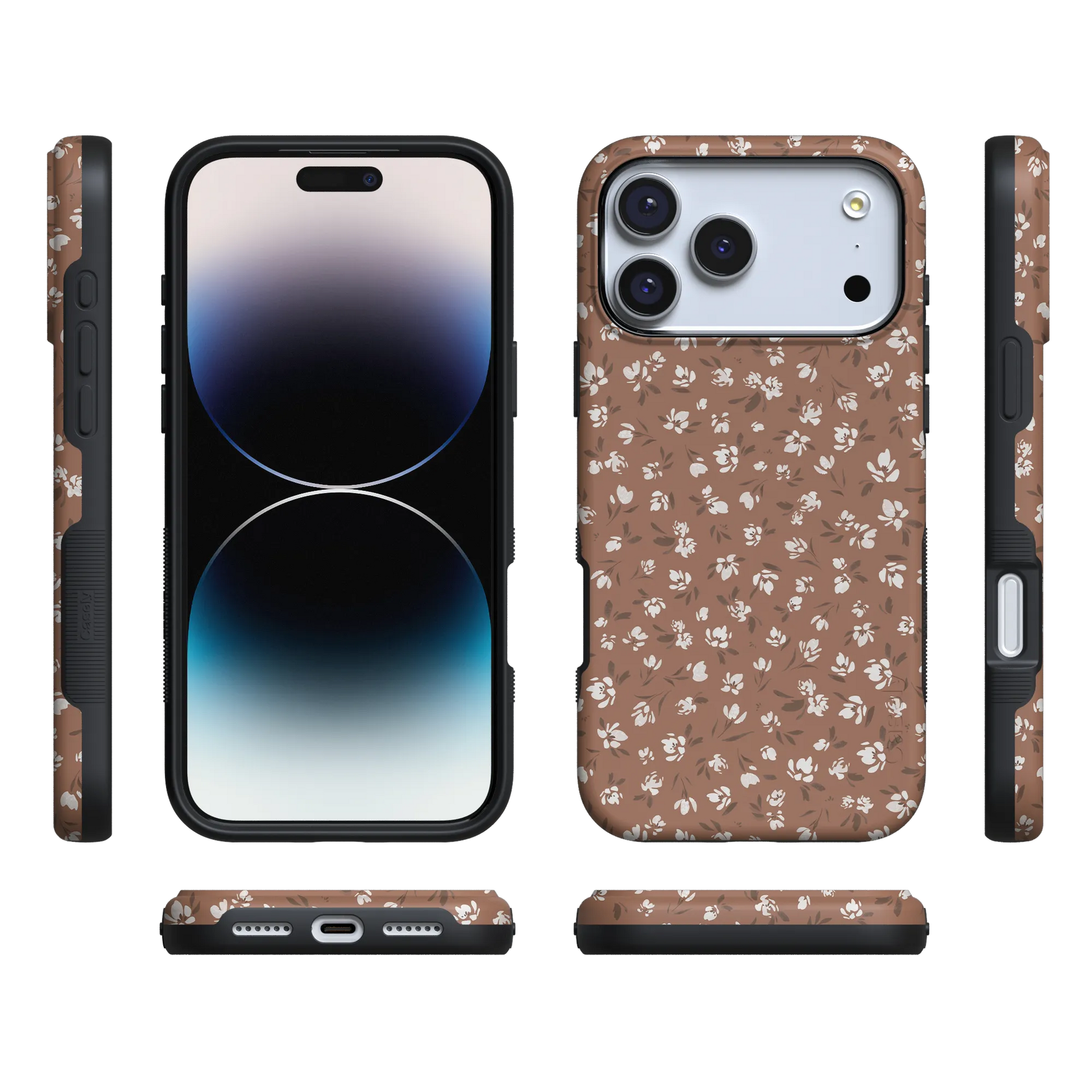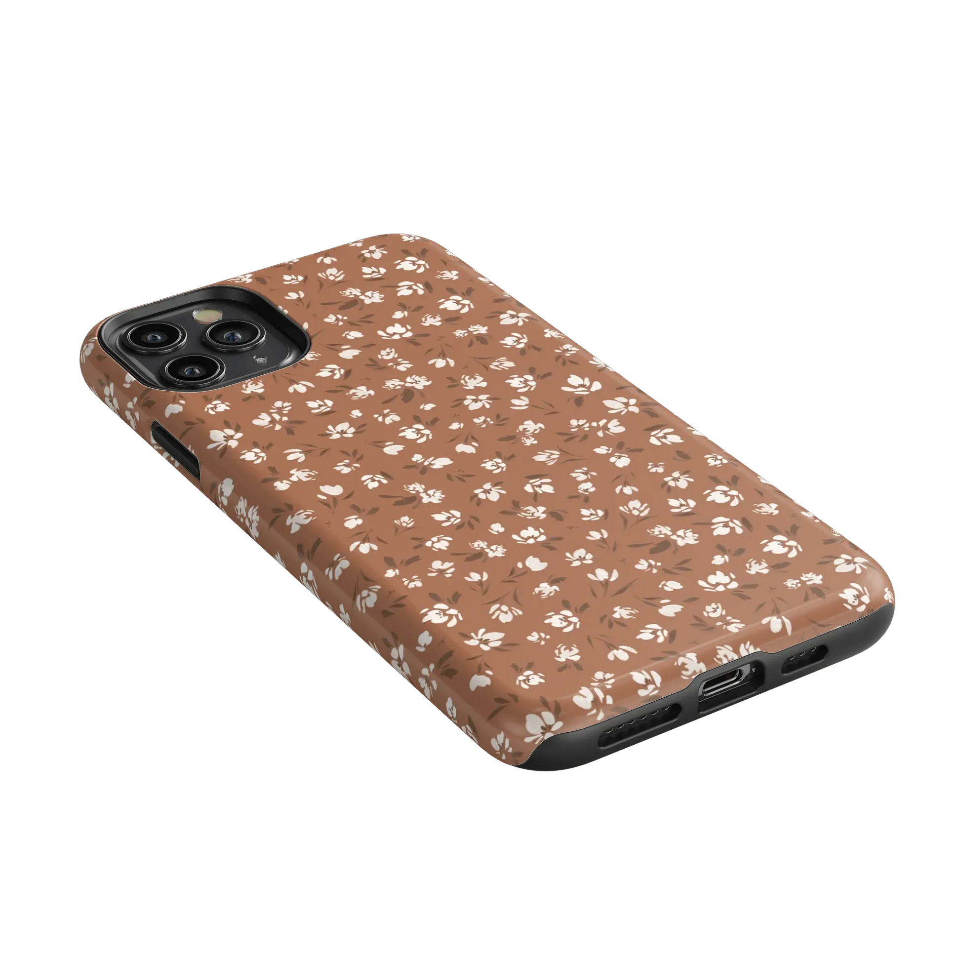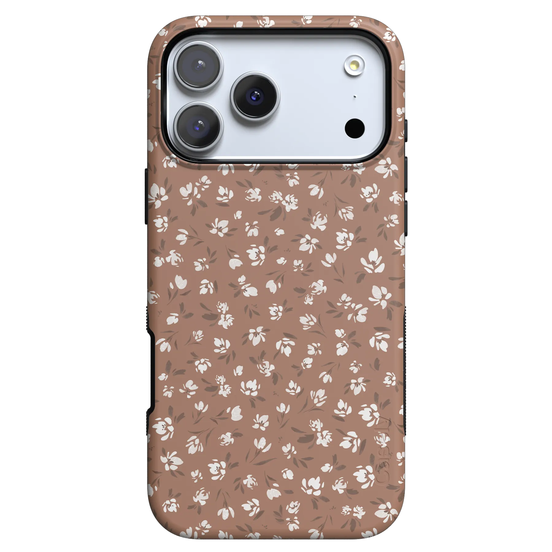 Bring timeless elegance to your everyday look with the Mocha Meadow | Tiny Flowers Case. Inspired by the Color of the Year, Mocha Mousse, this warm, earthy brown sets the perfect backdrop for a scatter of delicate white florals. The dainty meadow-inspired print adds a soft, romantic touch while still feeling modern and versatile enough for every season.