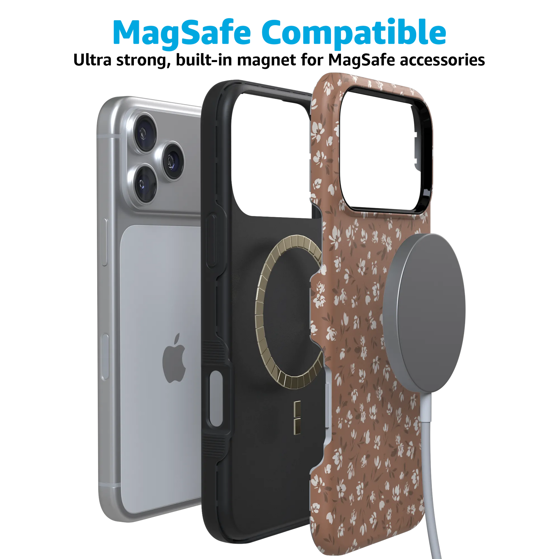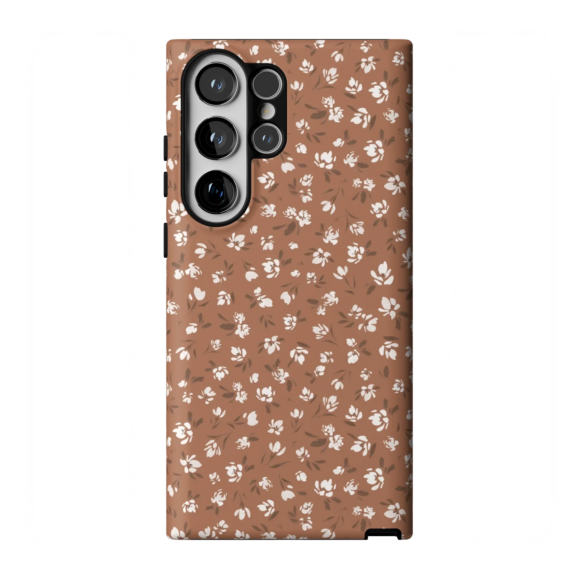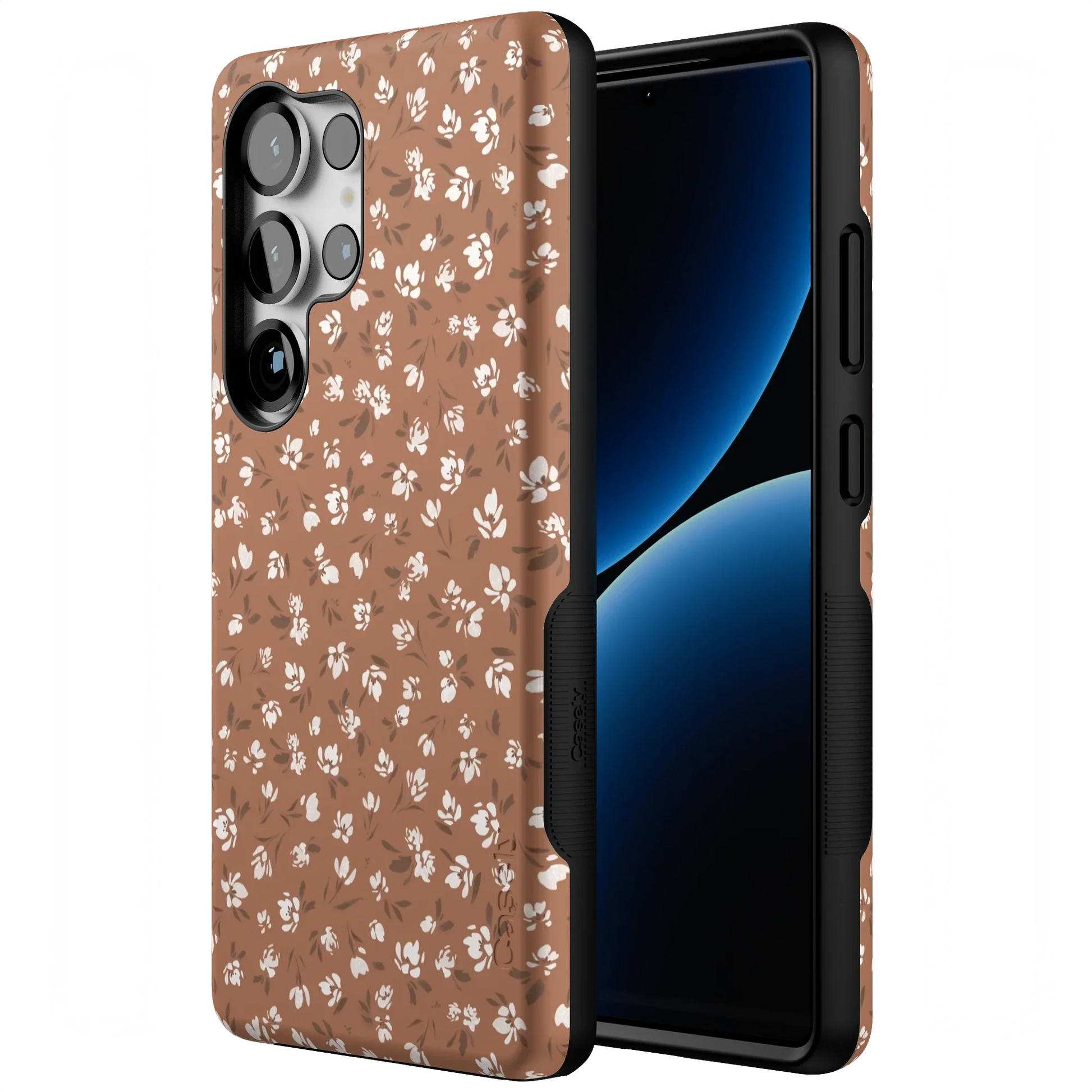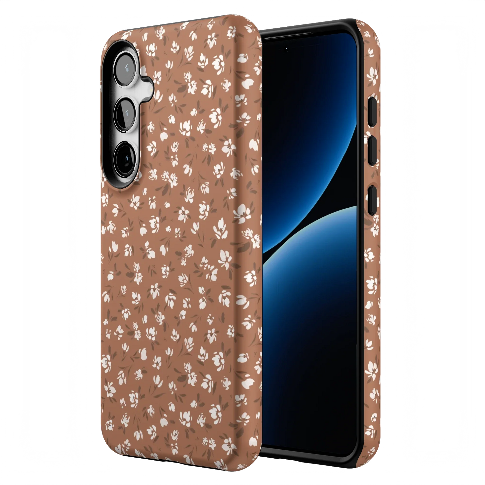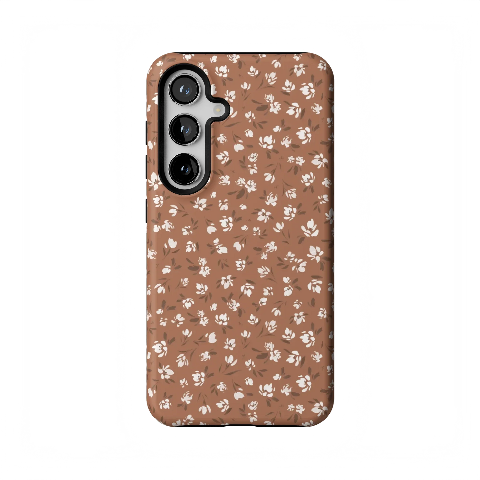 Bring timeless elegance to your everyday look with the Mocha Meadow | Tiny Flowers Case. Inspired by the Color of the Year, Mocha Mousse, this warm, earthy brown sets the perfect backdrop for a scatter of delicate white florals. The dainty meadow-inspired print adds a soft, romantic touch while still feeling modern and versatile enough for every season.