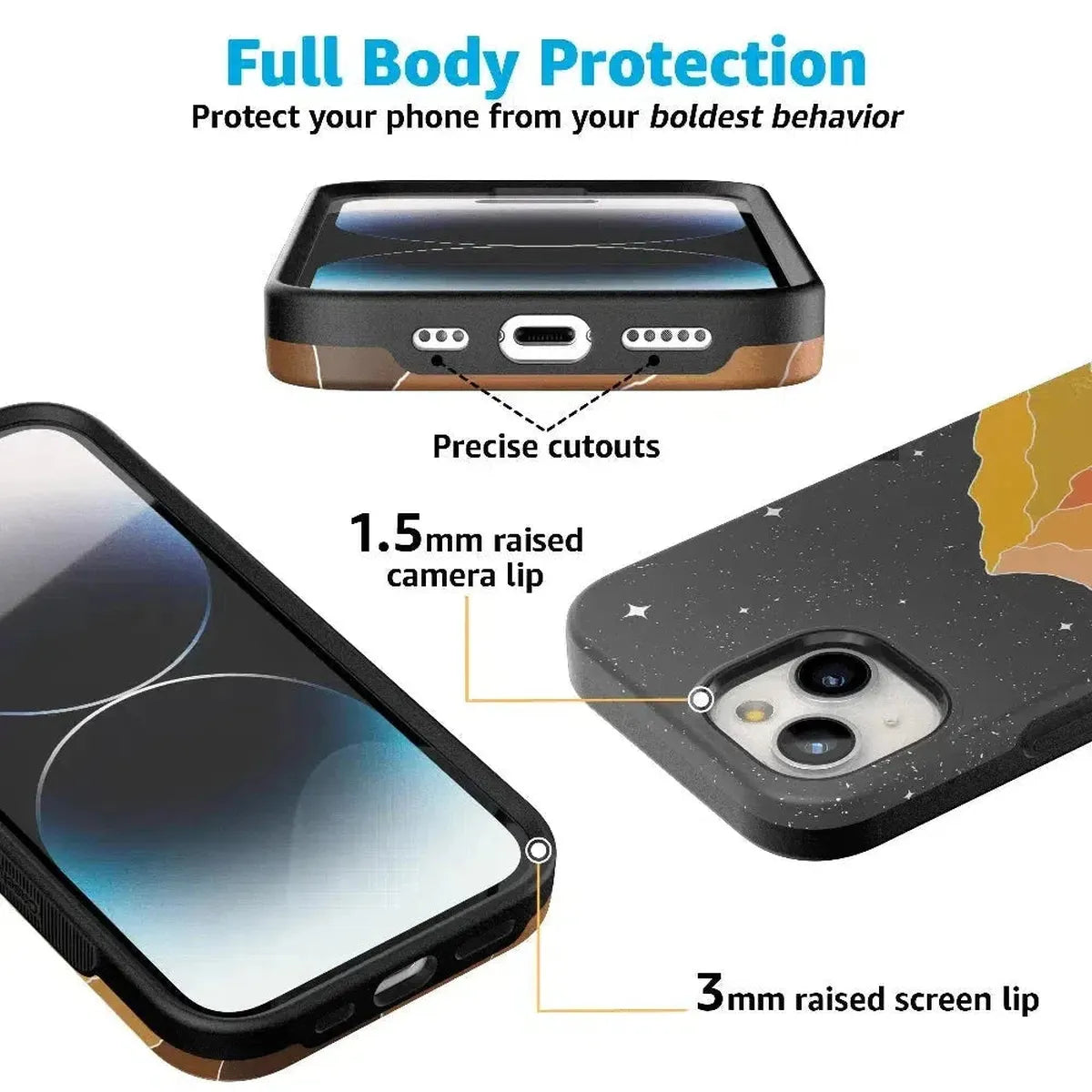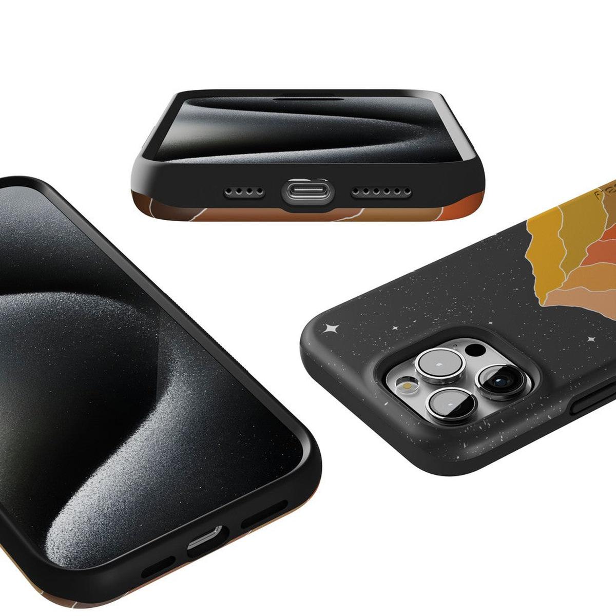 The vibrancy of the warm yellow and orange tones contrasting with the black, nighttime background makes this case so unique. It stands out without feeling like it's too much. It's the perfect marriage of grace and grandeur, all packaged in a relatively simple design. Did we mention we're fans?