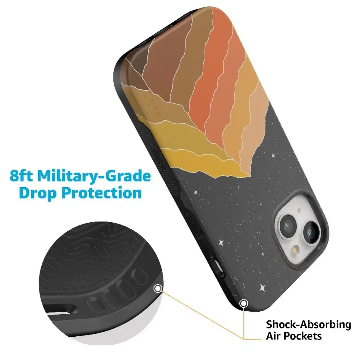 Something about the silhouette of the mountains set against a starlit sky never gets old. This particular design is a favorite of ours, with its gradient sunset hues splashed across an ever-rising mountain range and the gentle twinkle of stars in the background. Interpret it however you want. Maybe as a metaphor for facing challenges and exceeding them, or simply as a cool-looking case! Whatever you feel when you see it, we're sure you will love it.
