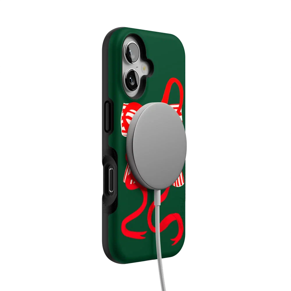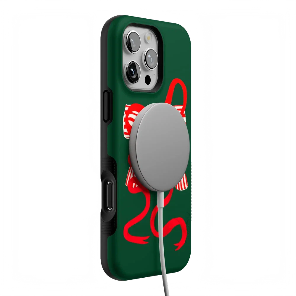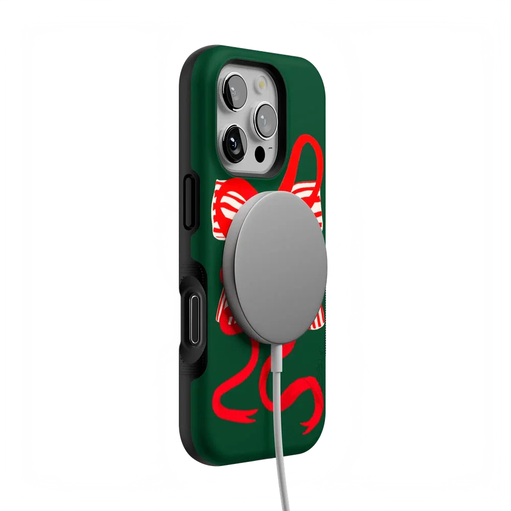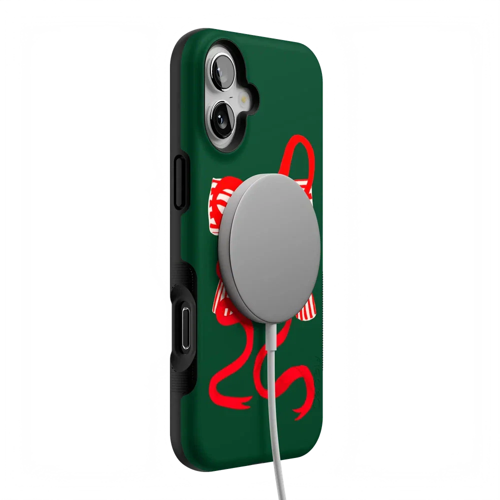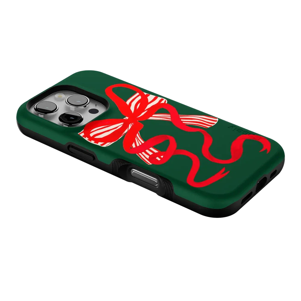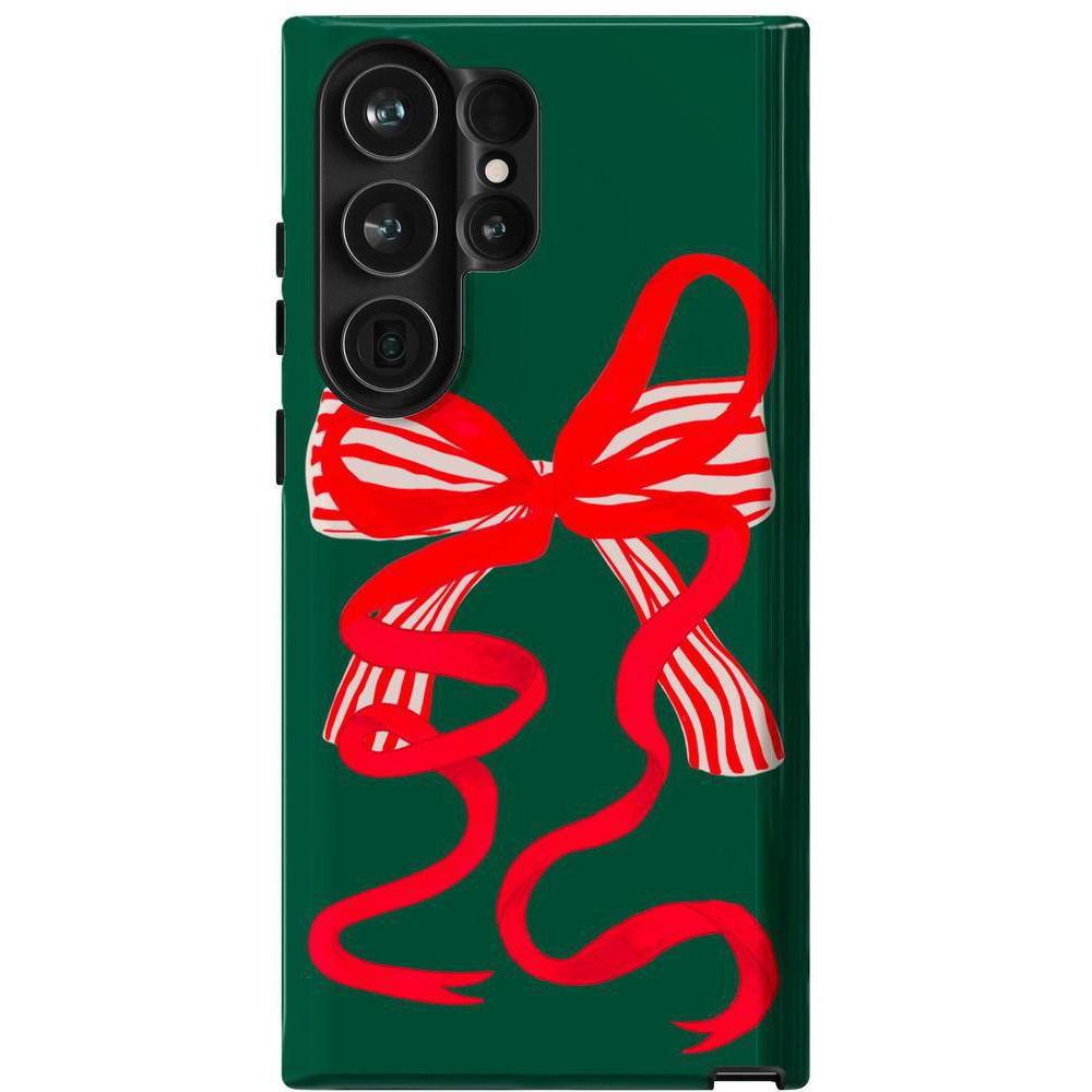 Deck your phone out in holiday cheer with the Santa's Favorite Holiday Bow Case, a standout piece from our holiday collection. This case showcases a bold, red holiday bow with a charming striped detail, set against a deep green background that captures the essence of the season. Designed to fit Google Pixel, Samsung Galaxy, and iPhone models, it’s the ideal way to celebrate the holidays in style while keeping your device safe.