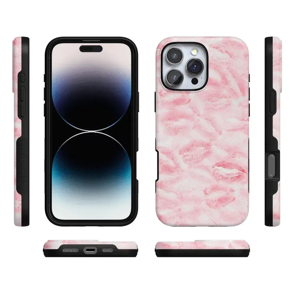 Wear your heart on your phone with the Sealed with a Kiss | Pink Lipstick Case. Featuring playful pink lipstick prints against a soft background, this design adds a flirty and romantic vibe to your everyday look.