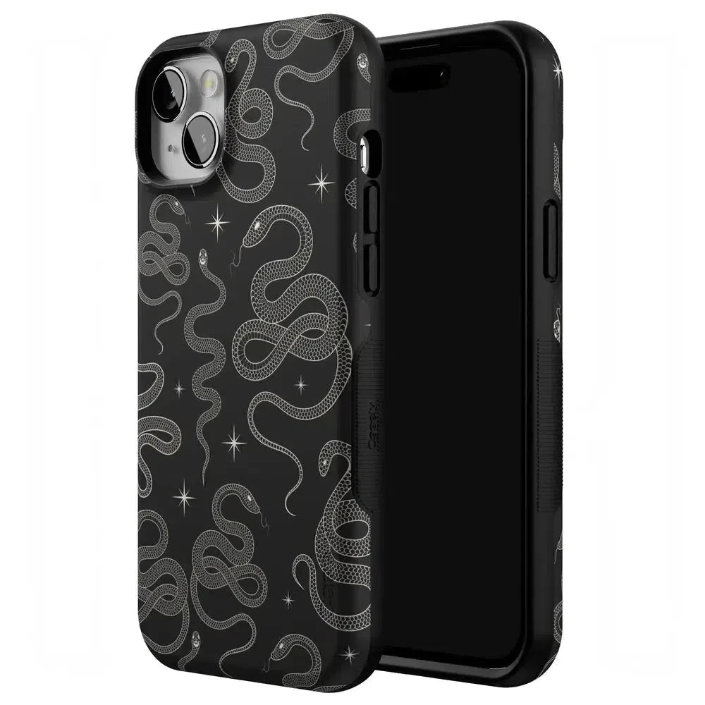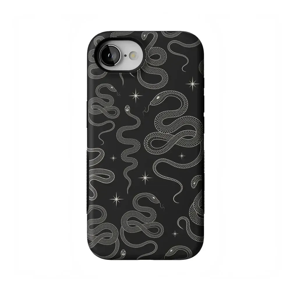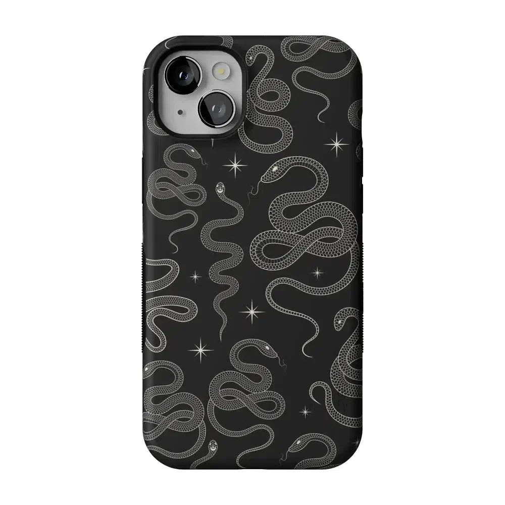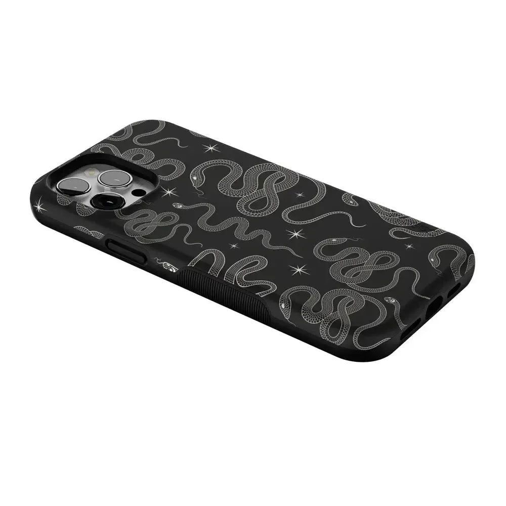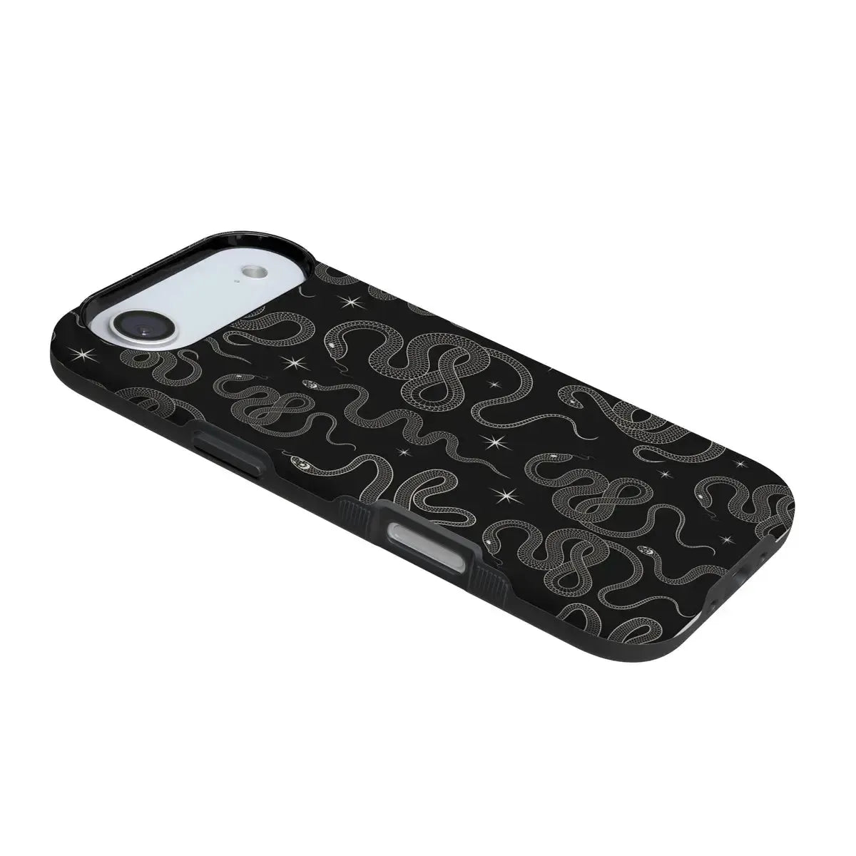 Channel your inner rebel with the We're Ready For It Black Serpent Case. This sleek, black case features an intricate serpent design that twists and turns across the back, adding a touch of mystique to your everyday style. The shimmering serpents against the matte black background create a powerful, yet understated look that's perfect for those who are no strangers to reinvention.