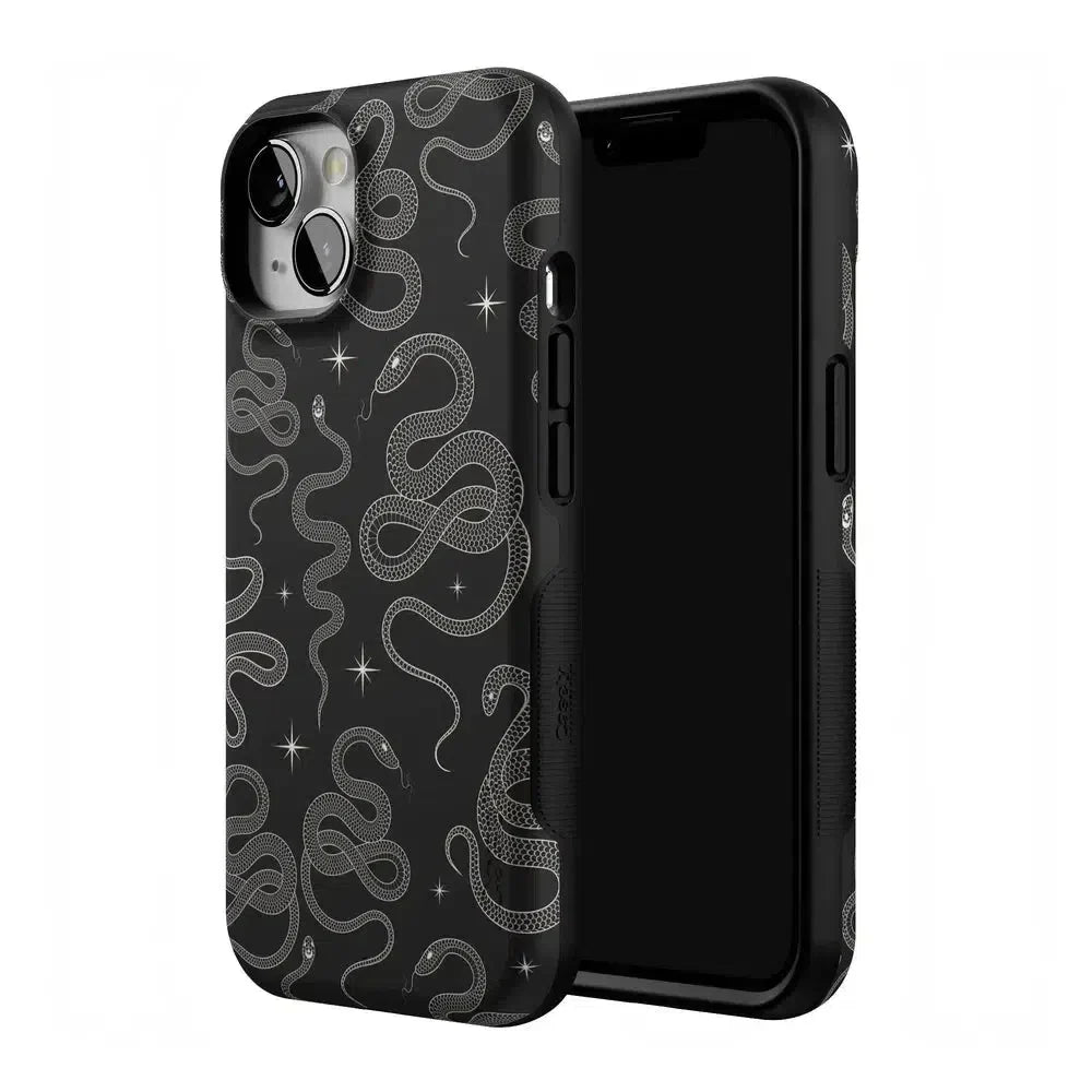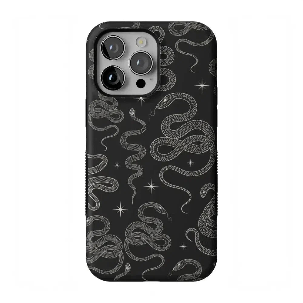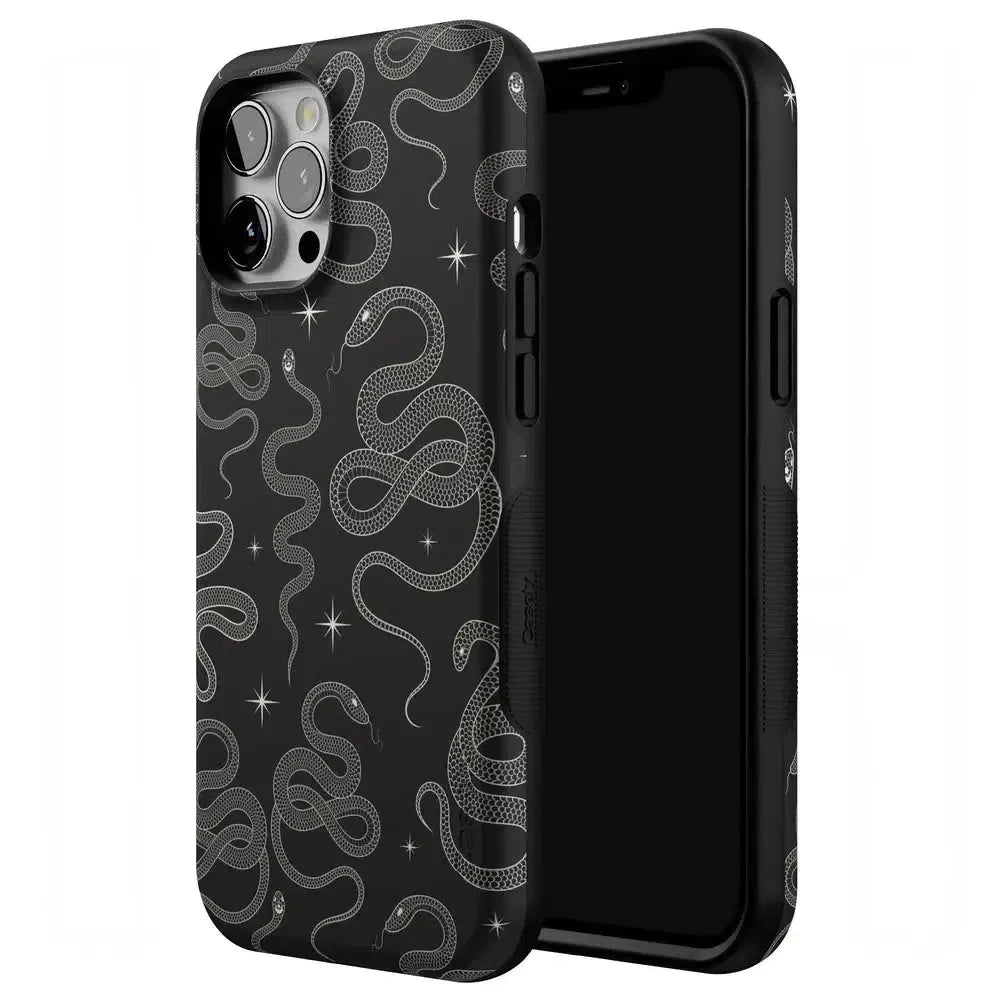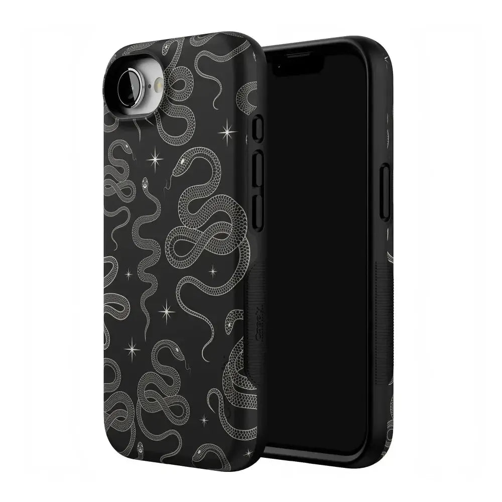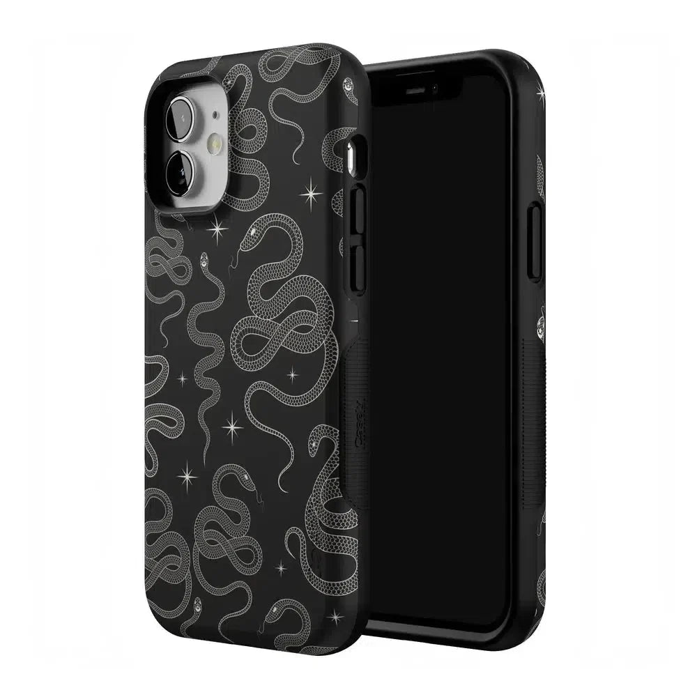 Channel your inner rebel with the We're Ready For It Black Serpent Case. This sleek, black case features an intricate serpent design that twists and turns across the back, adding a touch of mystique to your everyday style. The shimmering serpents against the matte black background create a powerful, yet understated look that's perfect for those who are no strangers to reinvention.
