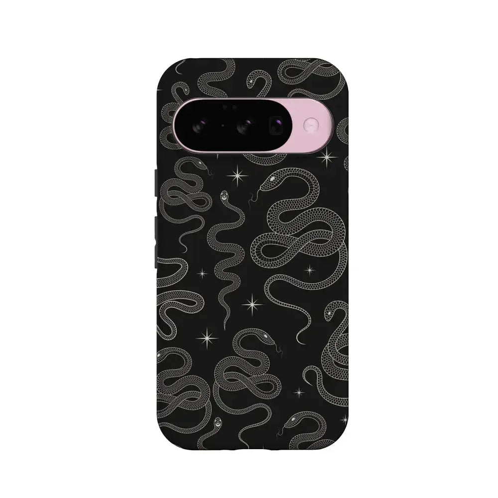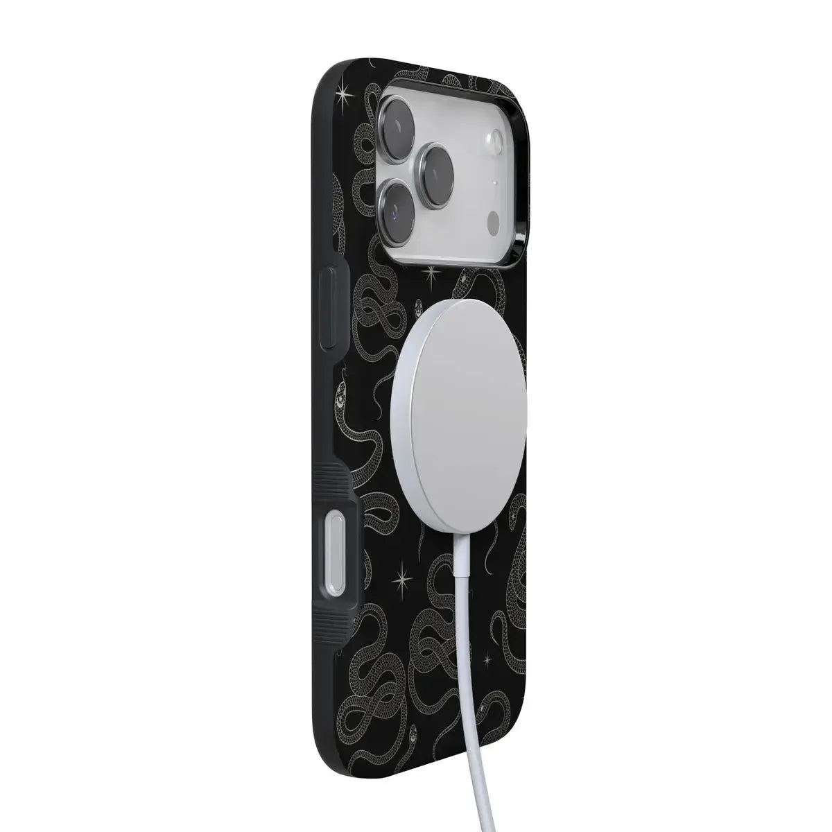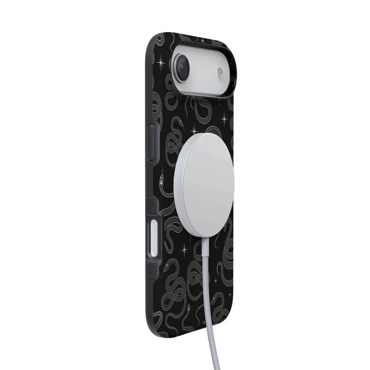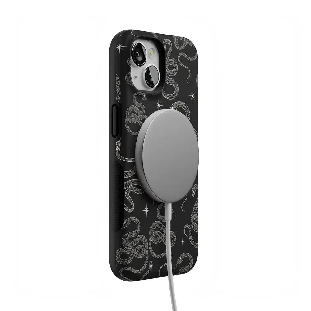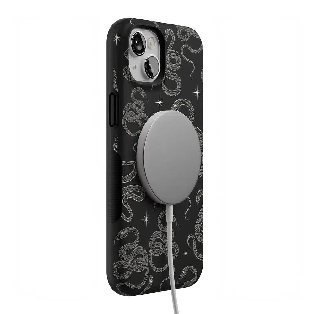 Channel your inner rebel with the We're Ready For It Black Serpent Case. This sleek, black case features an intricate serpent design that twists and turns across the back, adding a touch of mystique to your everyday style. The shimmering serpents against the matte black background create a powerful, yet understated look that's perfect for those who are no strangers to reinvention.